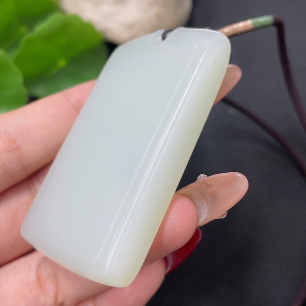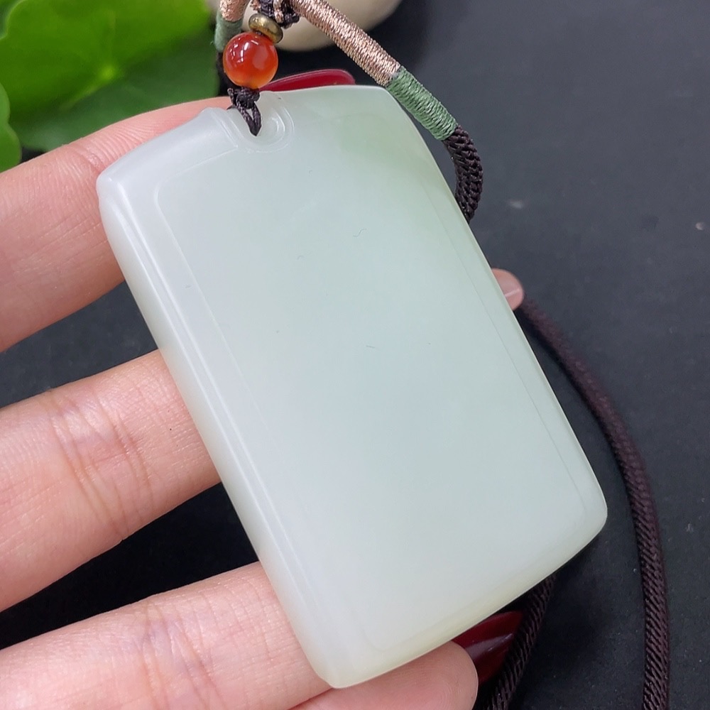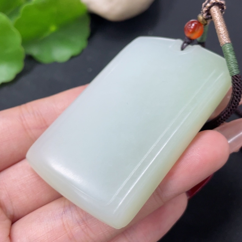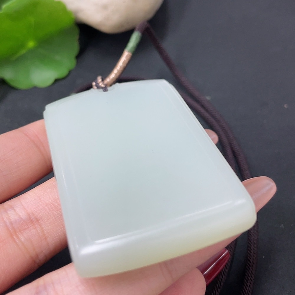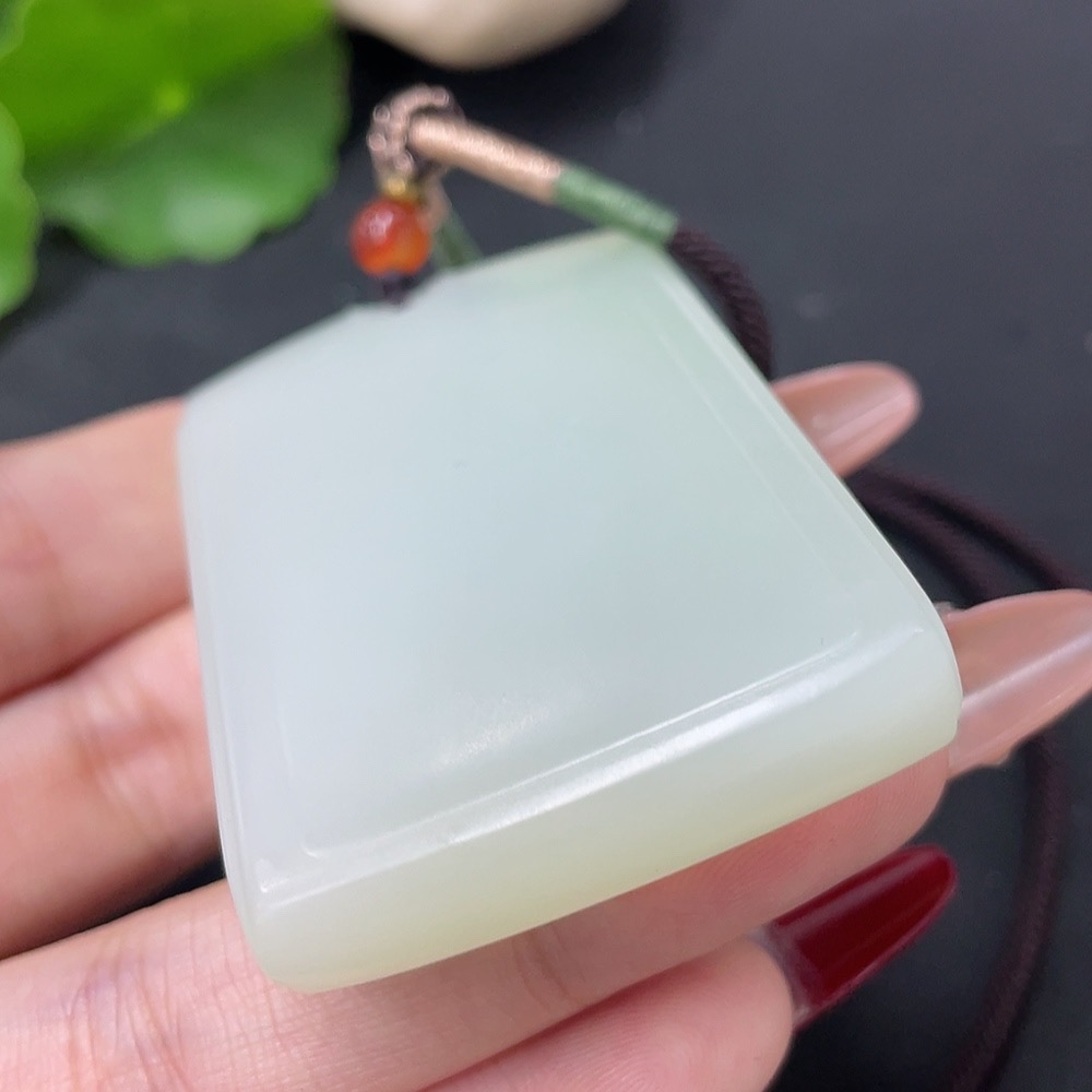 Hetian Jade Pendant, Plain Pendant with Non-Hetian Jade Beads, Total Weight Approx. 64.4g (Including Rope)