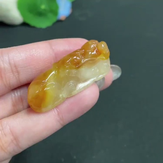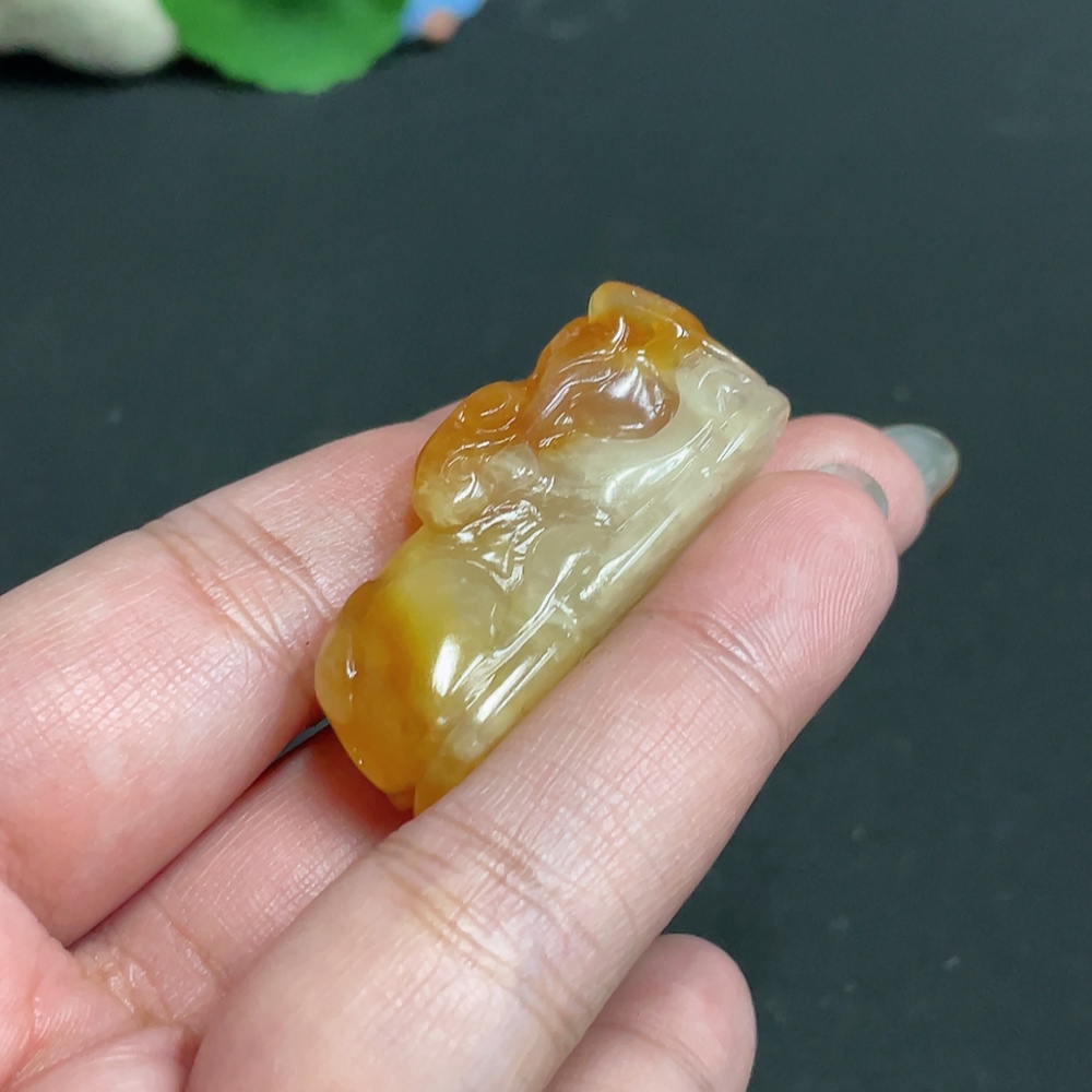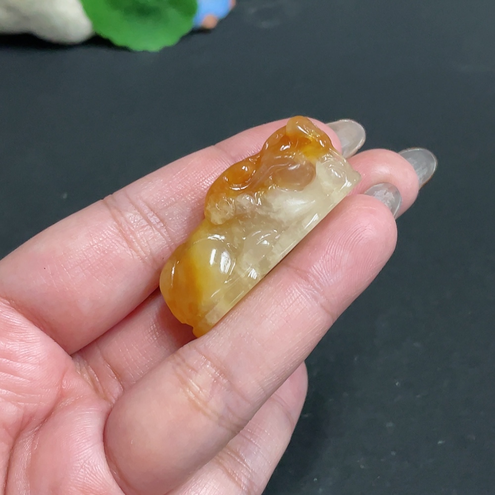Yellow Dragon Jade Pendant, Auspicious Beast, Total Weight Approx. 16.5g
