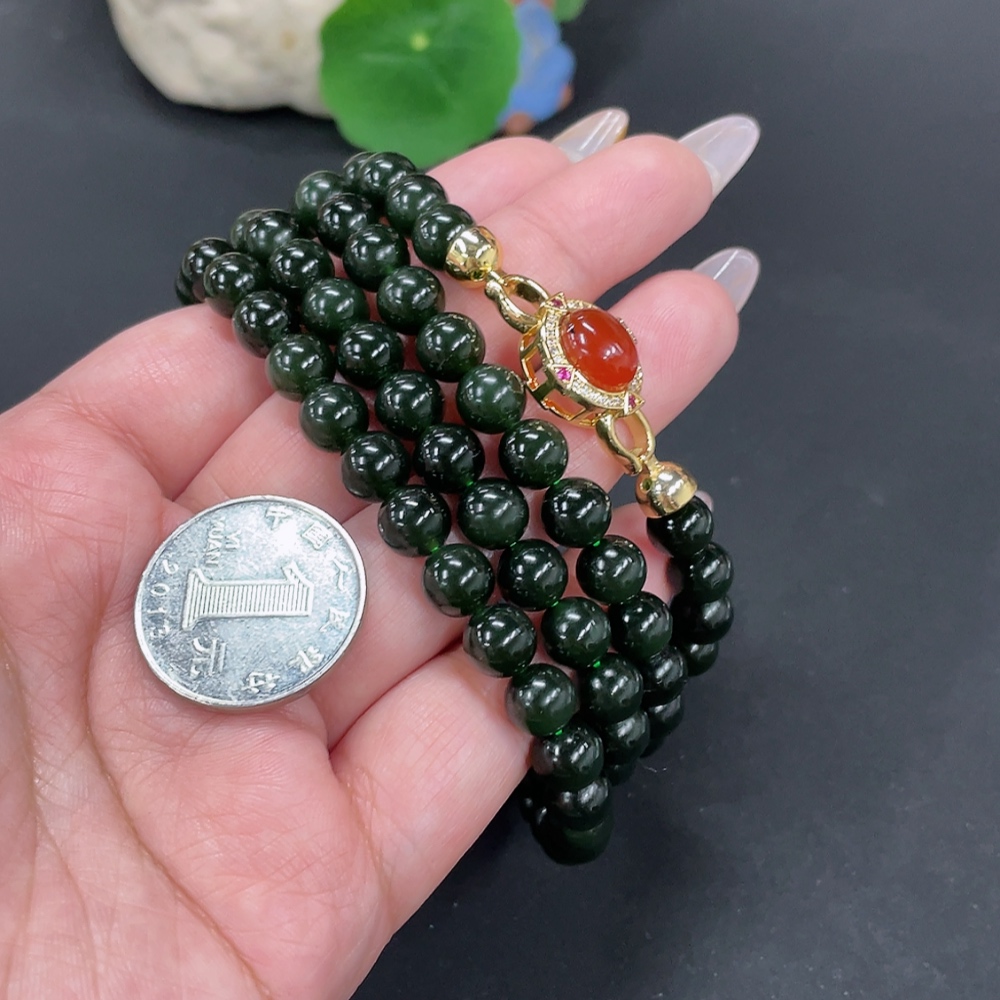 Trezaar - Hetian Jade Jasper Bead Necklace Approx. 7.8mm Total Weight Approx. 87.5g Non-Gold