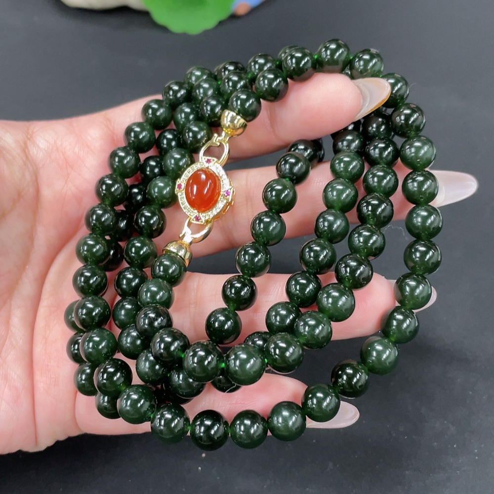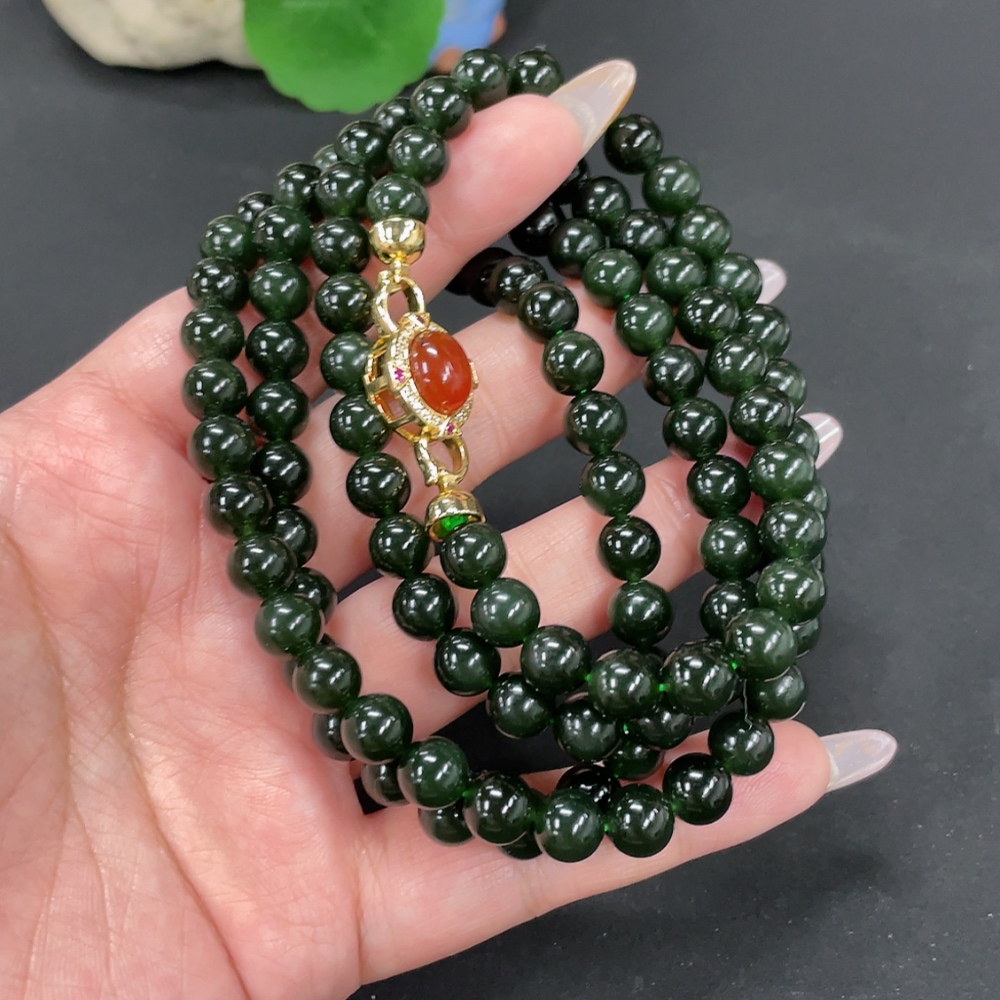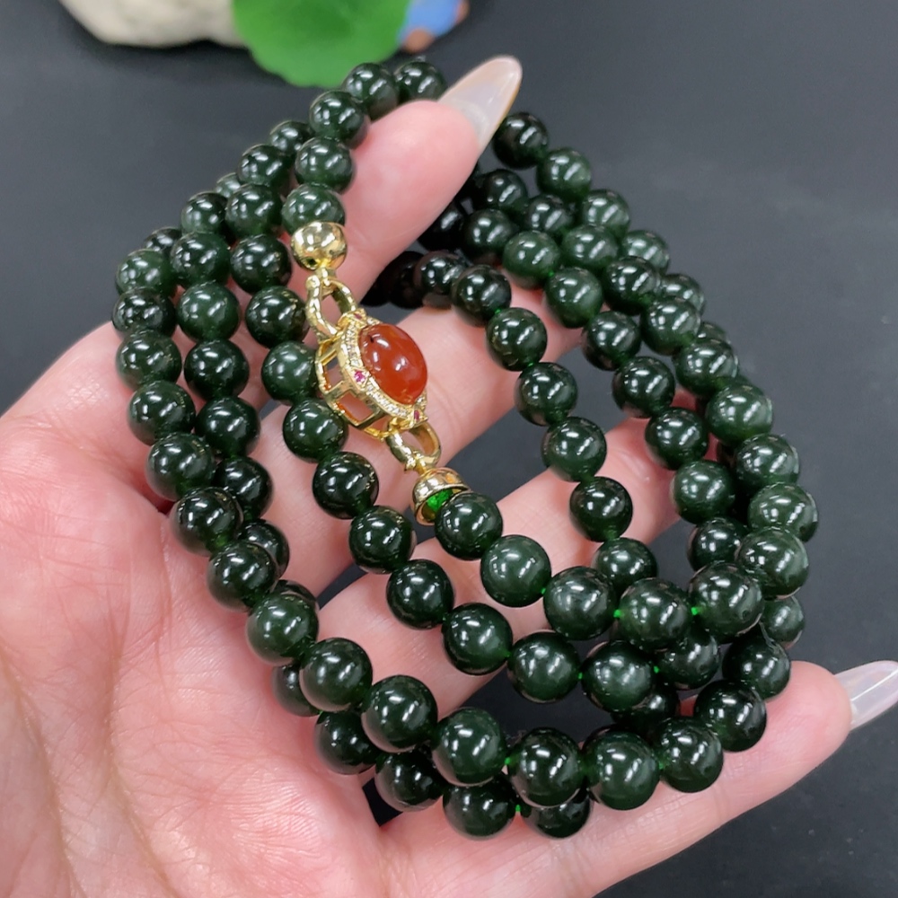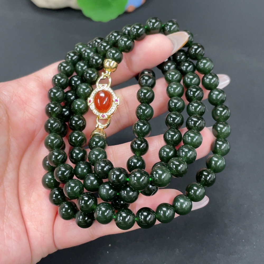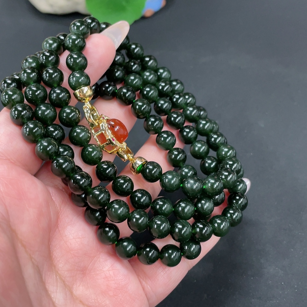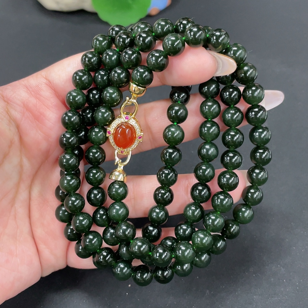 Hetian Jade Jasper Bead Necklace Approx. 7.8mm Total Weight Approx. 87.5g Non-Gold