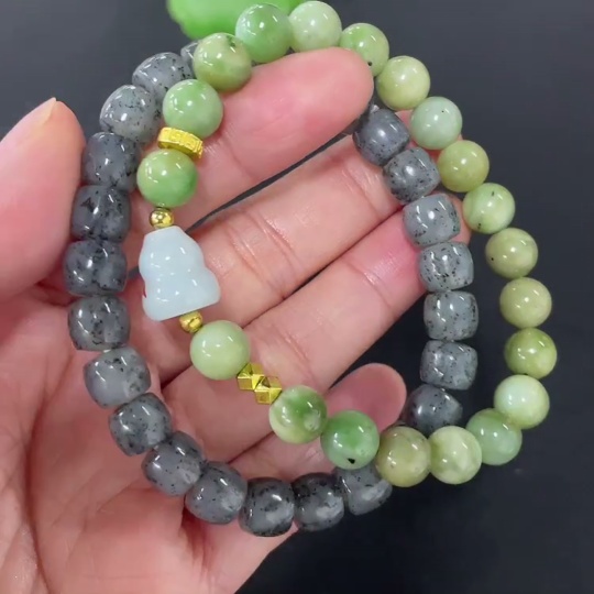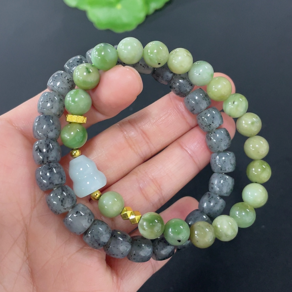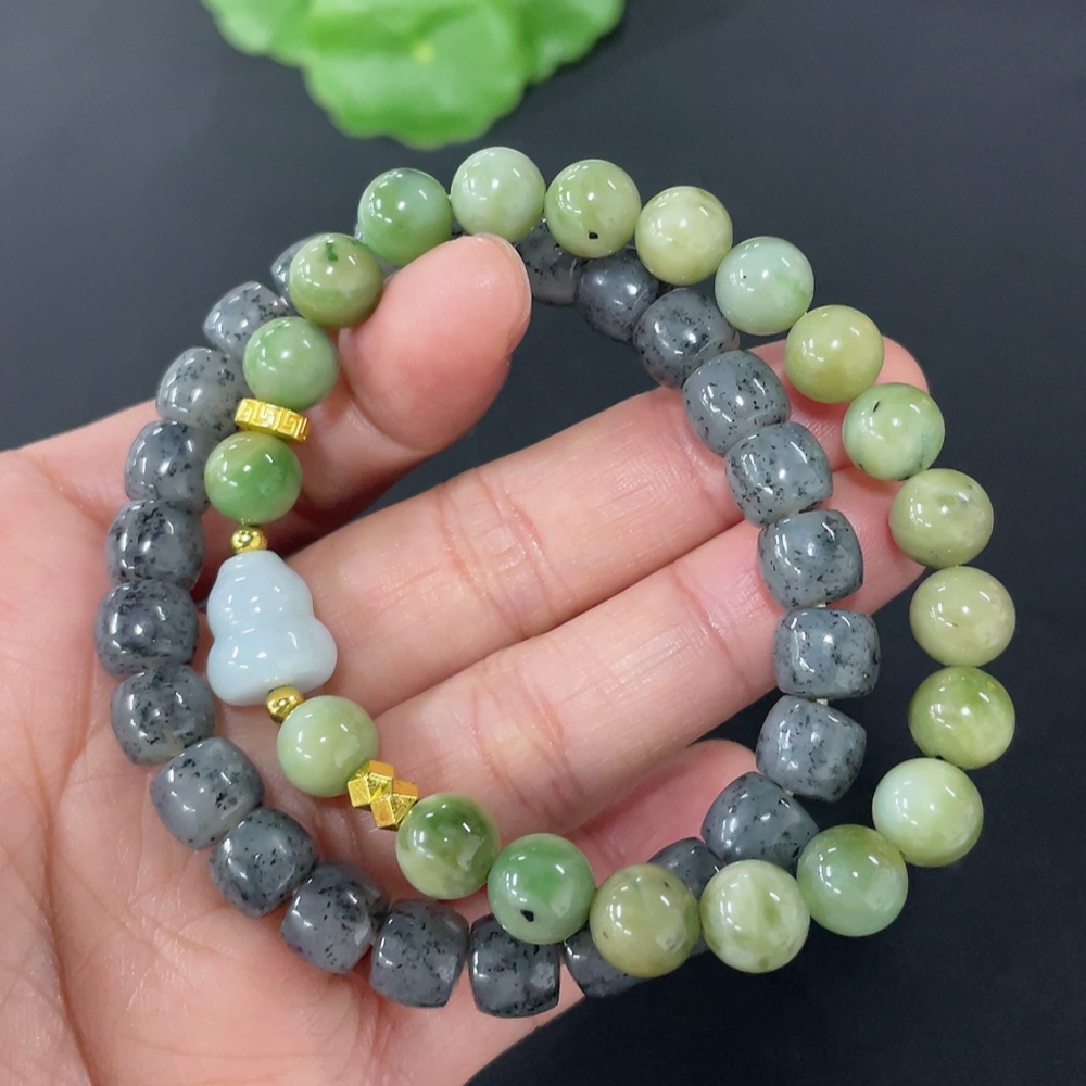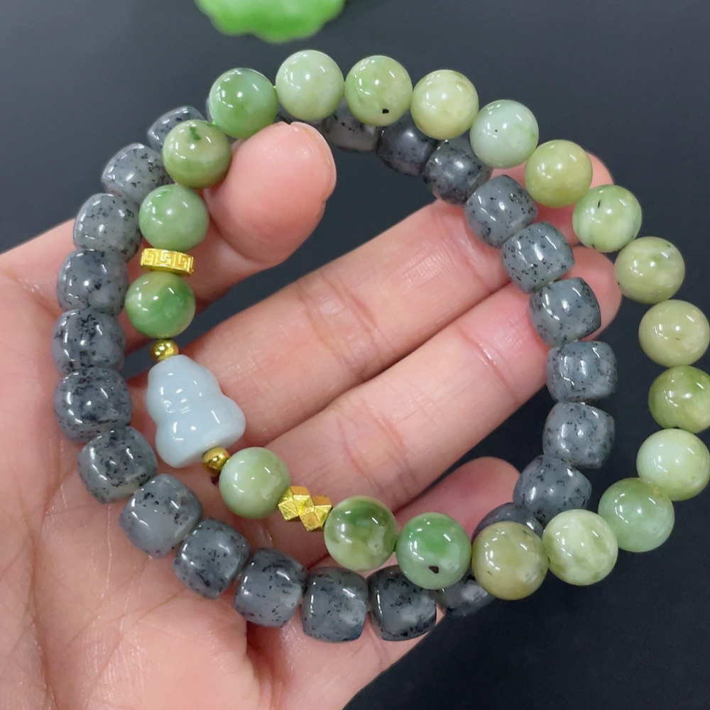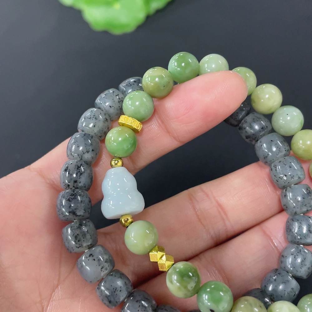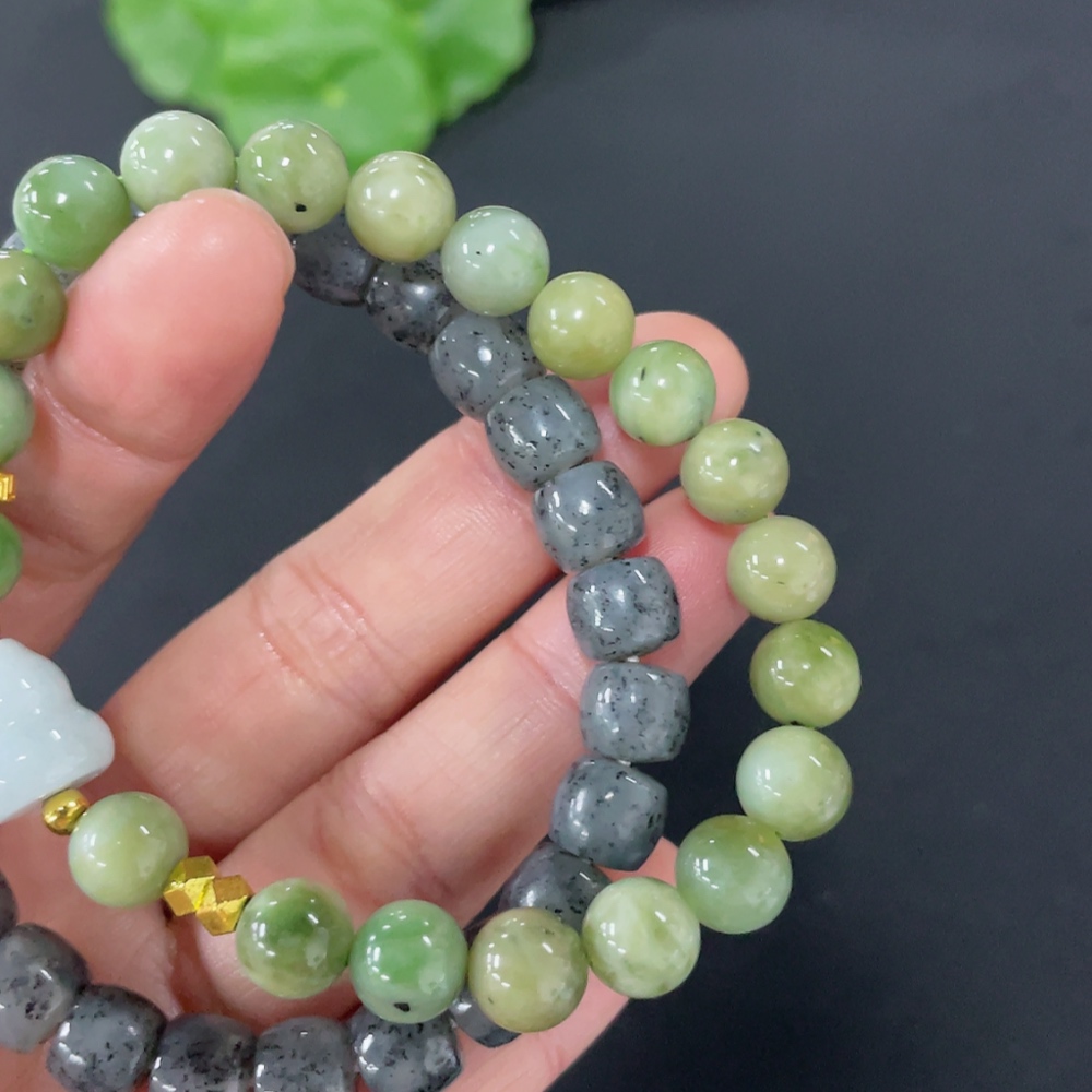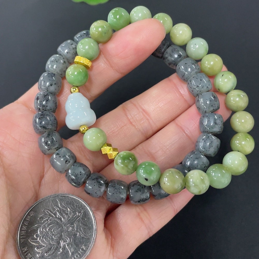 Hetian Jade Bracelet, Approx. 7.6/7.6mm, Non-Gold Inlaid, Total Weight Approx. 38.2g, Non-Hetian Jade Beads