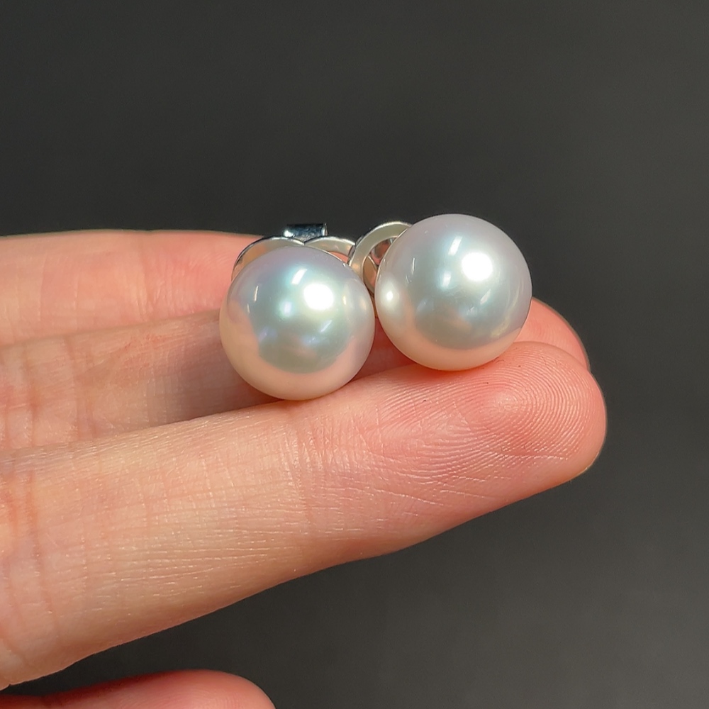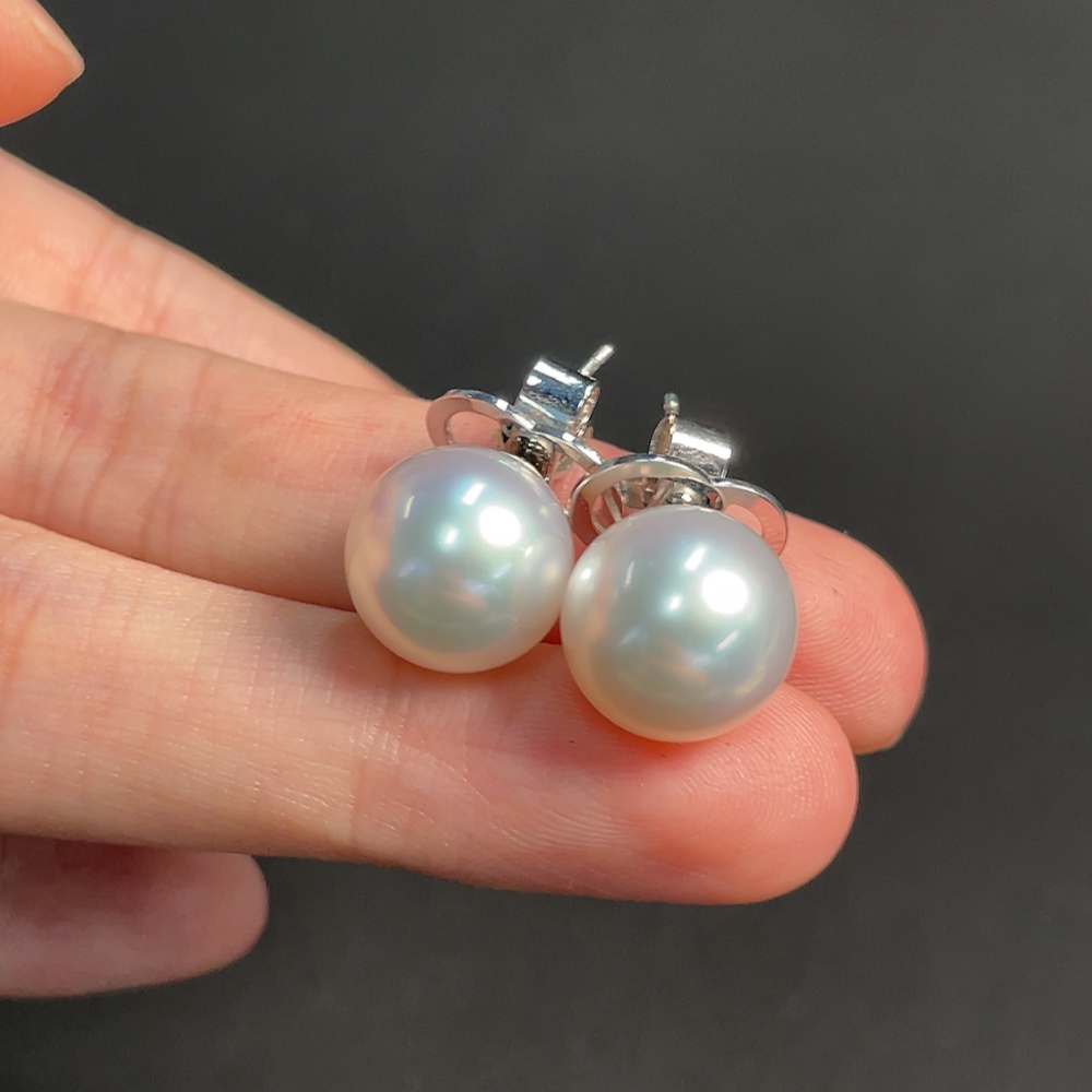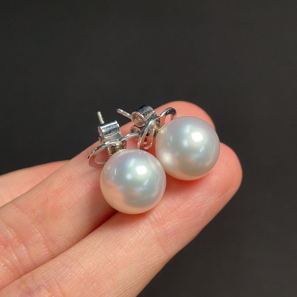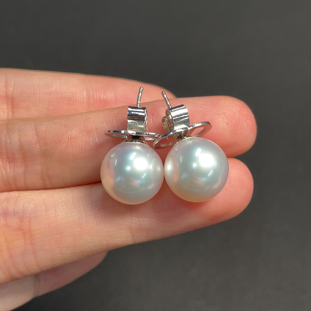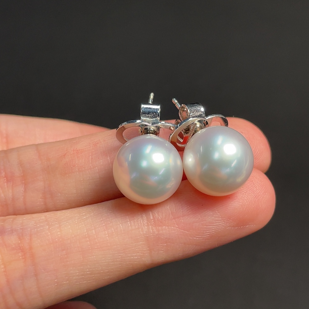 18K seawater pearl earrings, total weight approximately 6.84g, size about 11.6mm