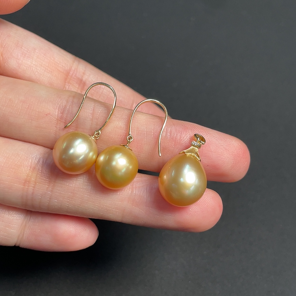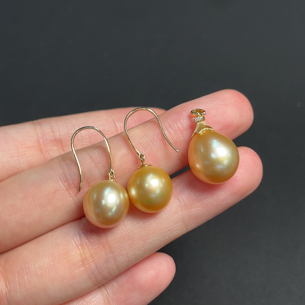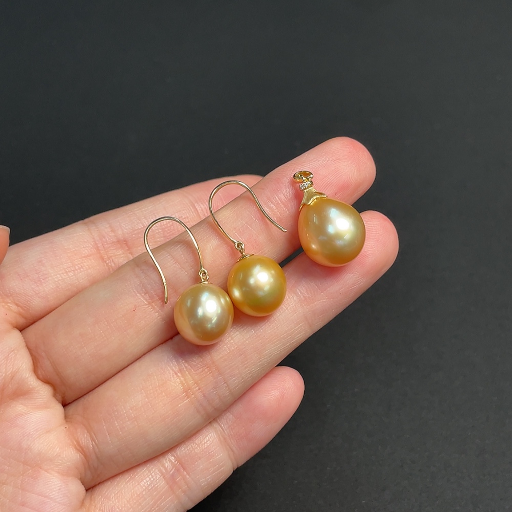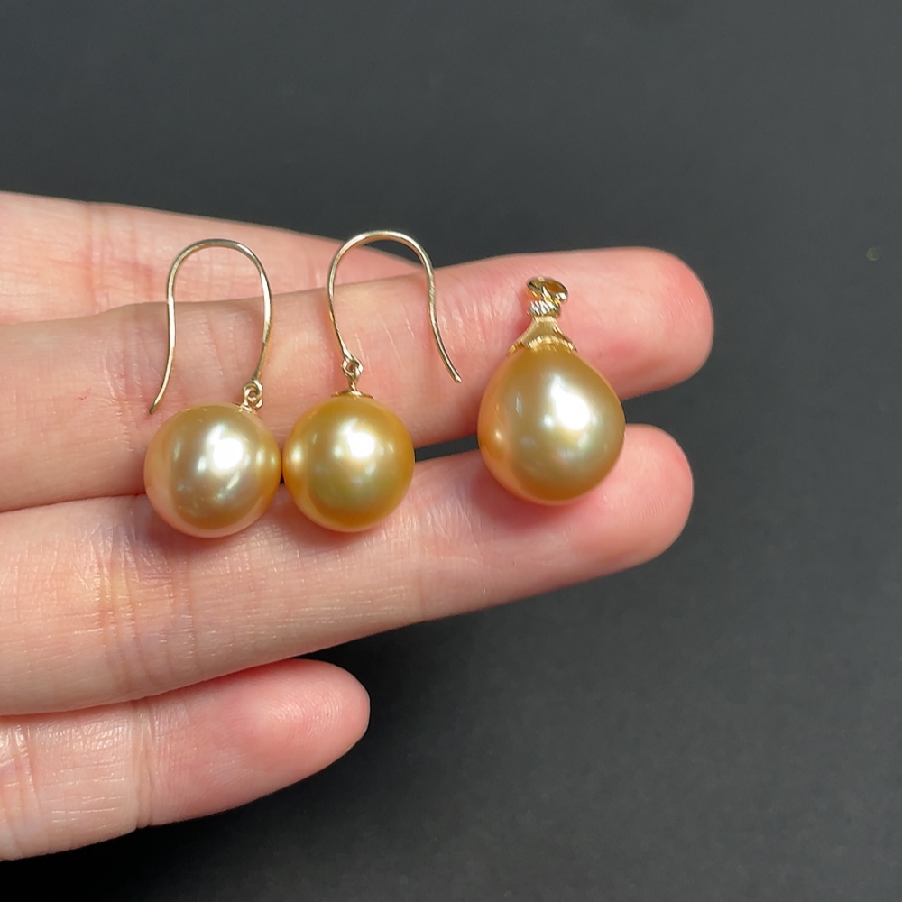 18k White Gold Saltwater Pearl Pendant with Diamond Accents + Earrings, Color Origin Undetermined, Total Weight Approximately 7.05g, Sell as a Lot