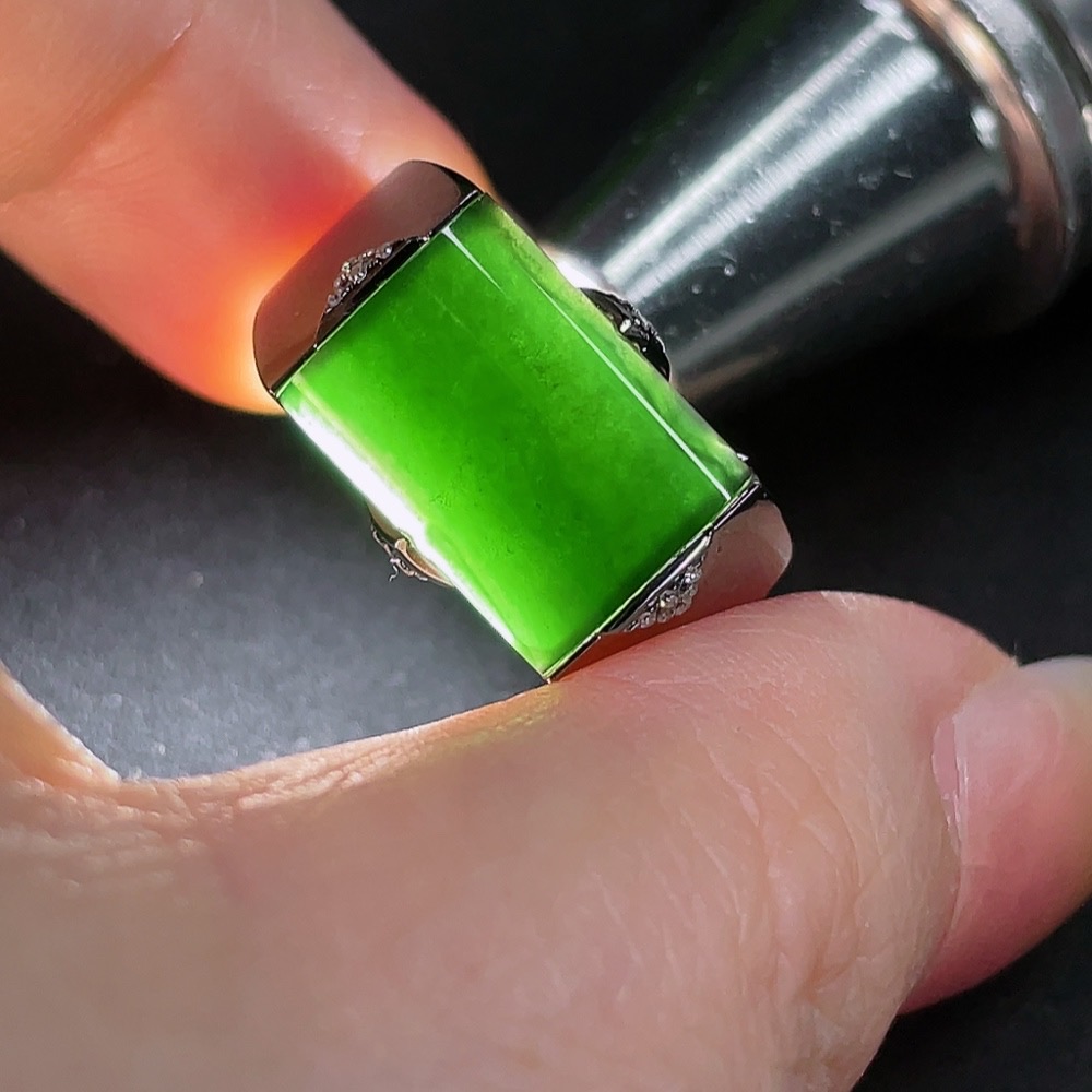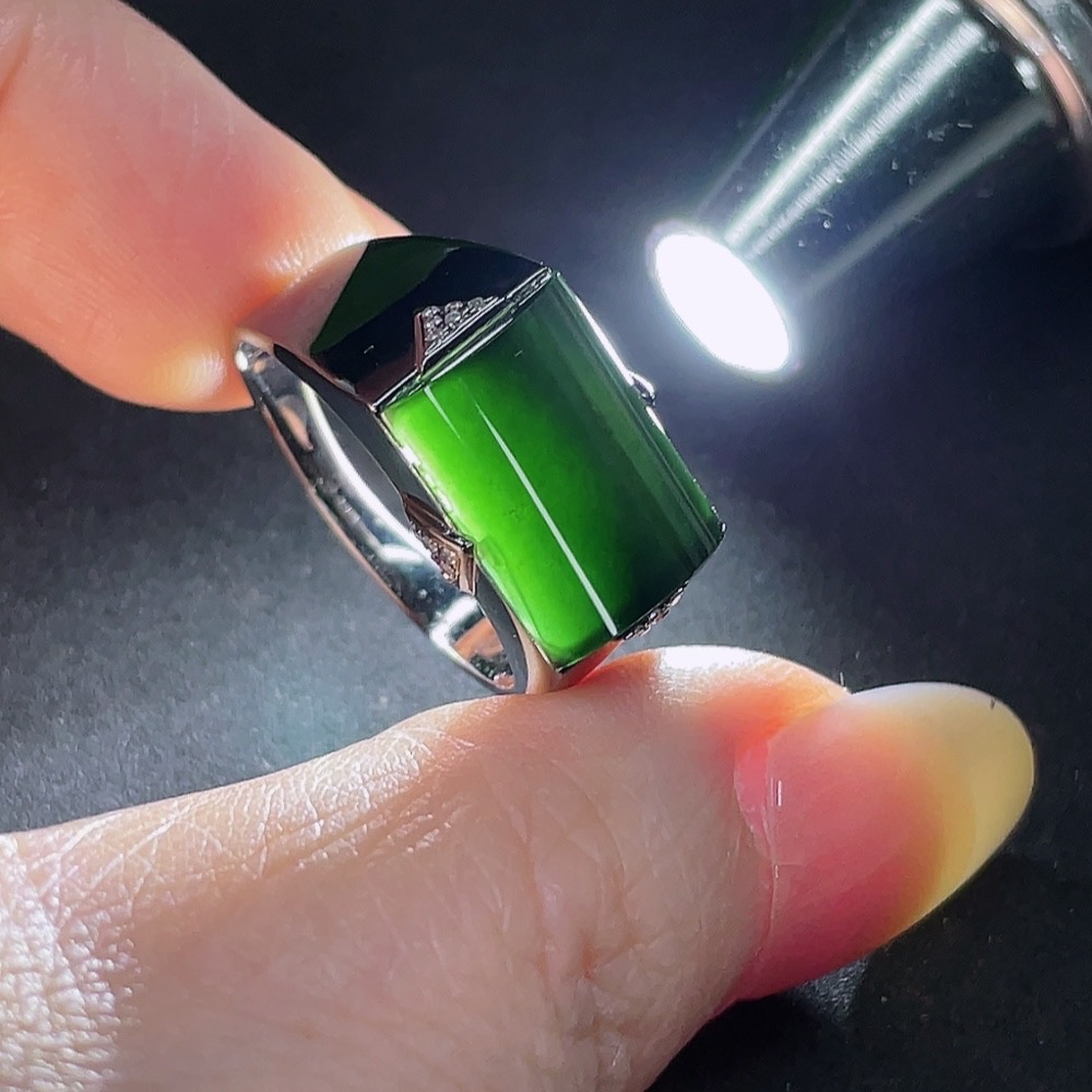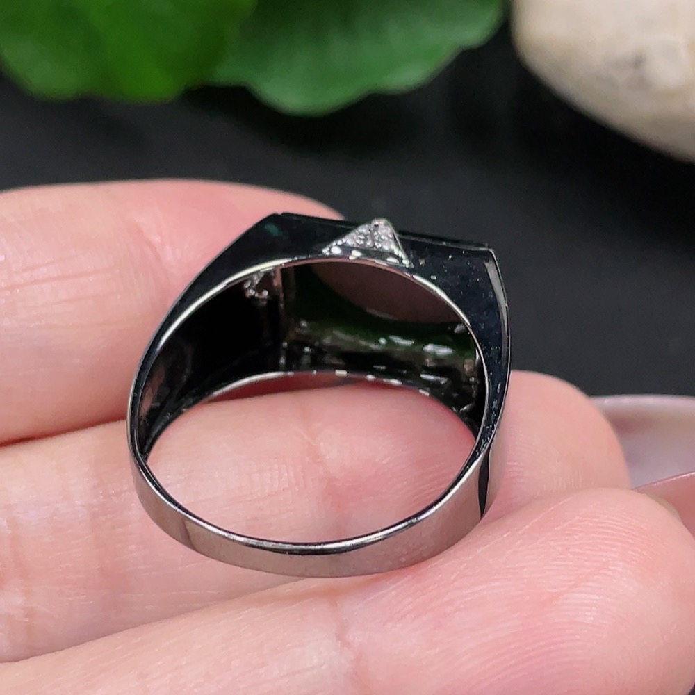 Jadeite Inlaid Ring Size 21 Unmarked Surface Tested 18K Gold Total Weight Approx. 4g (with Diamond Accents)