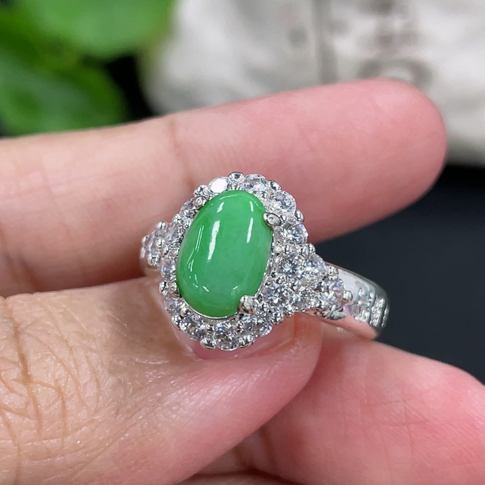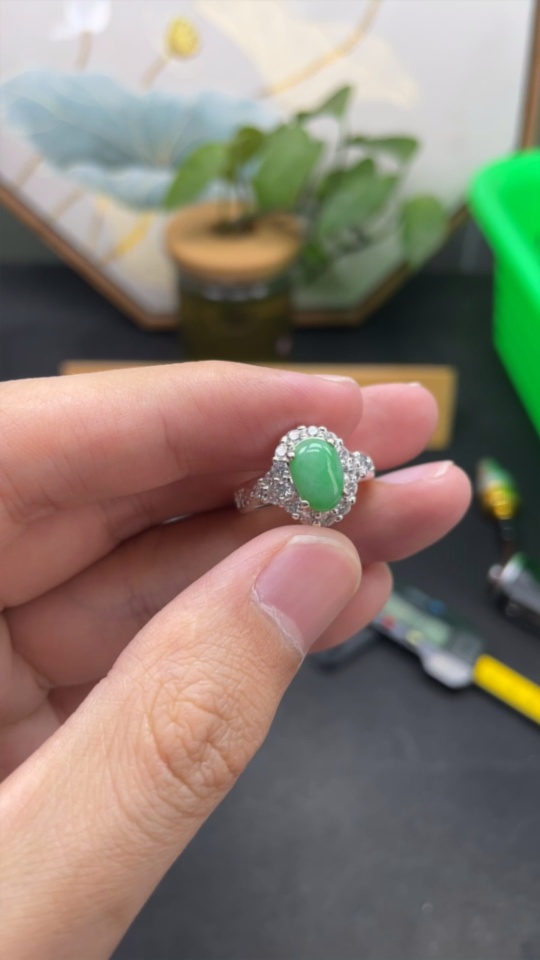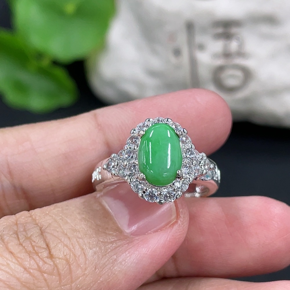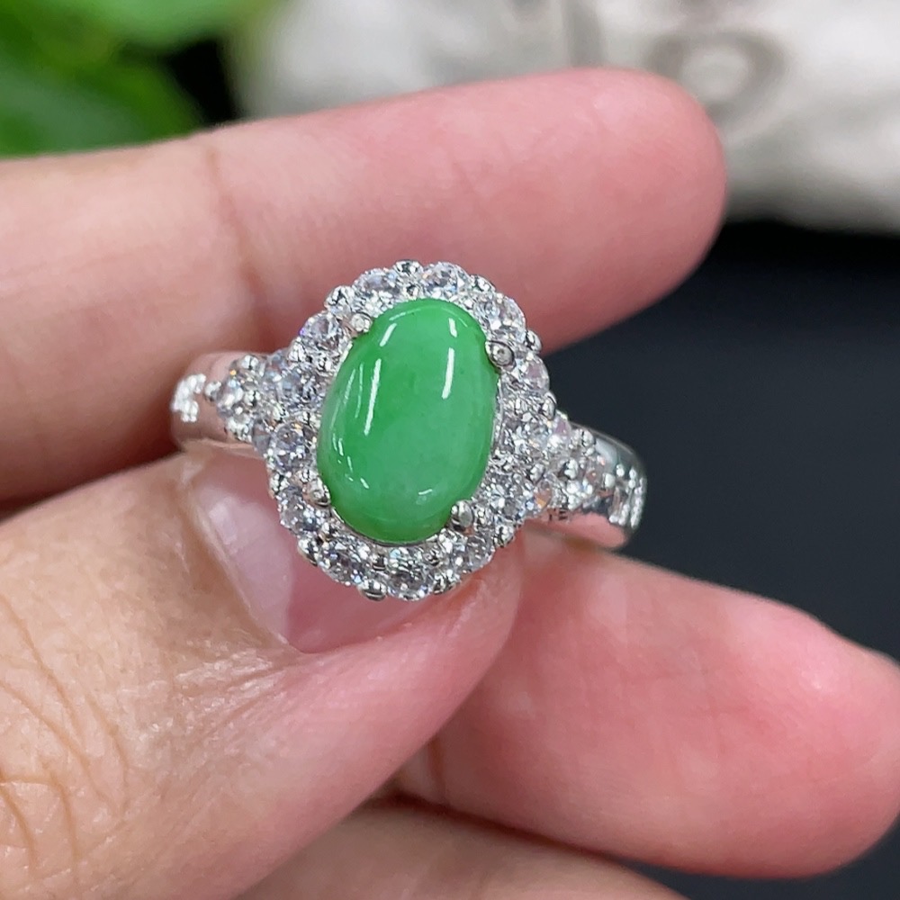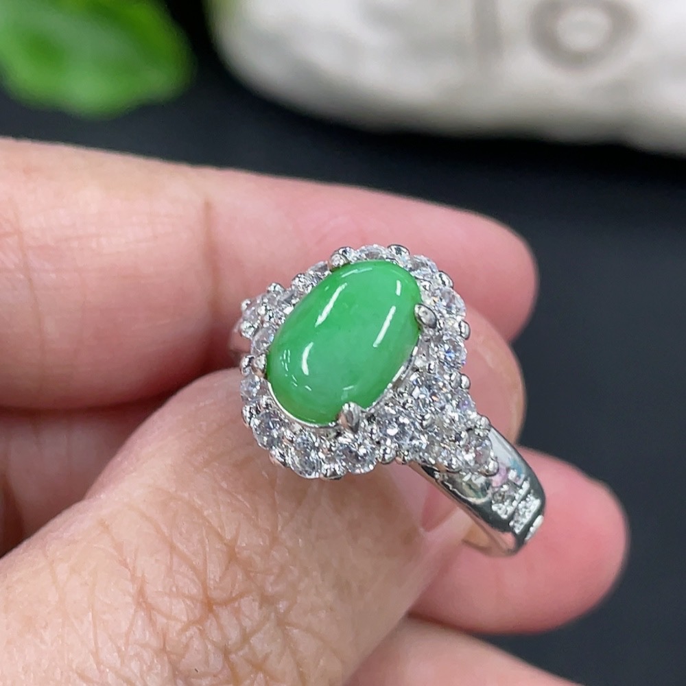 Jadeite inlaid cabochon with copper mount, total weight approx. 5g