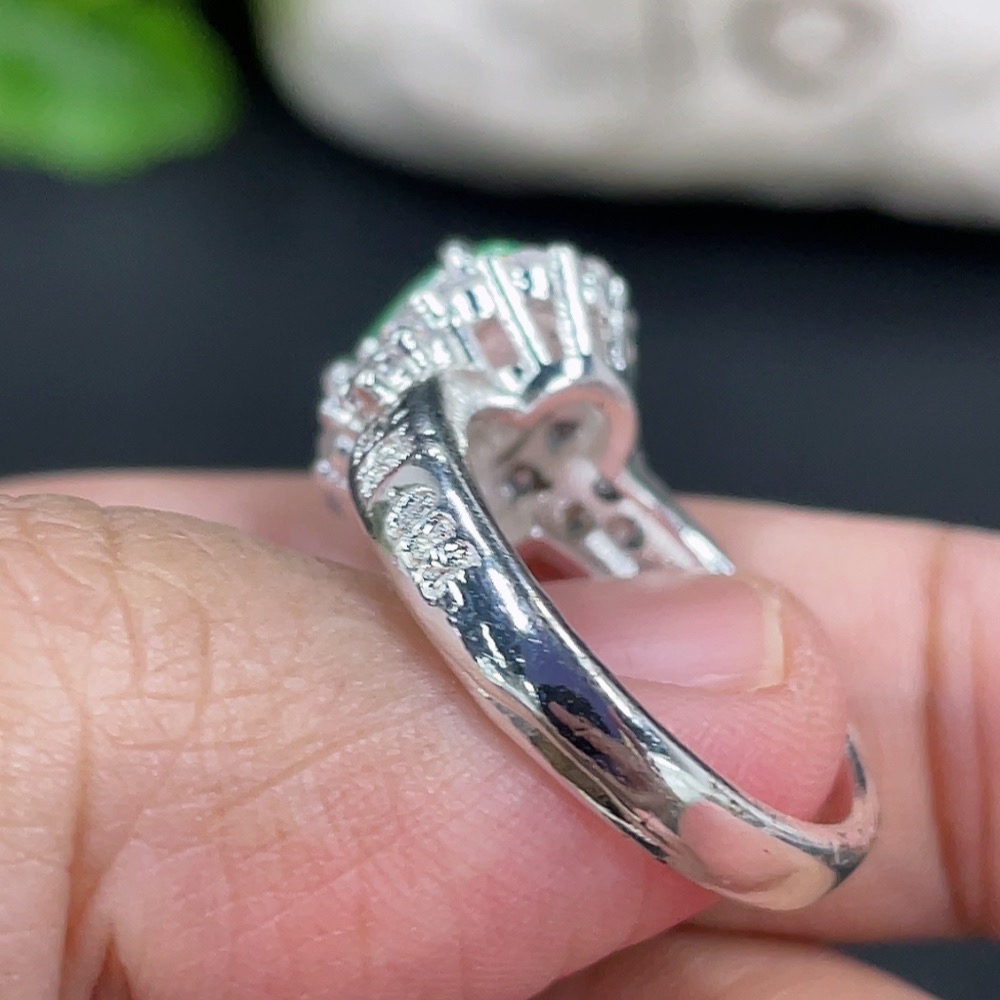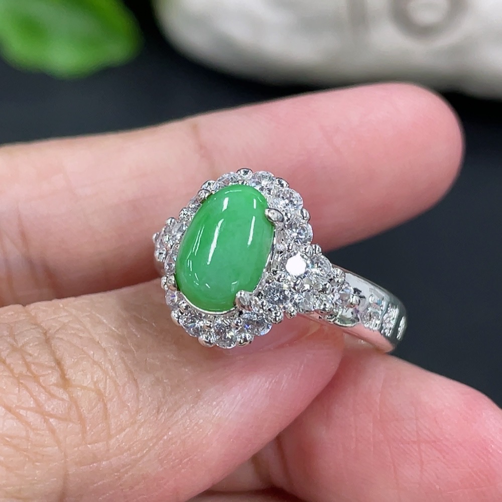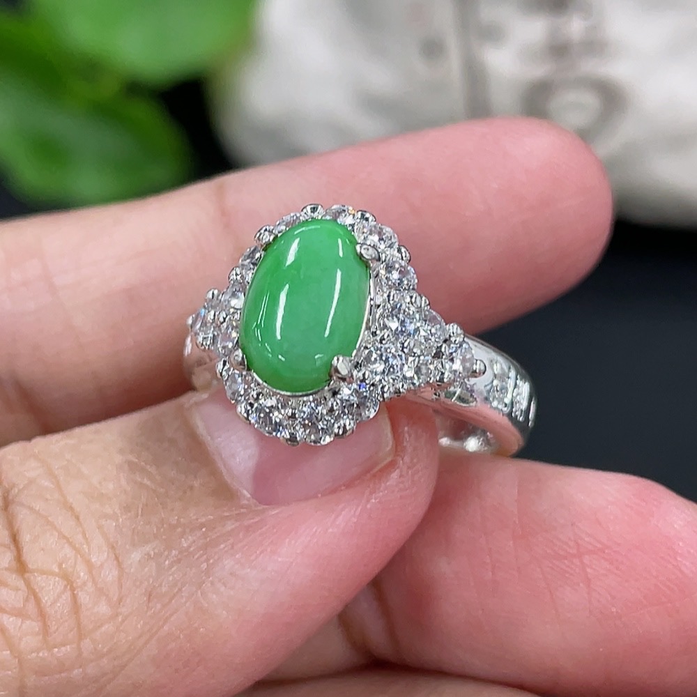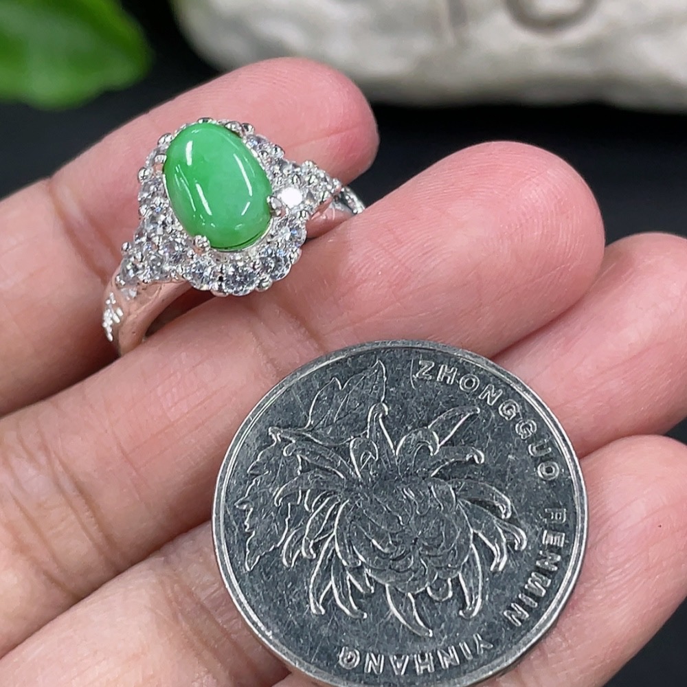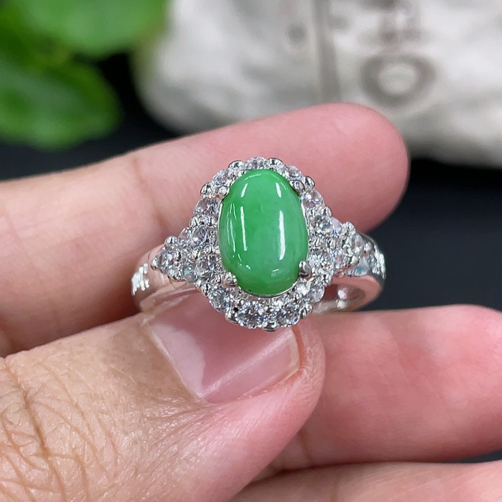 Jadeite inlaid cabochon with copper mount, total weight approx. 5g
