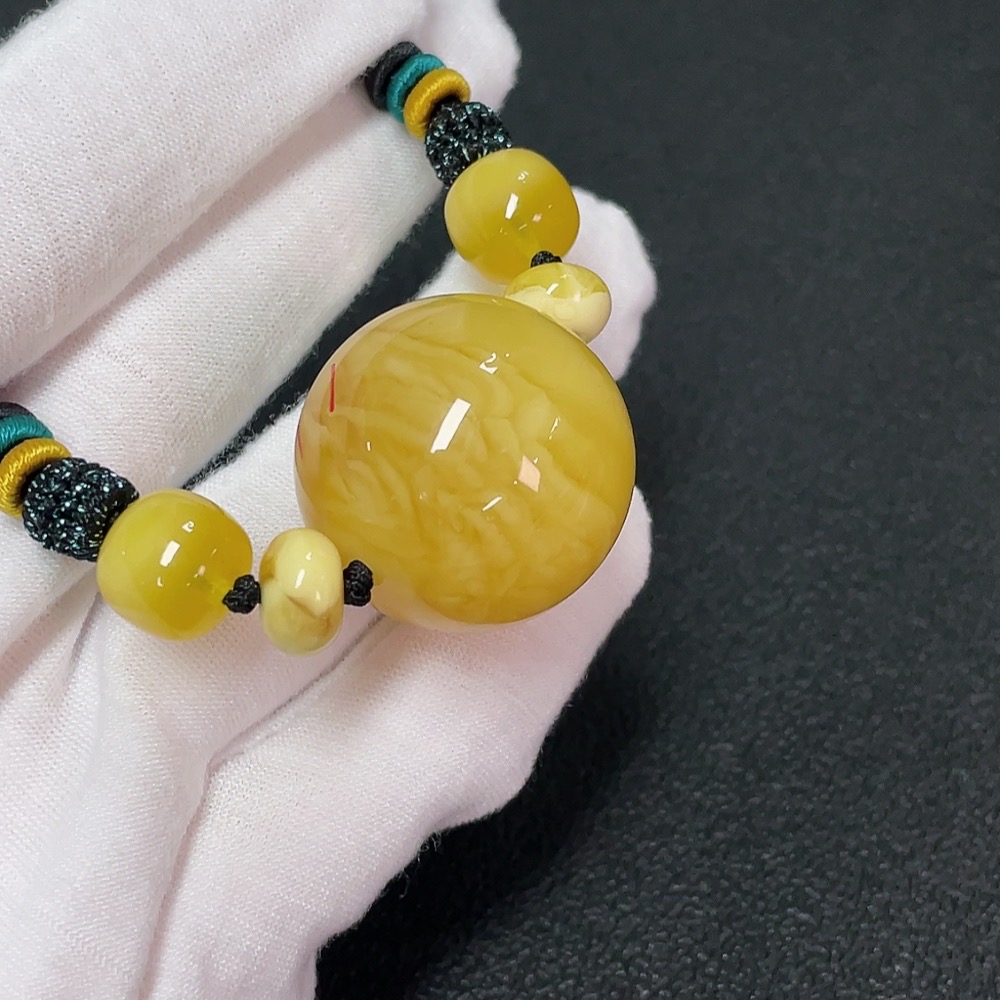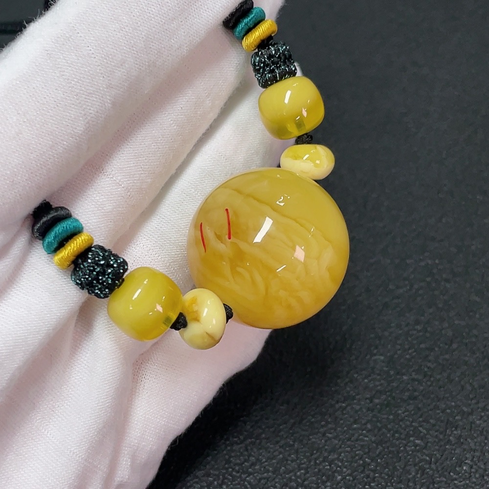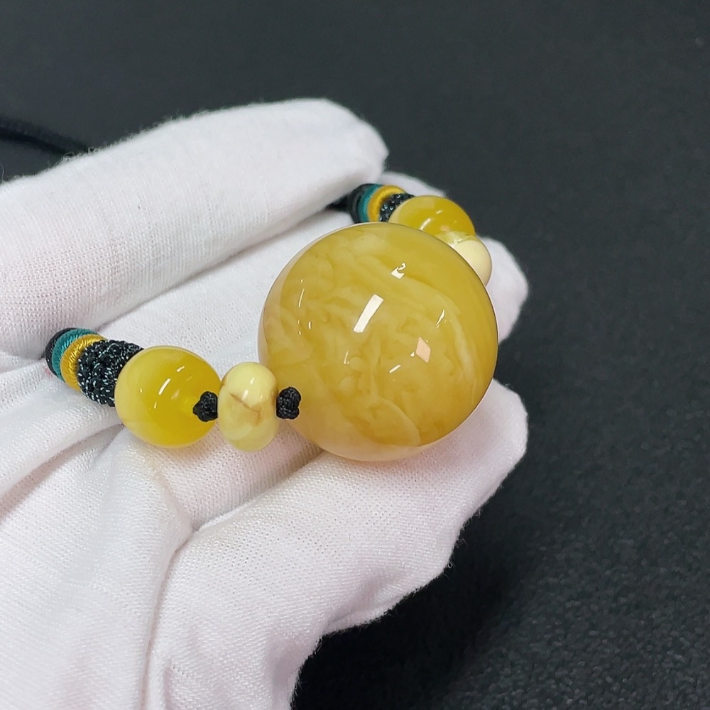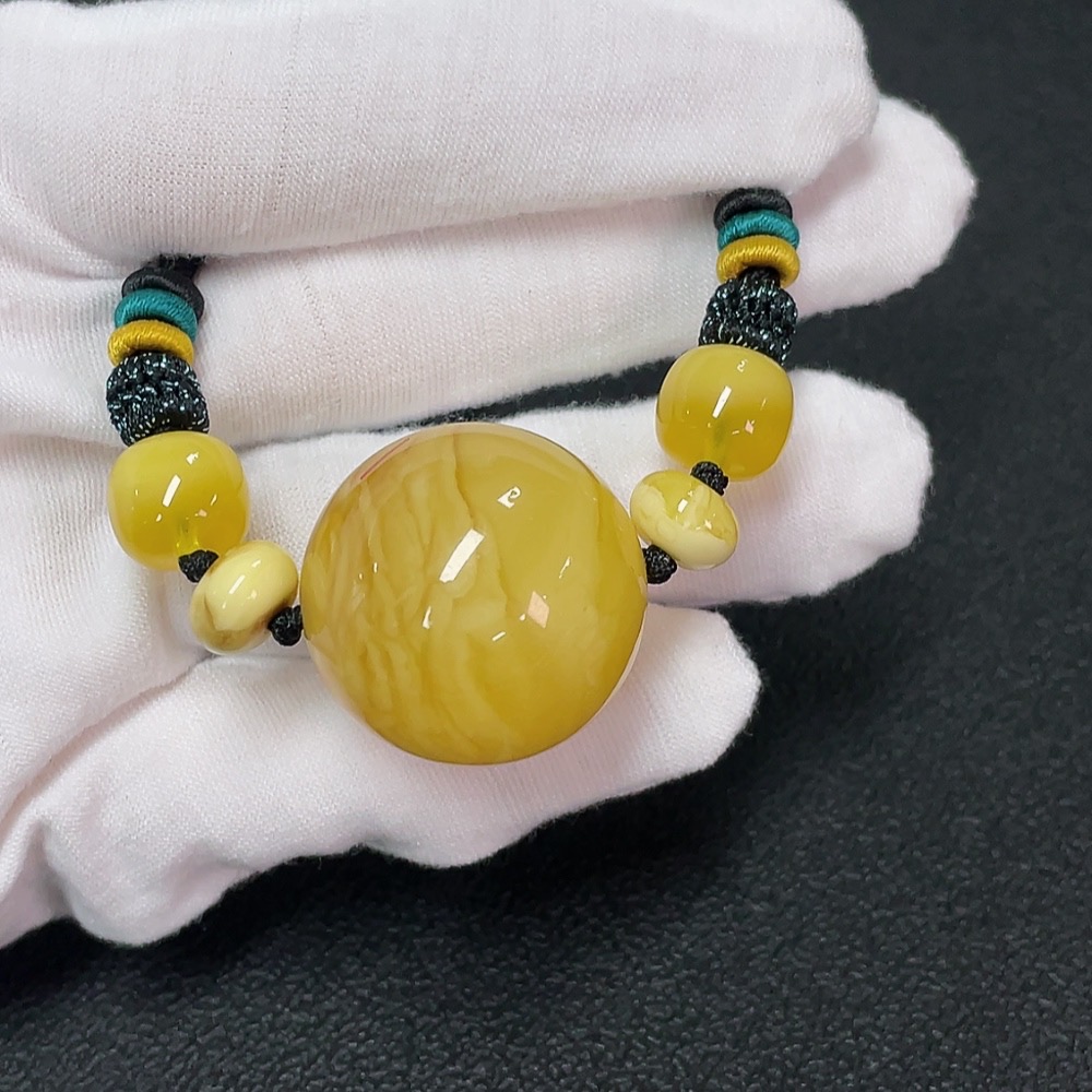 Amber Pendant, Approx. 26.7mm, Gross Weight with Cord Approx. 17.41g, Partially Repaired