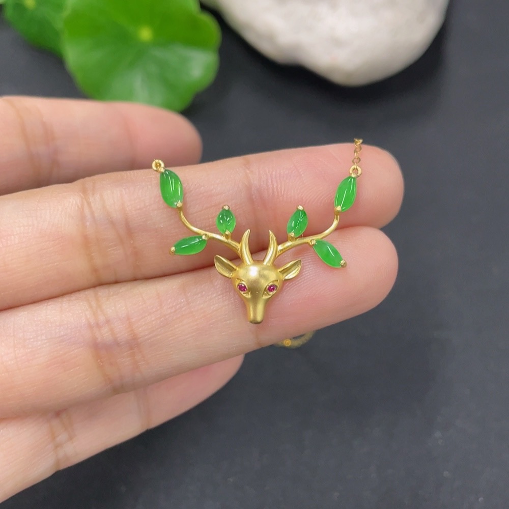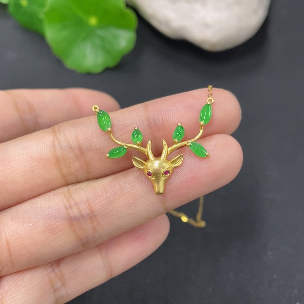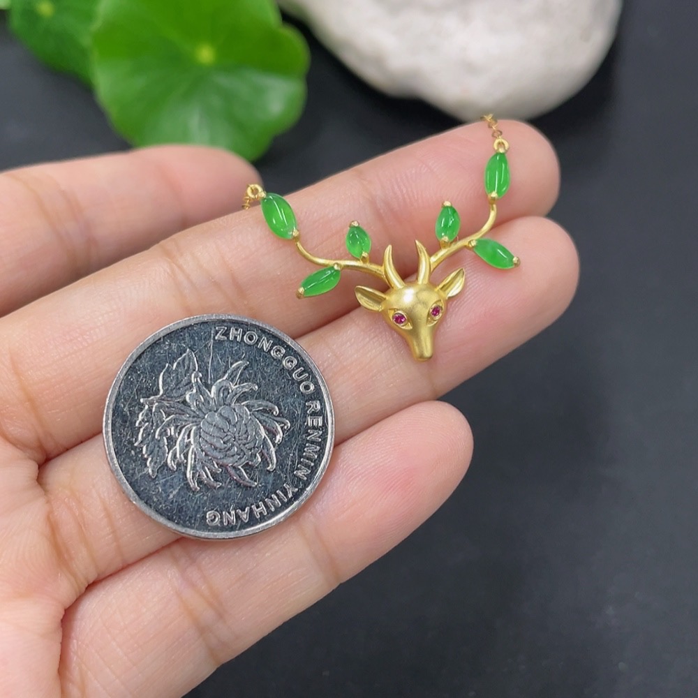Jadeite Inlaid Pendant 18k Total Weight Approx. 2.05g Including Chain