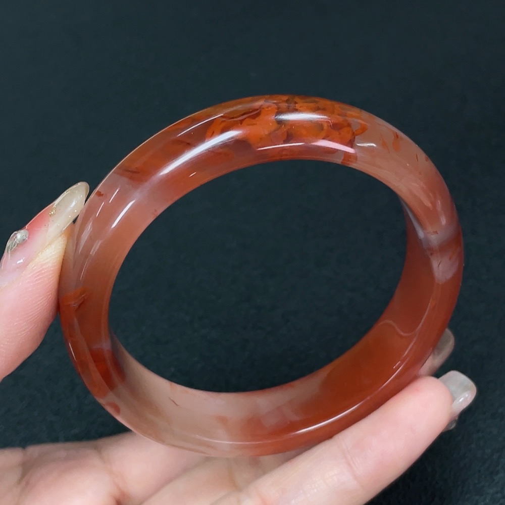 Southern Red Agate Round Bracelet Size 55.4 Total Weight Approx. 48.03g Visible Organic Matter