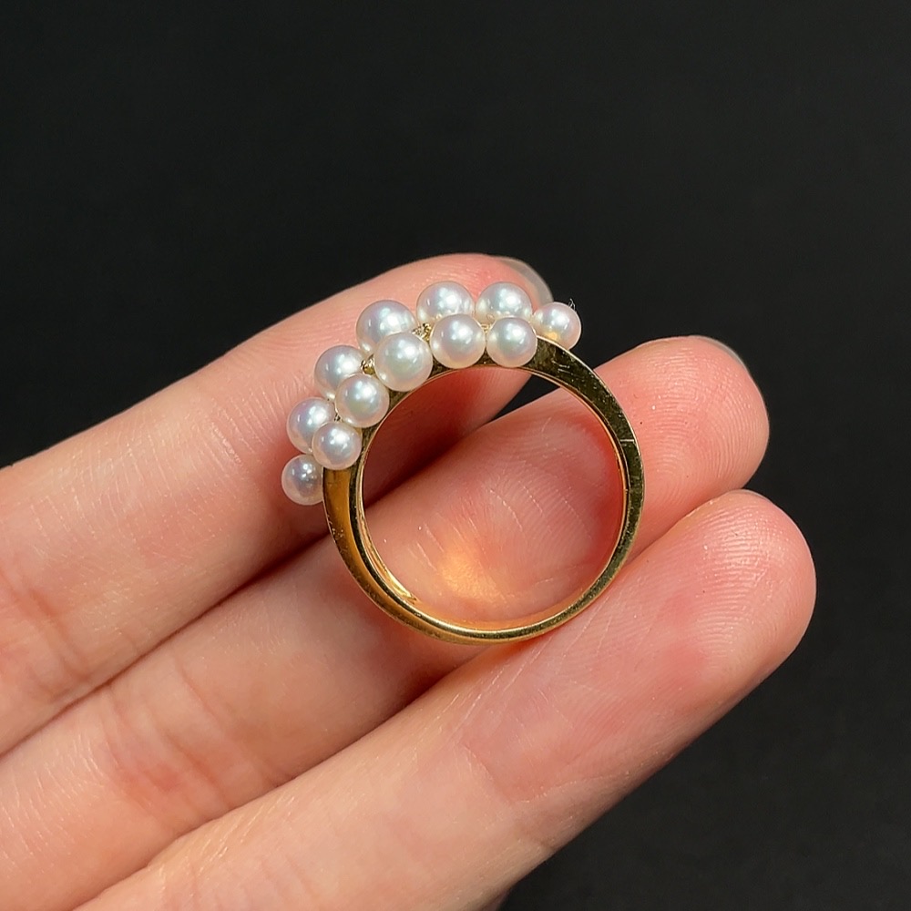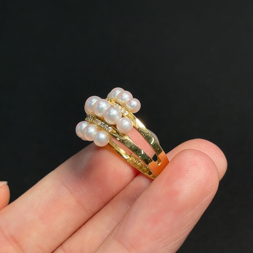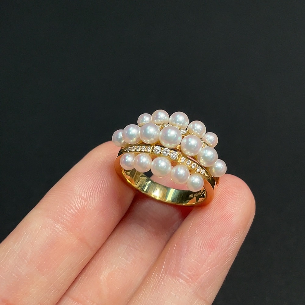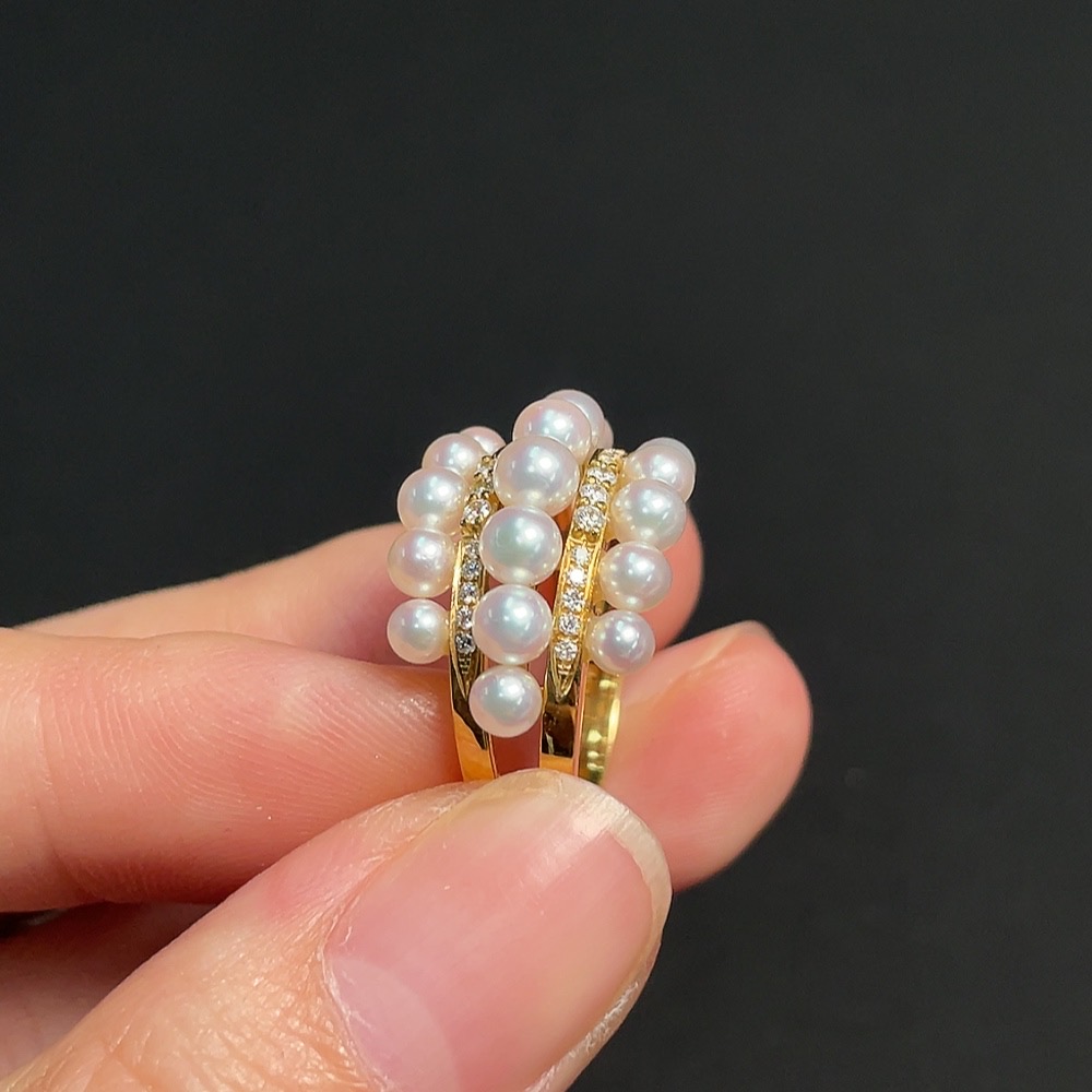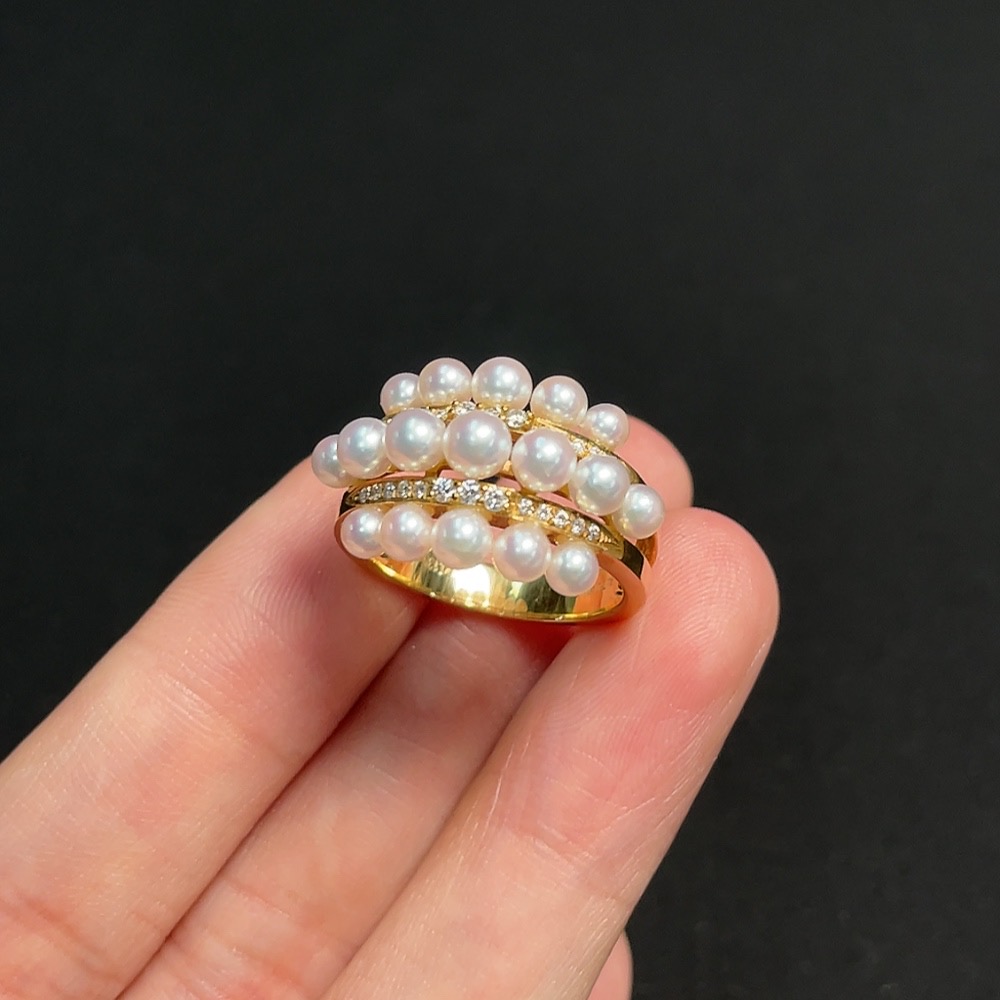 Seawater Pearl Inlaid Ring 18k Gold Size 14 Card 2.9-3.3mm Approx. Total Weight About 6.10g With Diamond Inlay