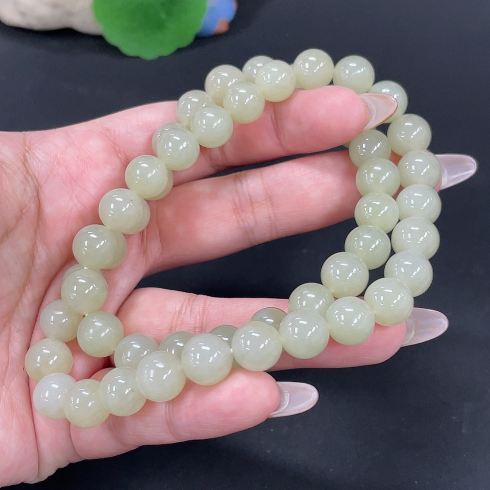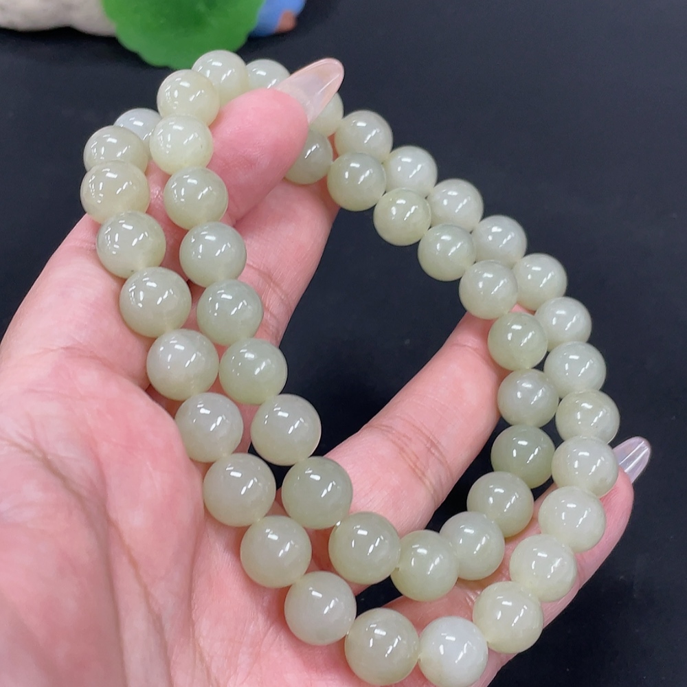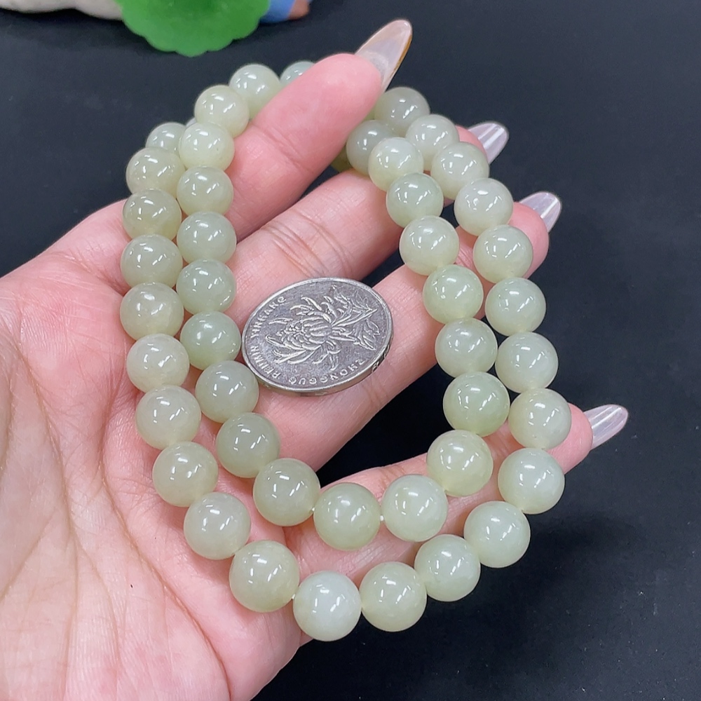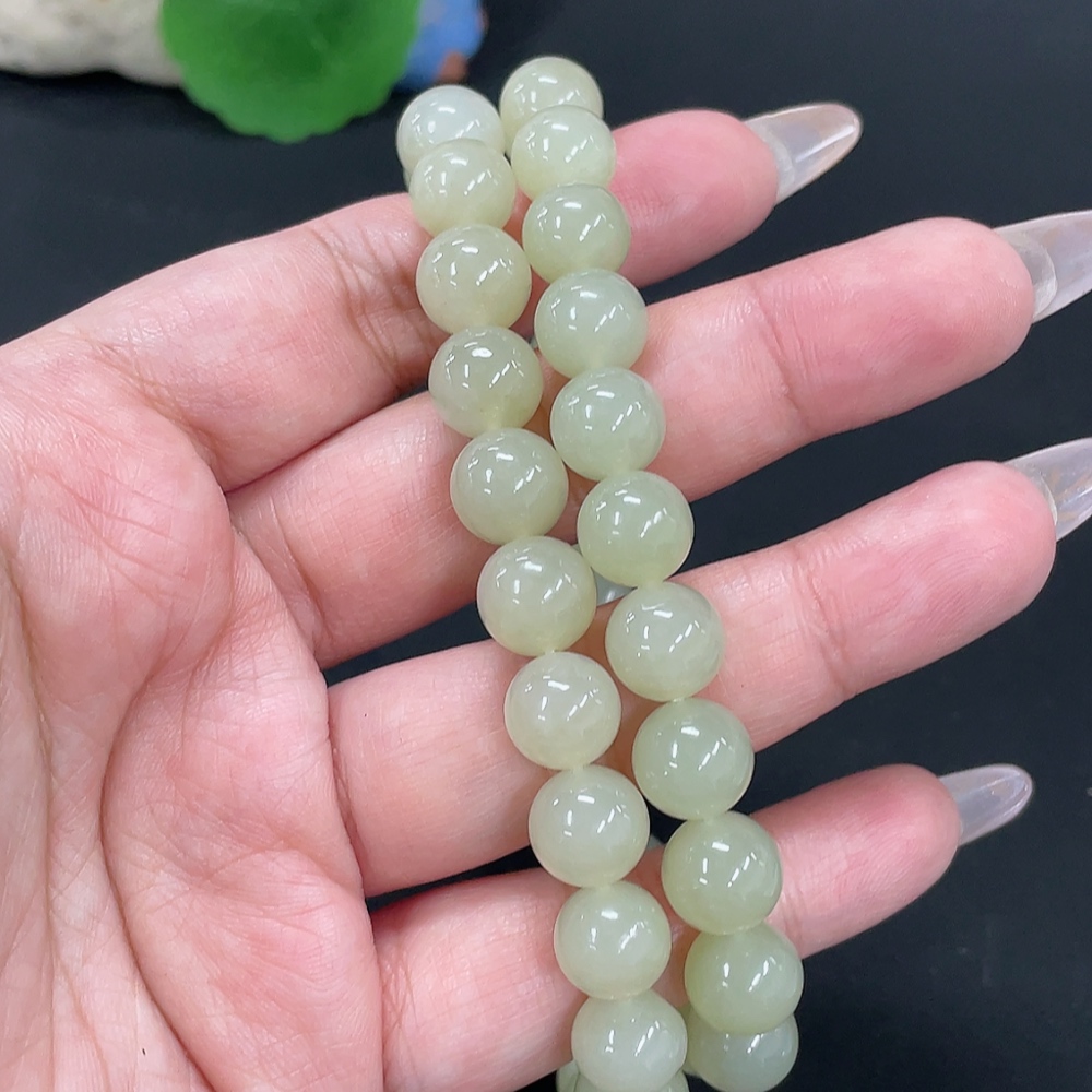 Hetian Jade Bead Necklace, approx. 9.7mm, total weight approx. 74.5g