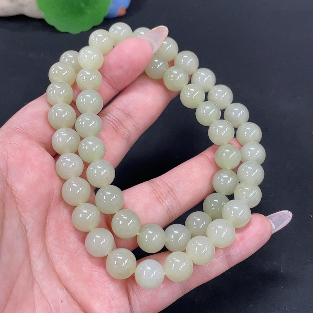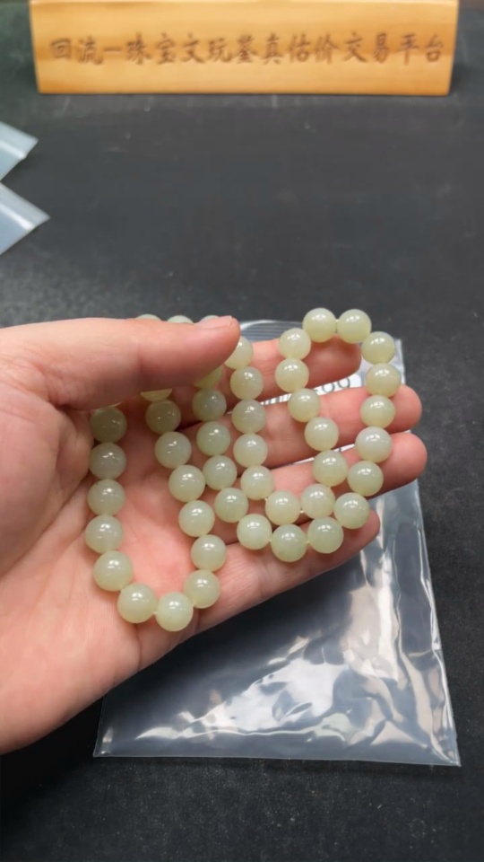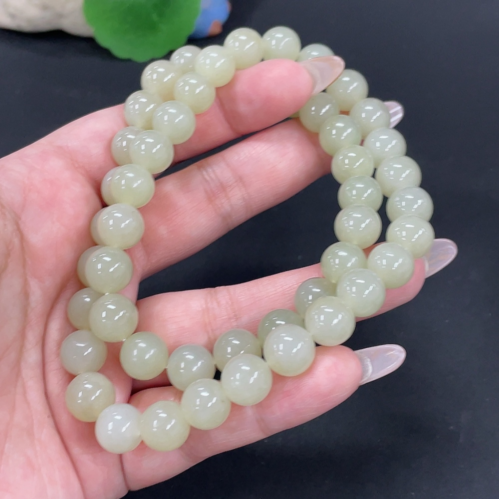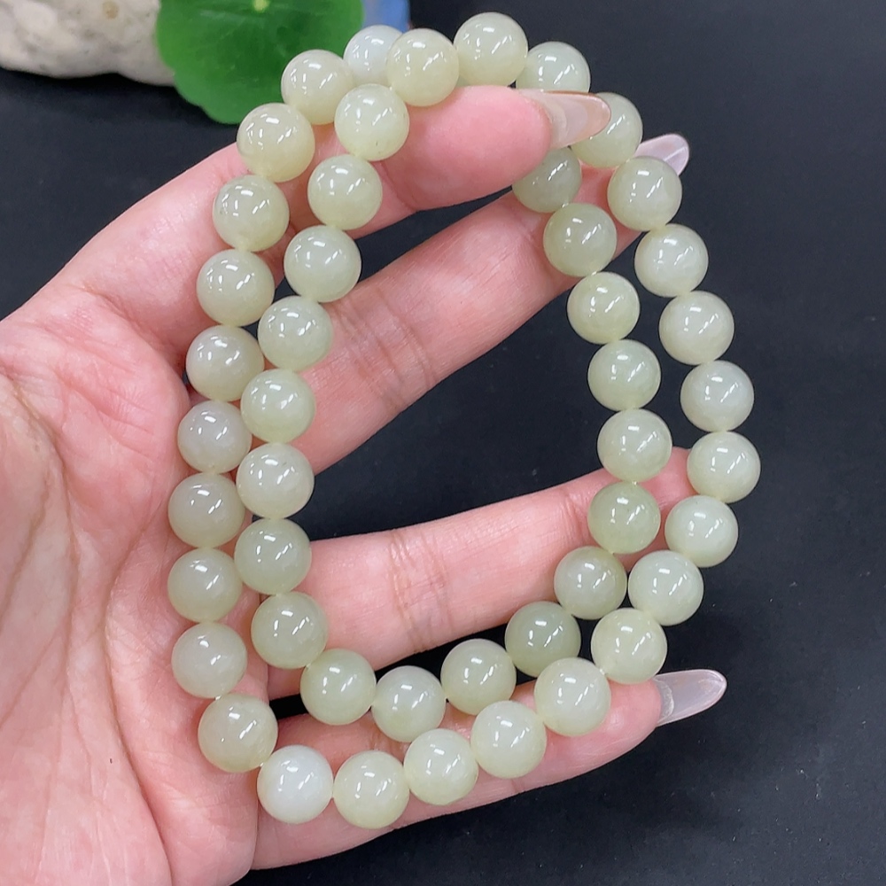 Hetian Jade Bead Necklace, approx. 9.7mm, total weight approx. 74.5g