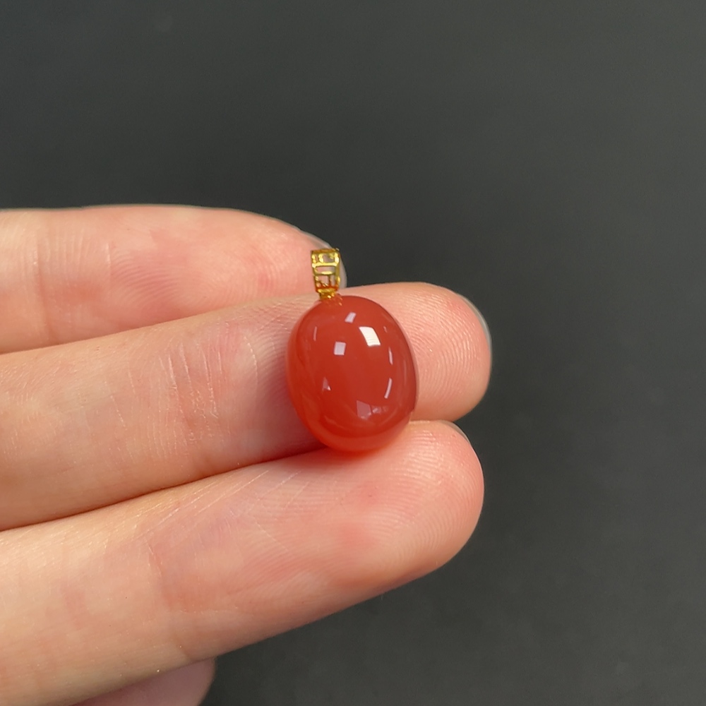 Red Agate Pendant Unmarked 18K Gold Tested Total Weight Approx. 1.72g