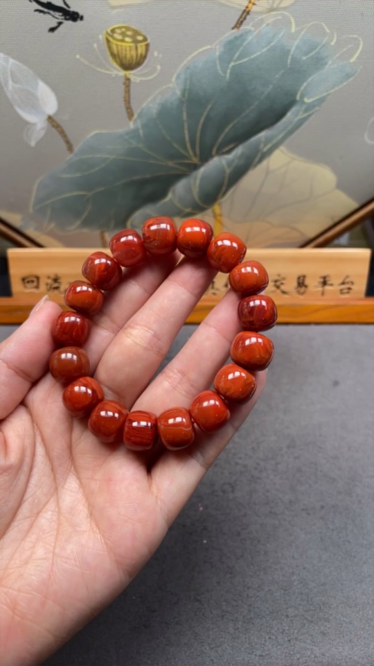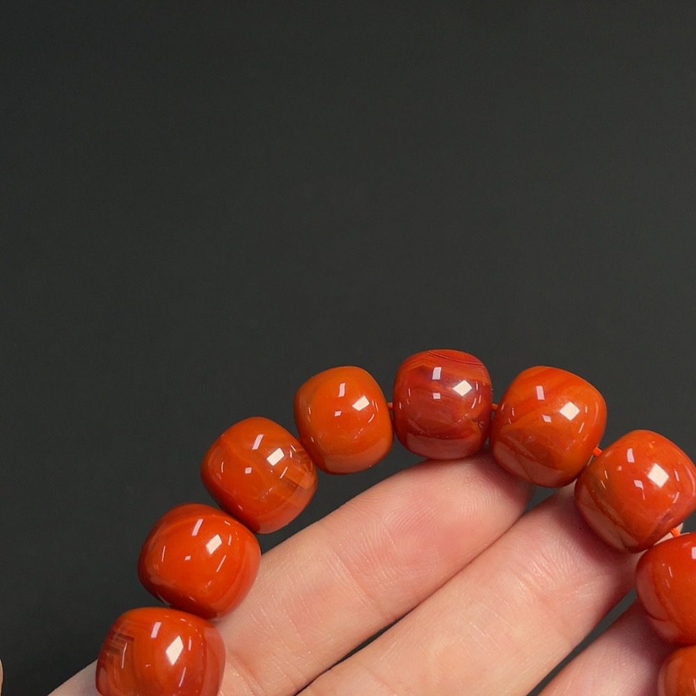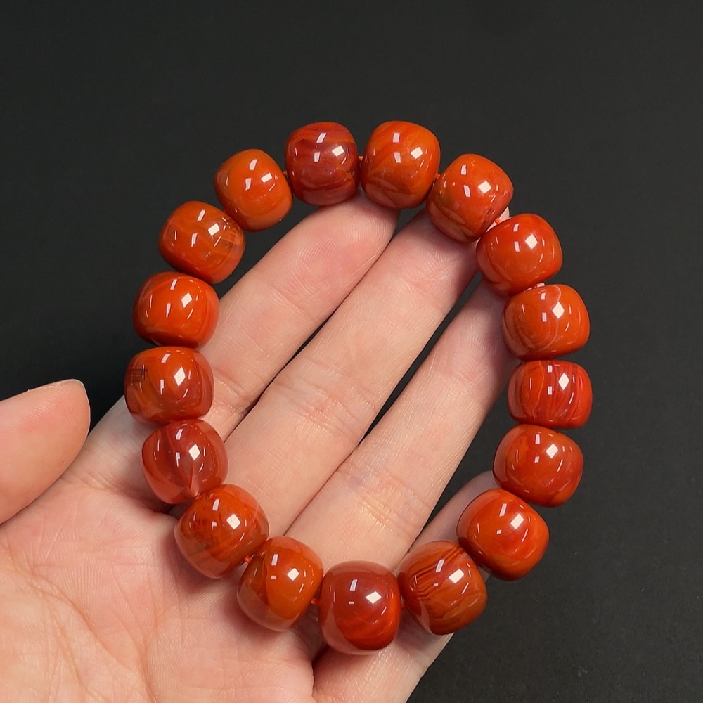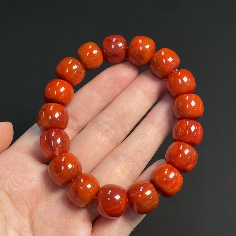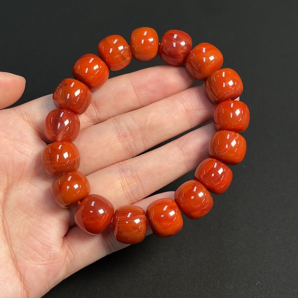South Red Agate Bracelet, approx. 13.2mm, total weight approx. 56.88g, visible organic matter
