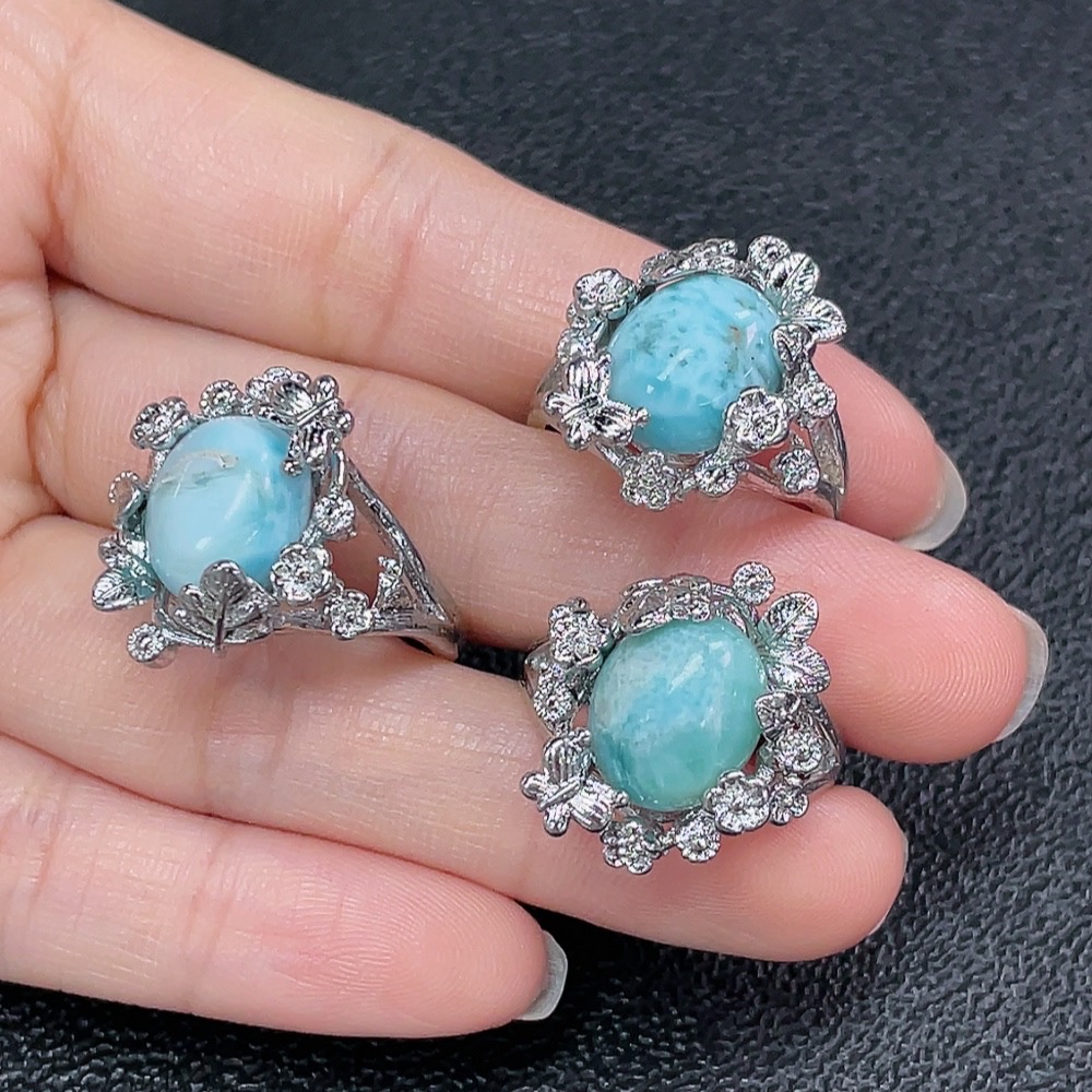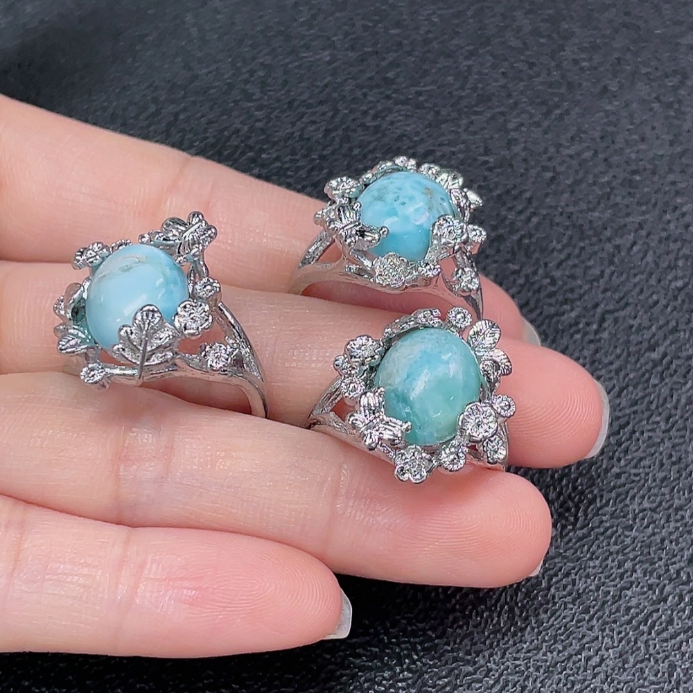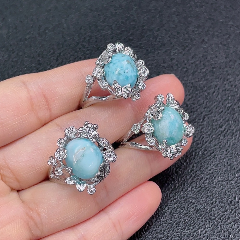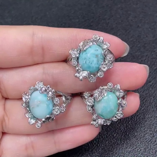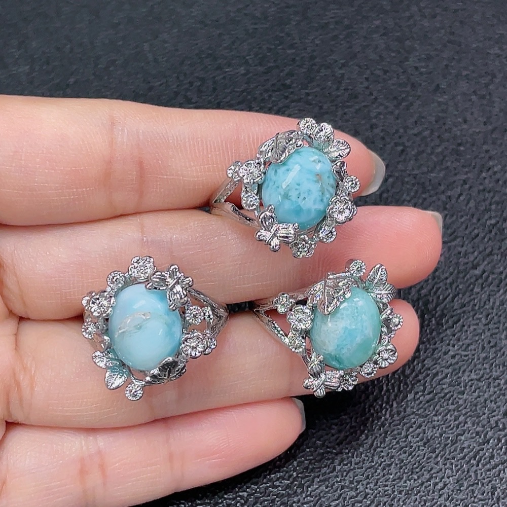Larimar Ring, Non-Gold, Adjustable, Total Weight Approx. 15.85g, Sell as a Lot