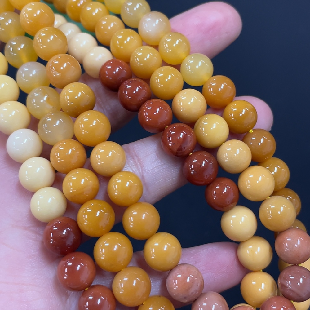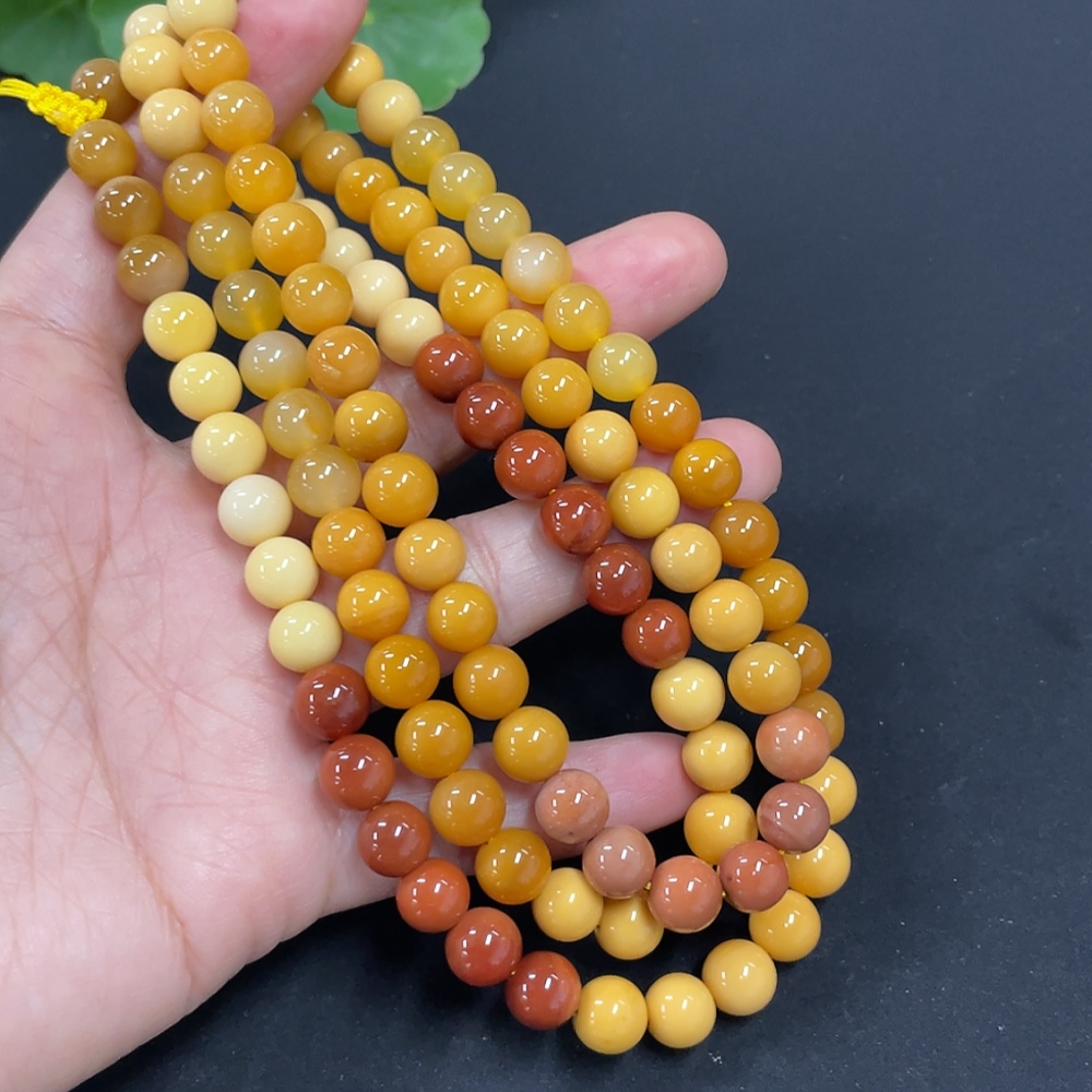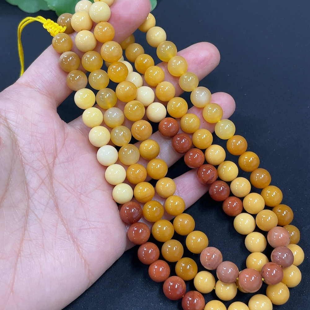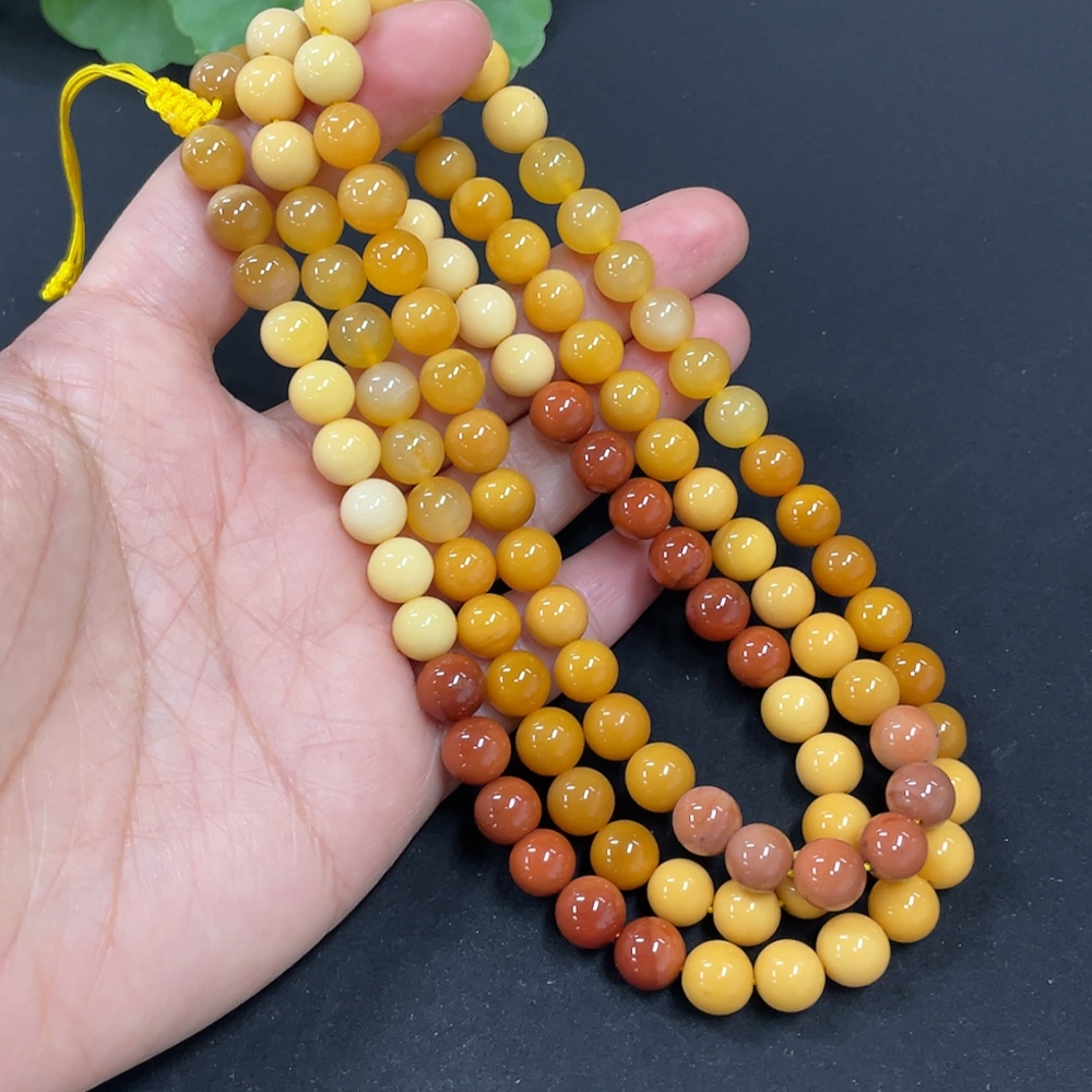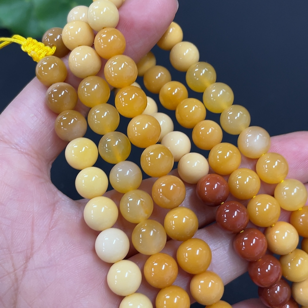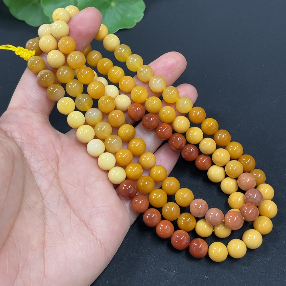 Yellow Dragon Jade Bead Necklace, Approx. 7.7mm, Total Weight Approx. 66.5g