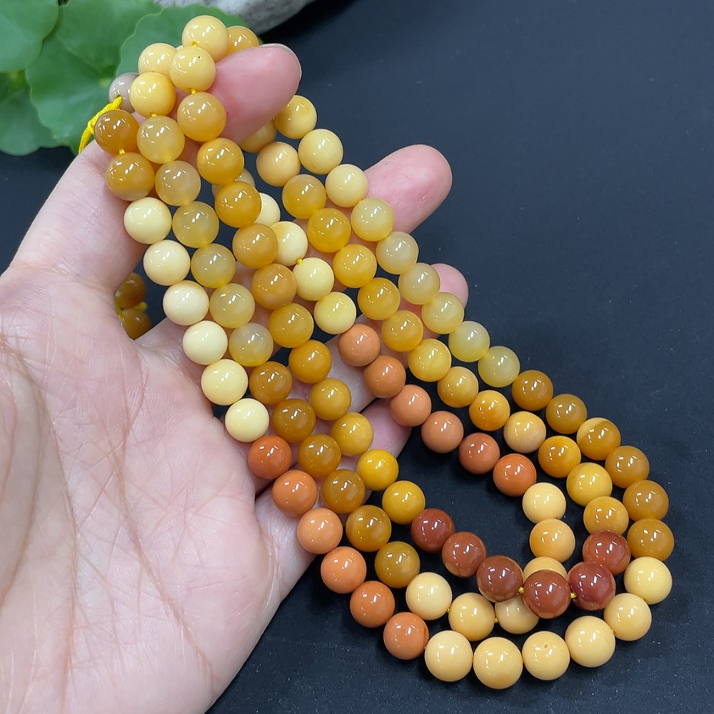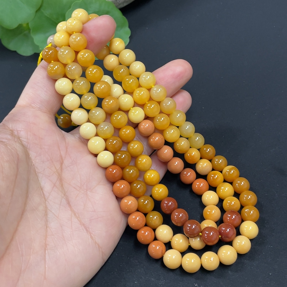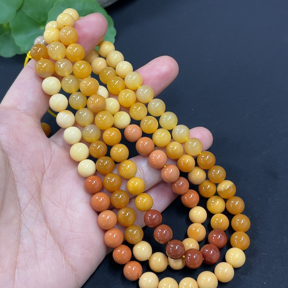 Yellow Dragon Jade Bead Necklace, approx. 7.6mm, total weight approx. 66.2g
