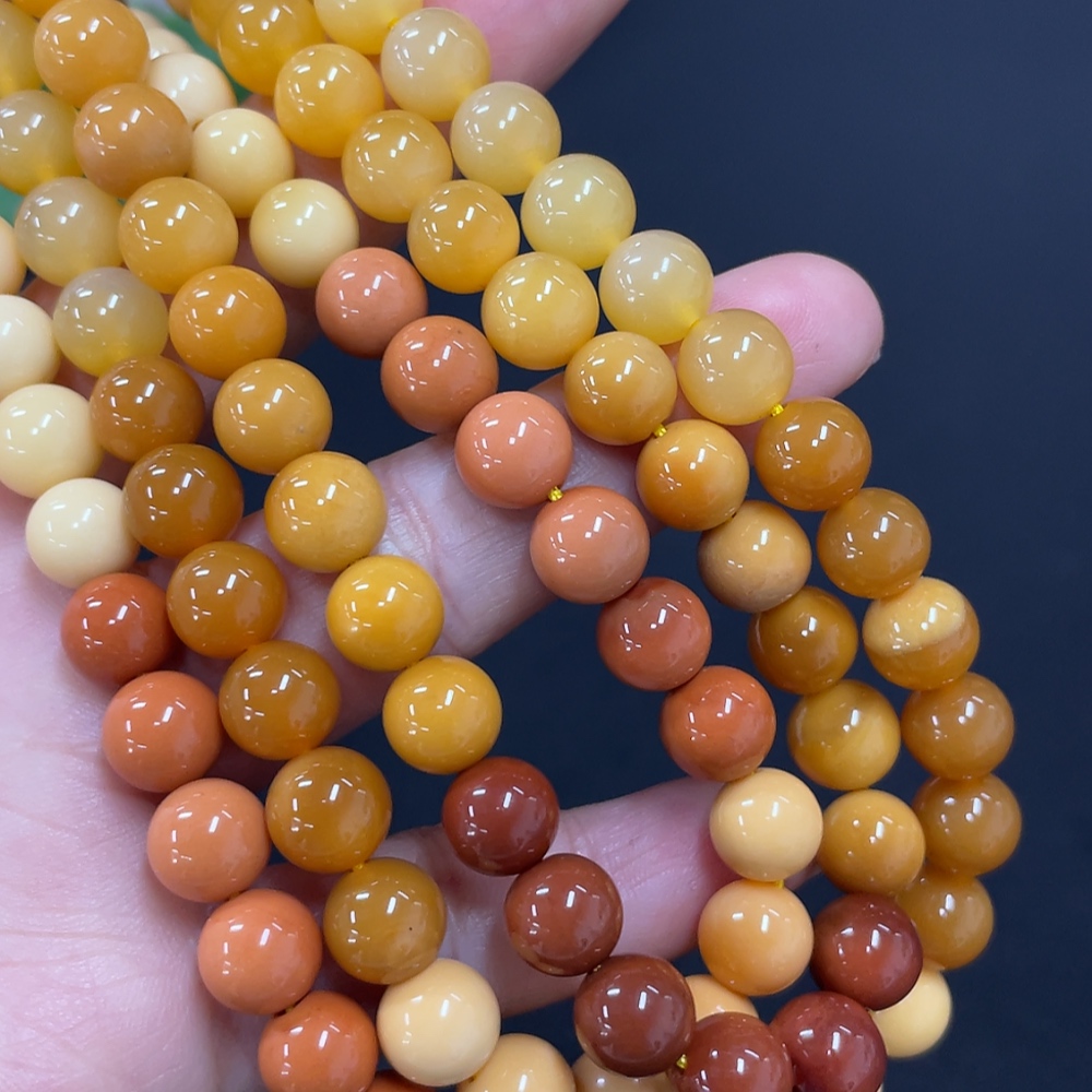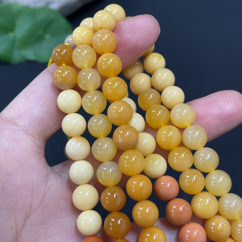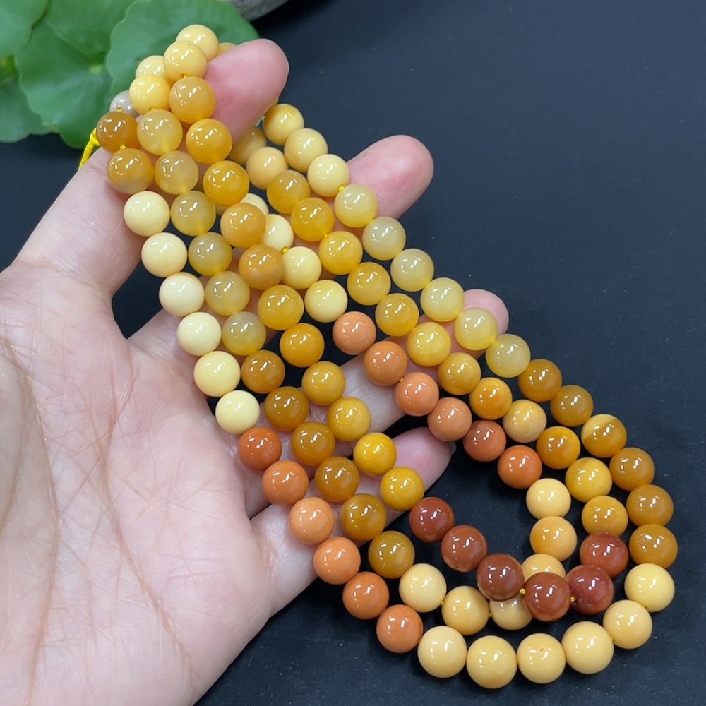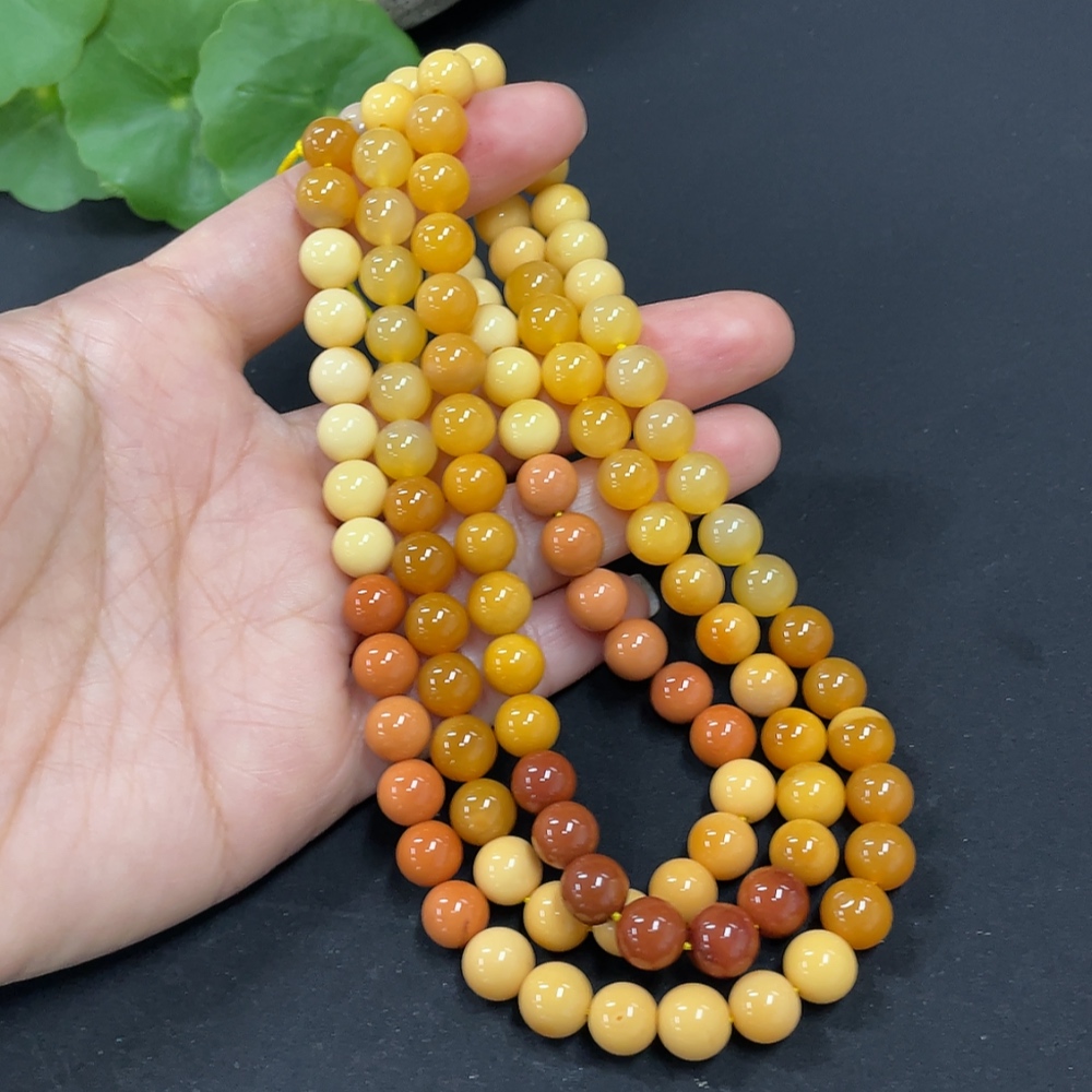 Yellow Dragon Jade Bead Necklace, approx. 7.6mm, total weight approx. 66.2g