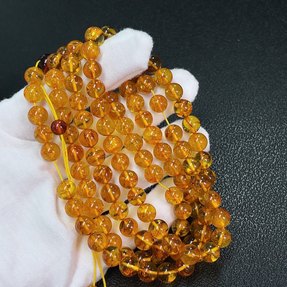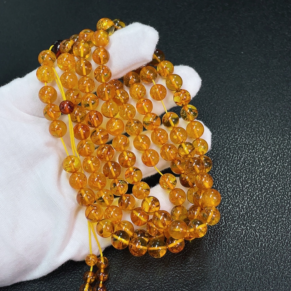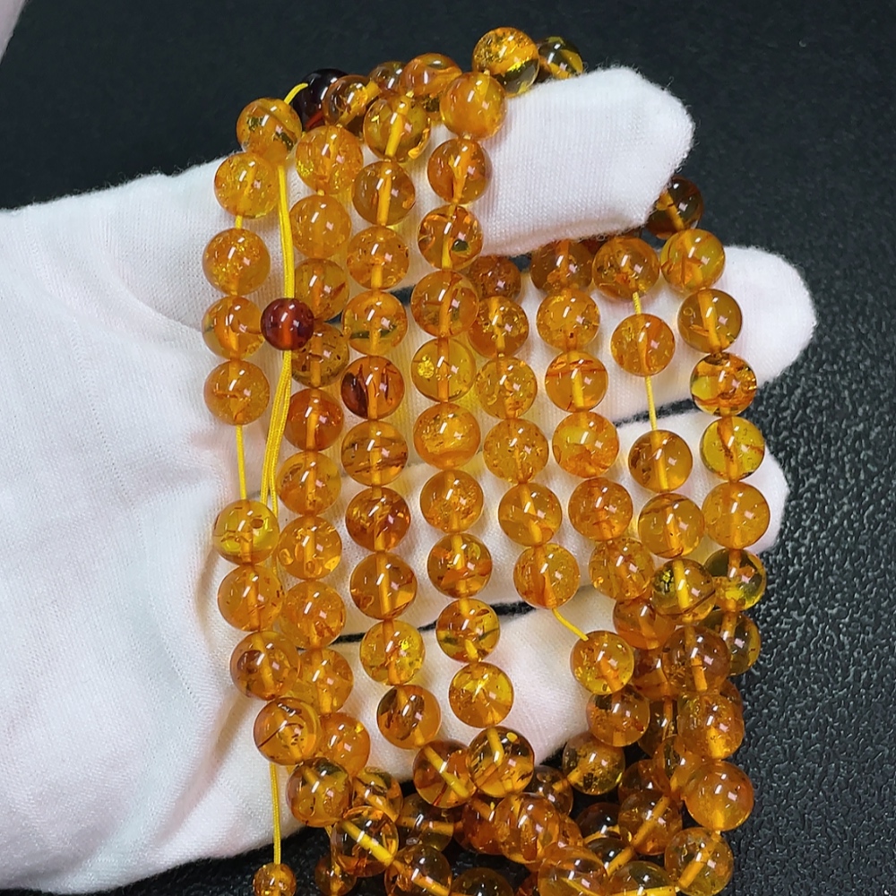 Amber Beeswax Bead Strand Total Weight Approx. 29.21g Size Approx. 7.3mm