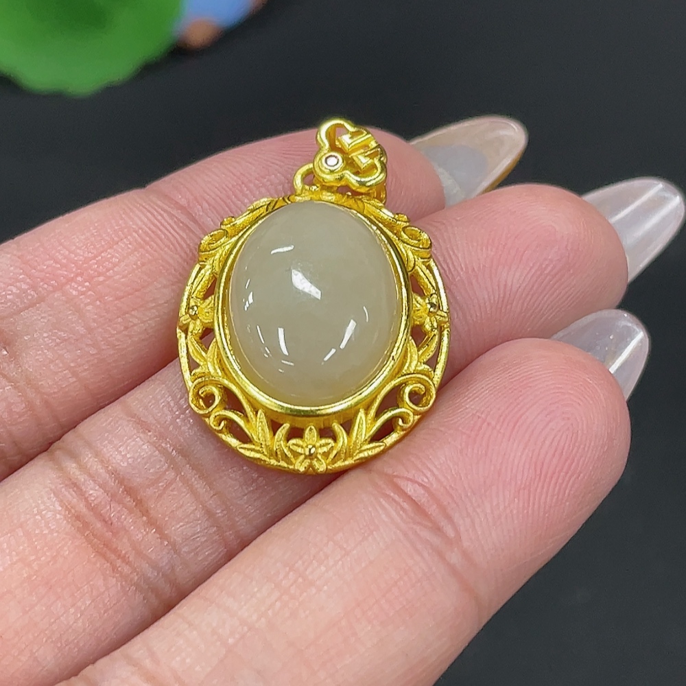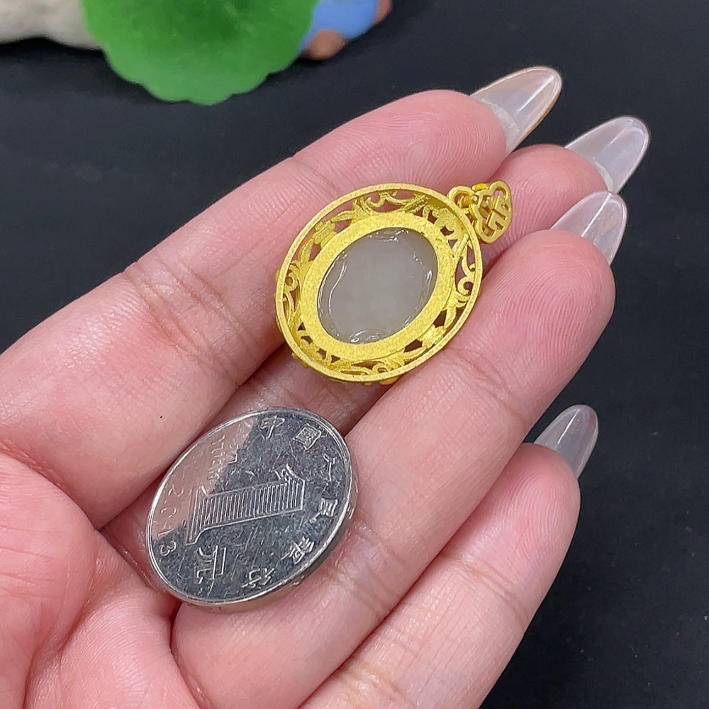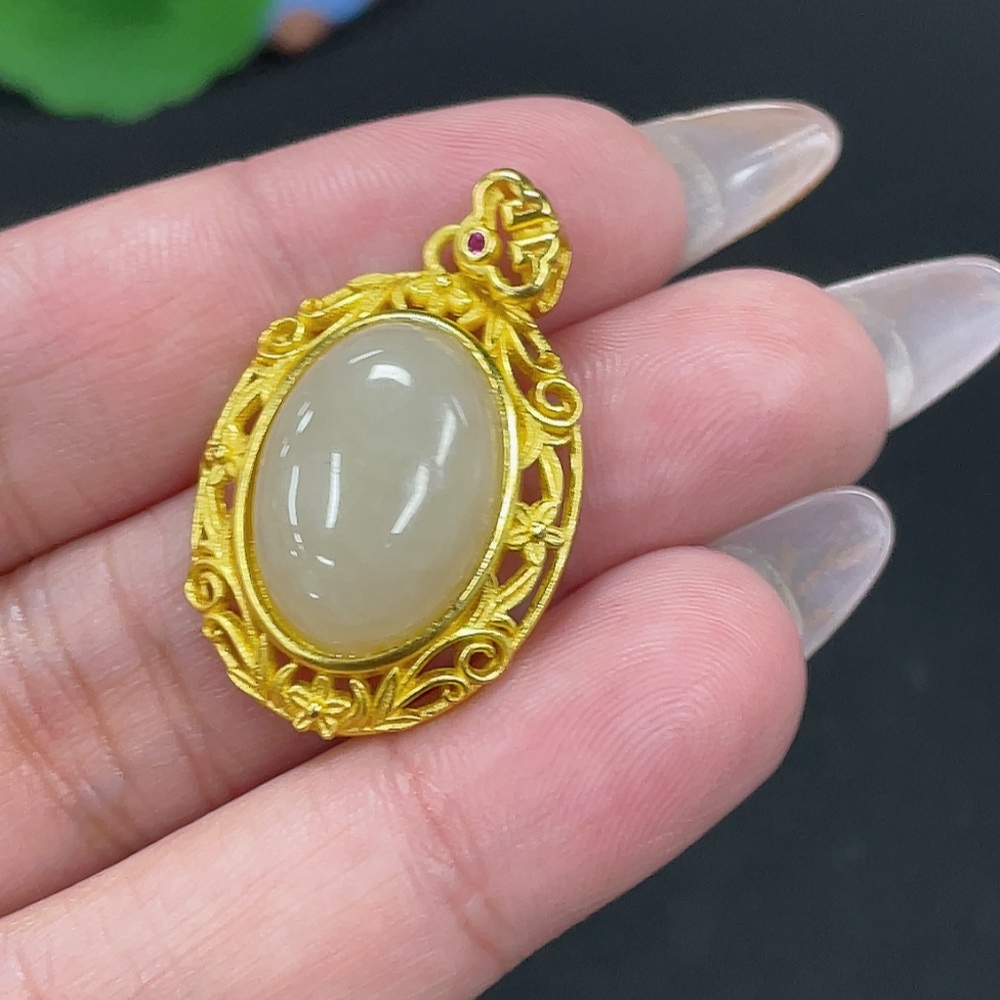 Hetian Jade Inlaid Pendant Total Weight Approx. 4.4g Non-Gold