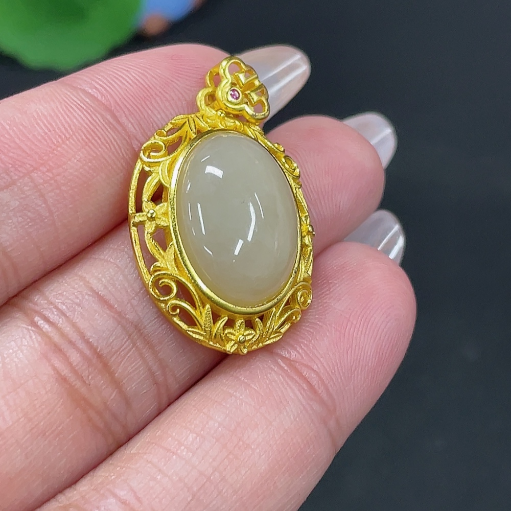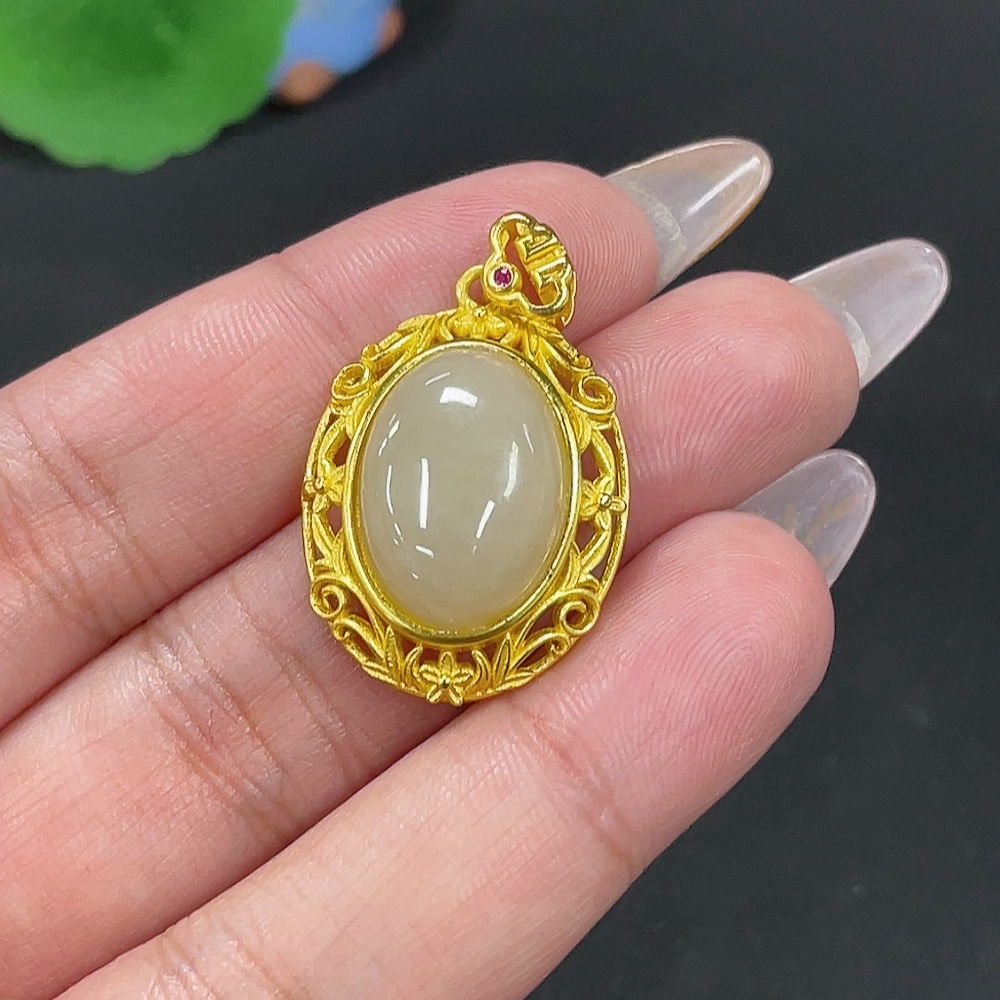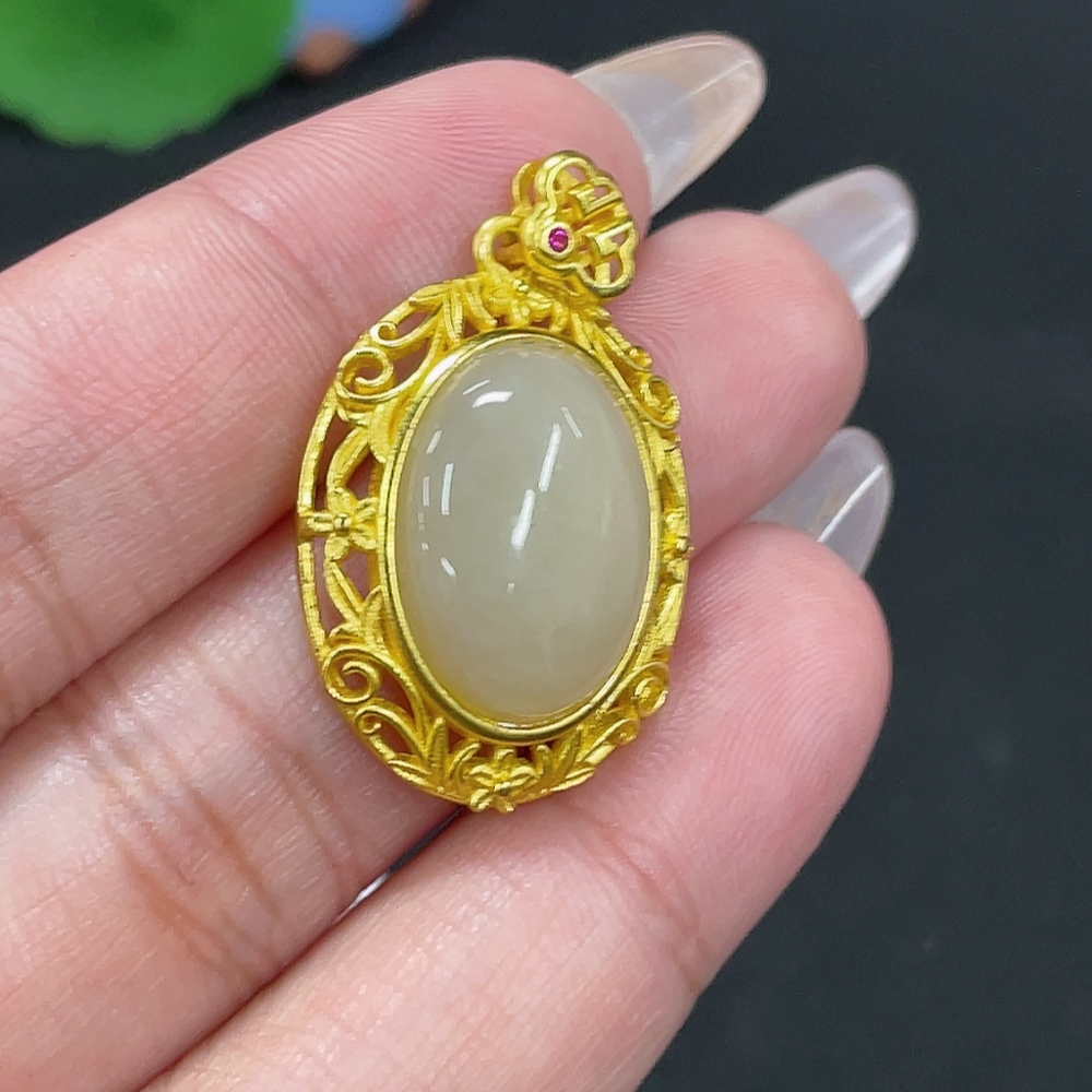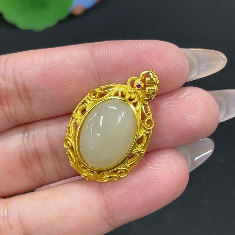 Hetian Jade Inlaid Pendant Total Weight Approx. 4.4g Non-Gold