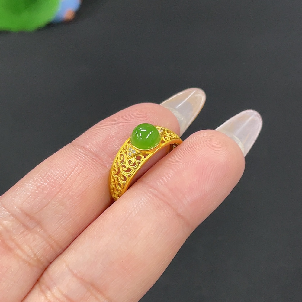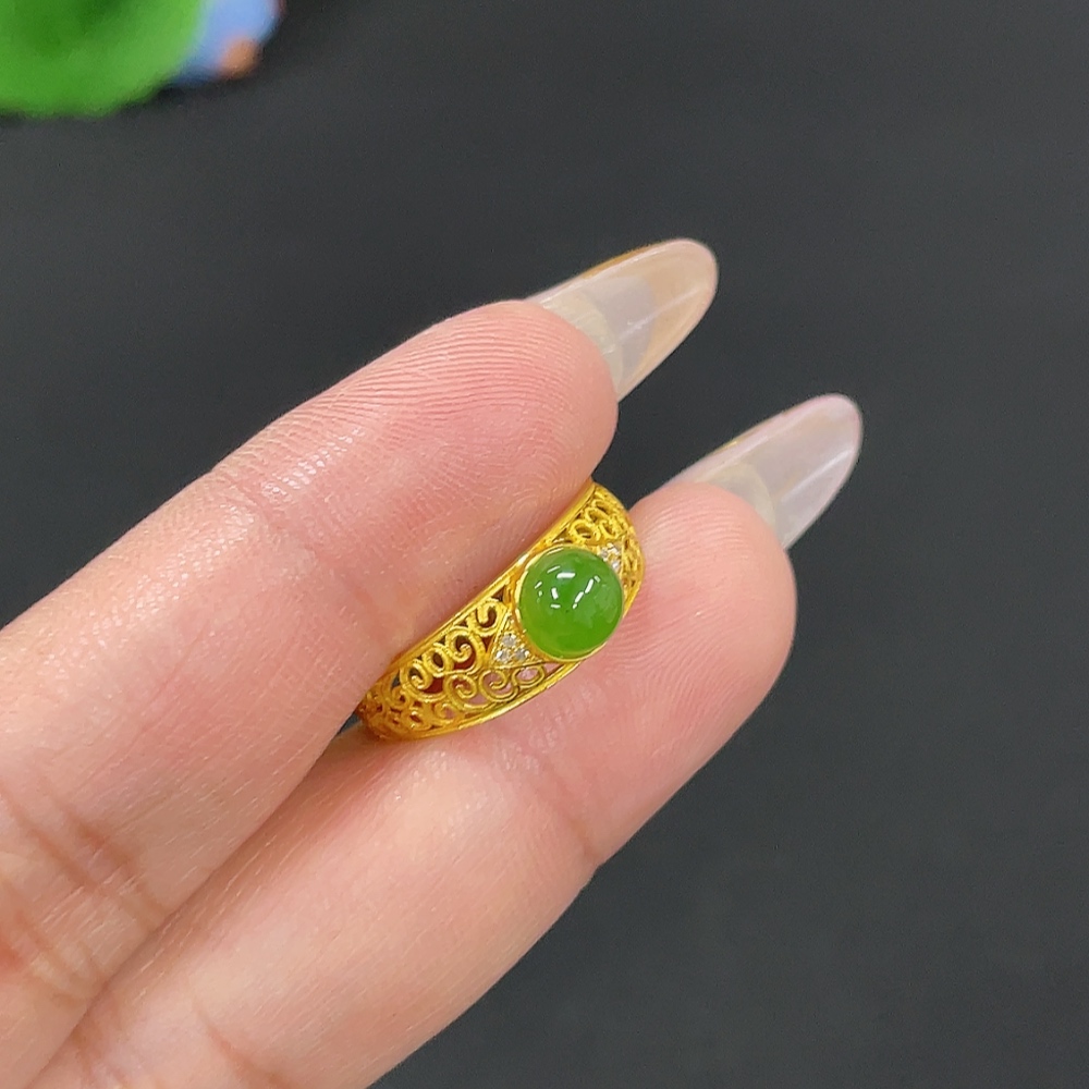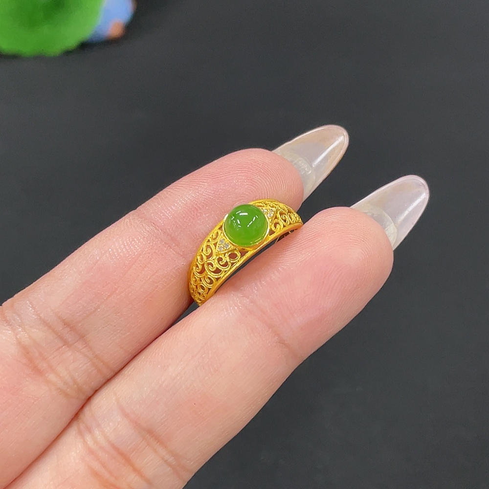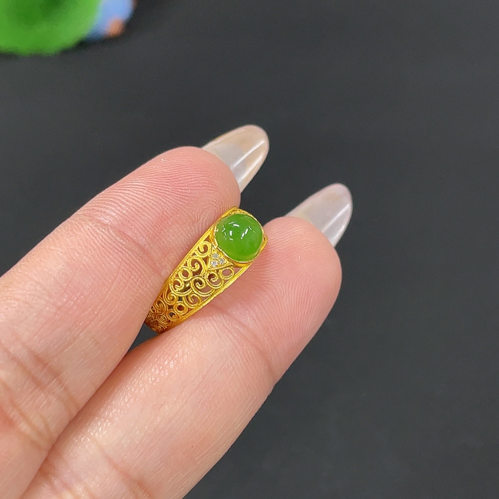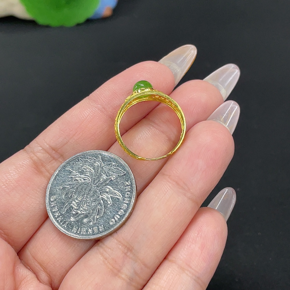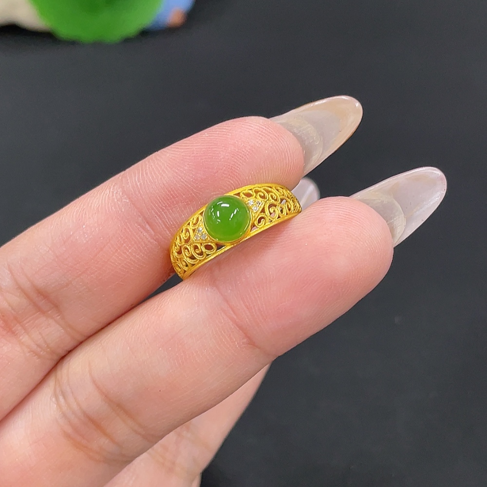 Hetian Jade Inlaid Ring Size 14.5 Total Weight Approx. 1.4g 18k Non-Diamond