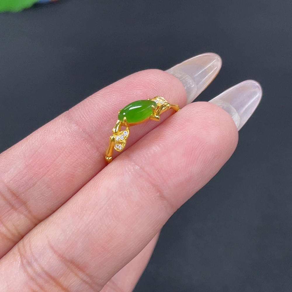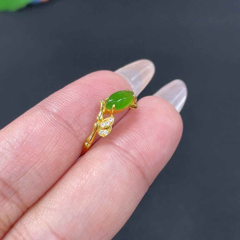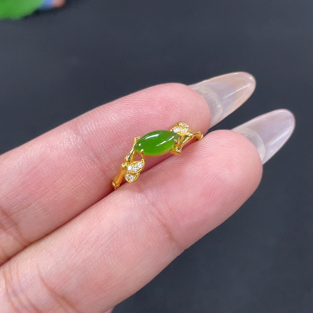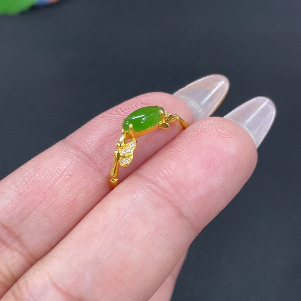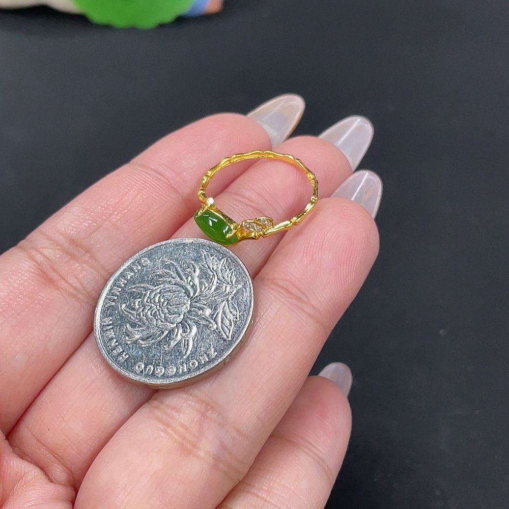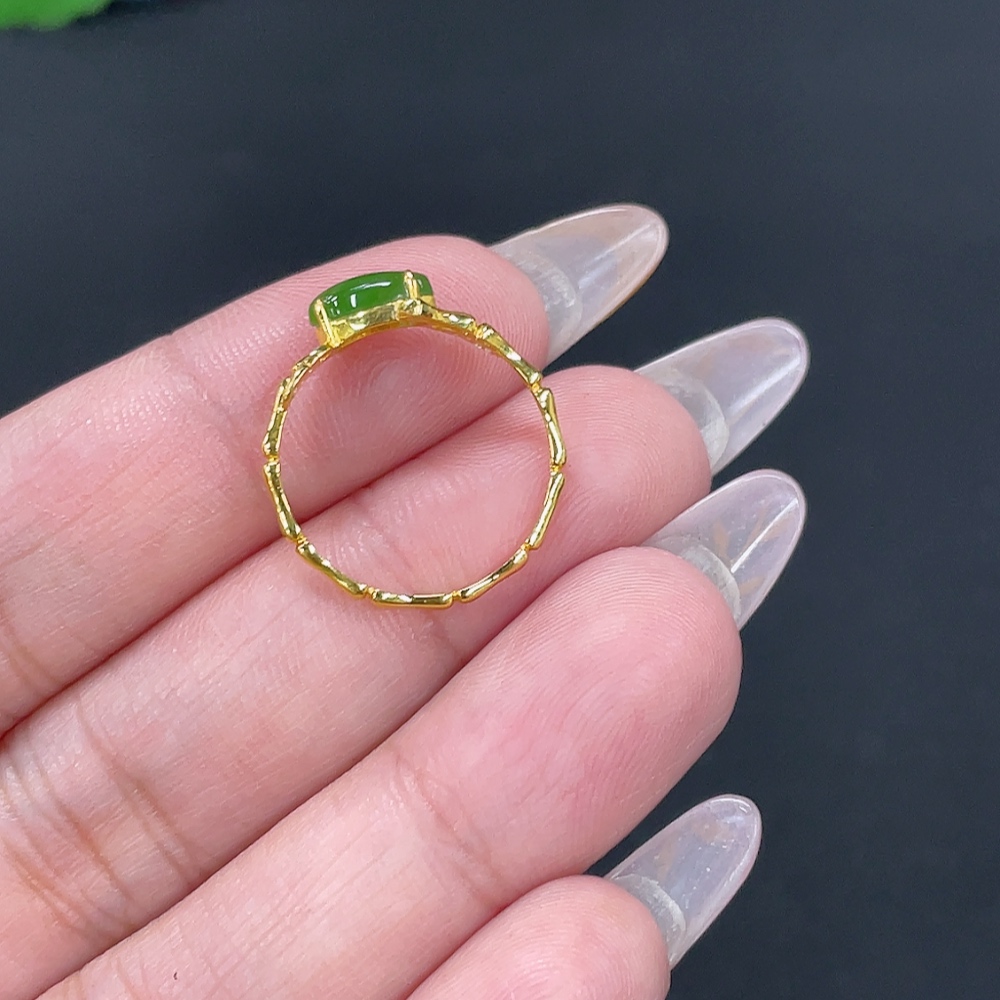 Hetian Jade Inlaid Ring Size 14 Total Weight Approx. 1.1g 18k Non-Diamond
