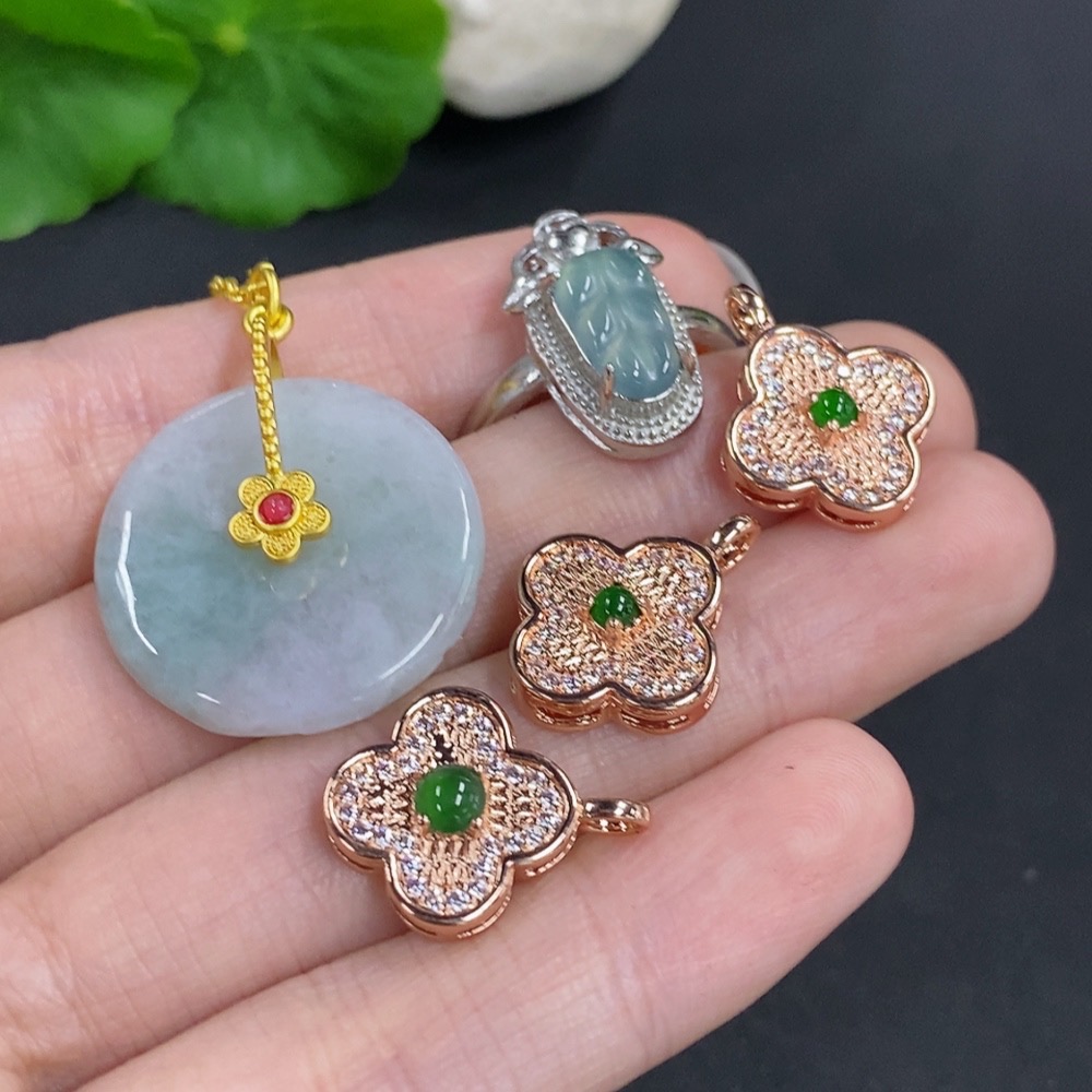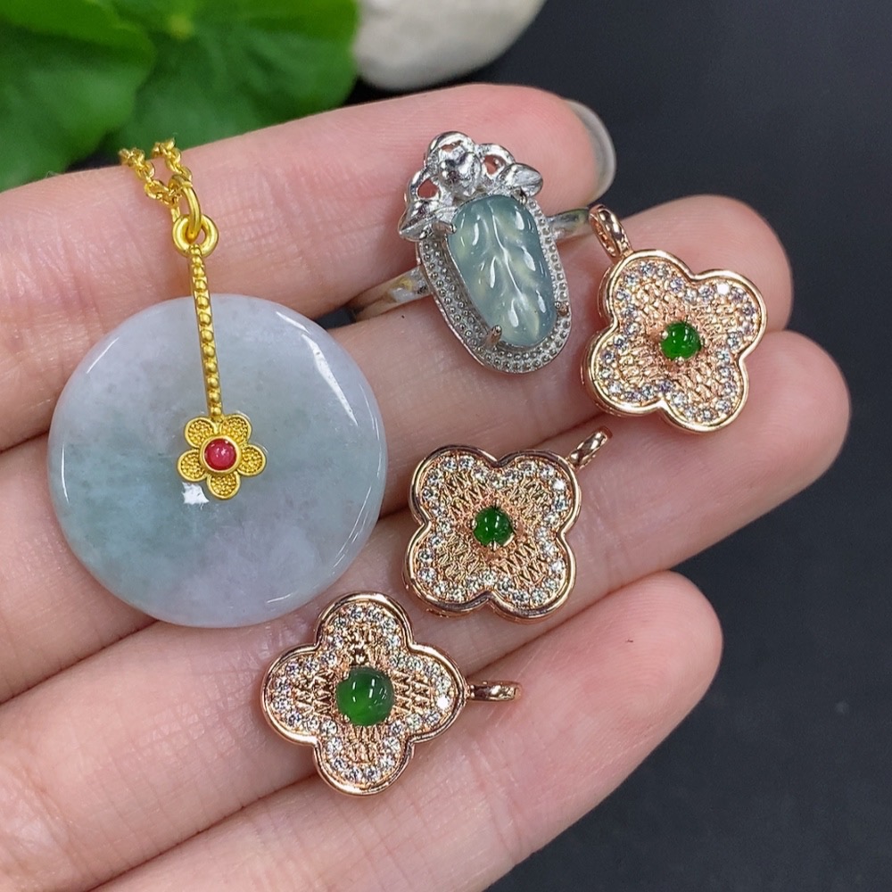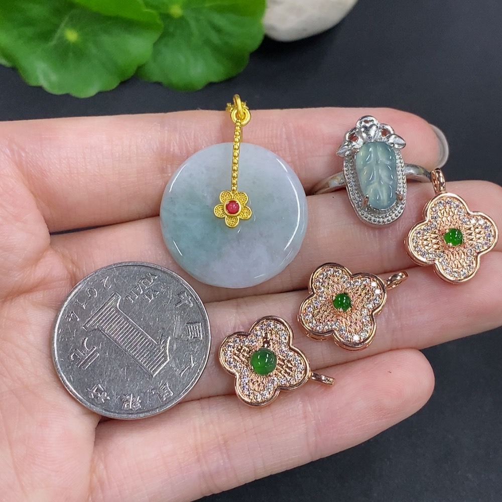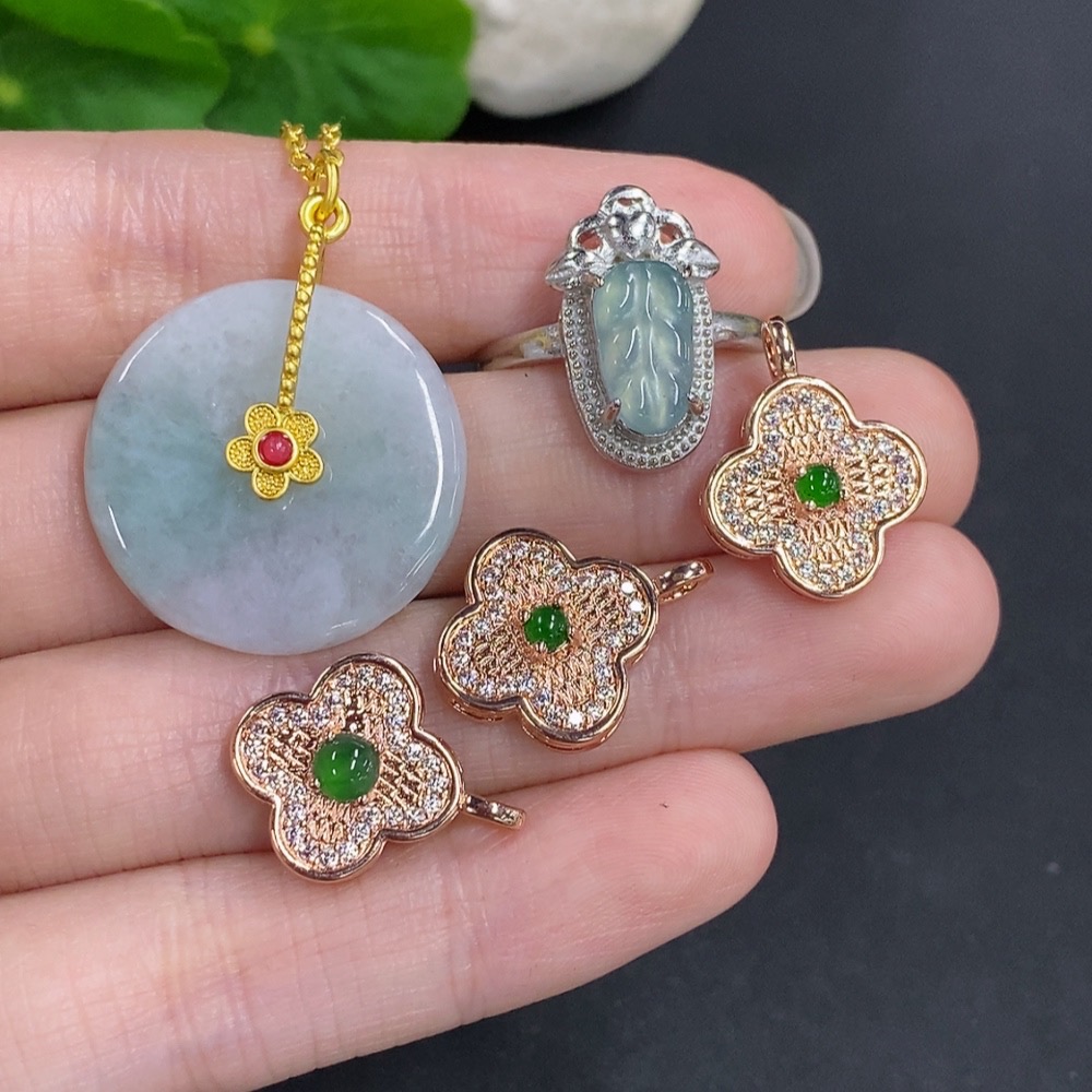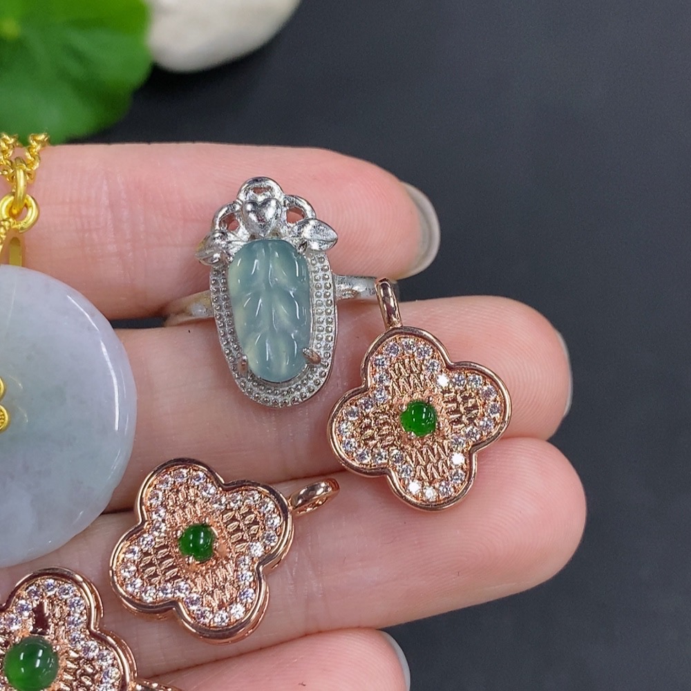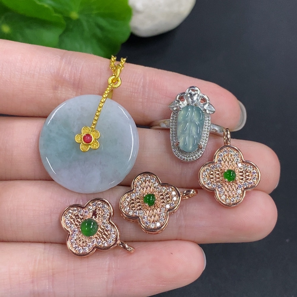Jadeite Pendant + Mounted Pendant/Ring Sell as a Lot Non-Gold Mounted Adjustable Size