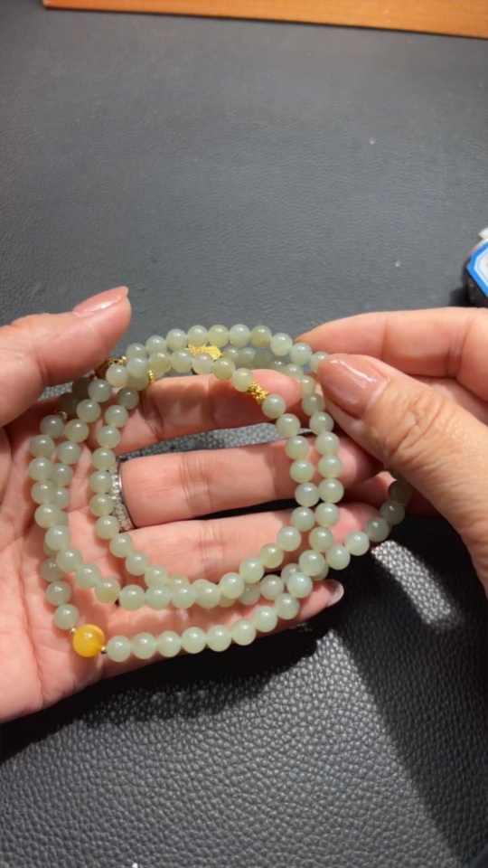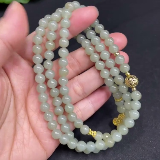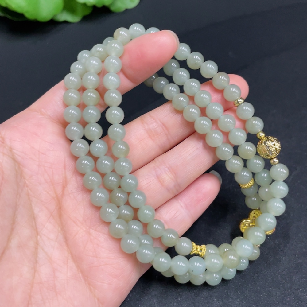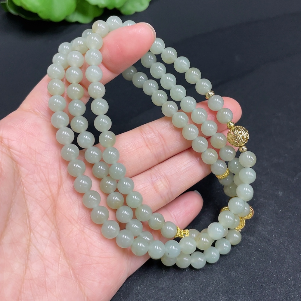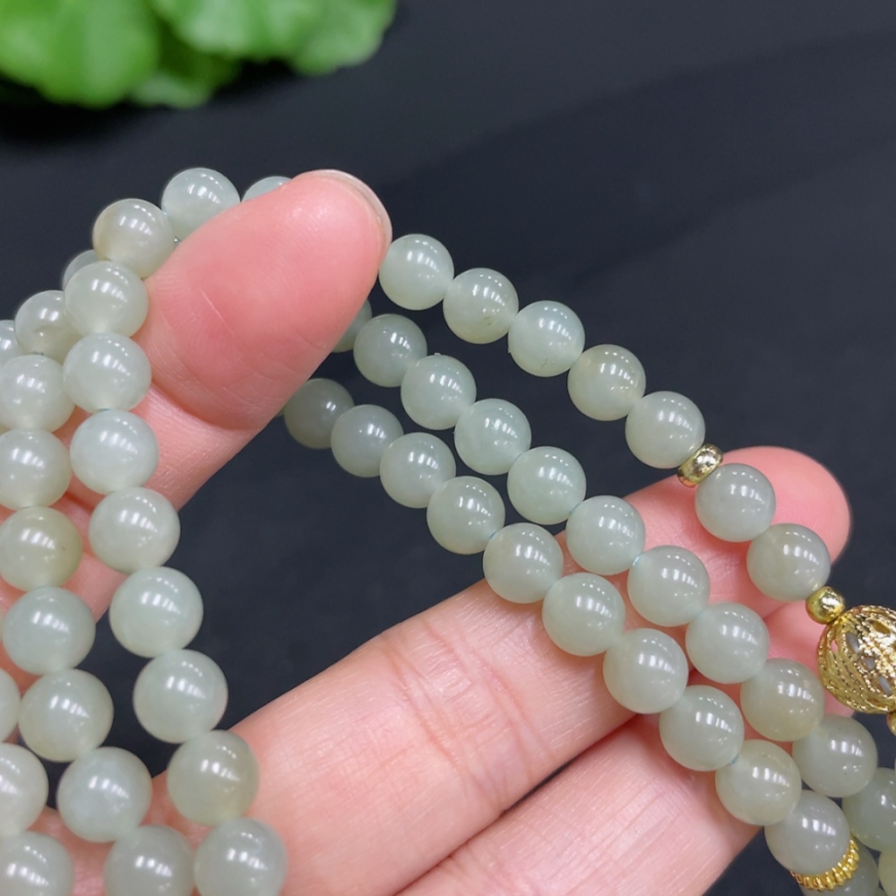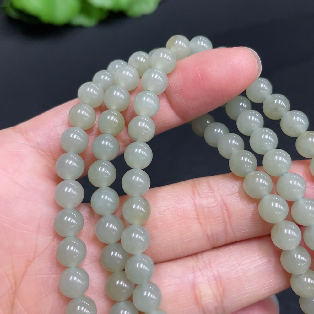 Hetian Jade Bead Necklace, Approx. 6mm, Non-Gold, Total Weight Approx. 40.6g, Non-Hetian Jade Beads