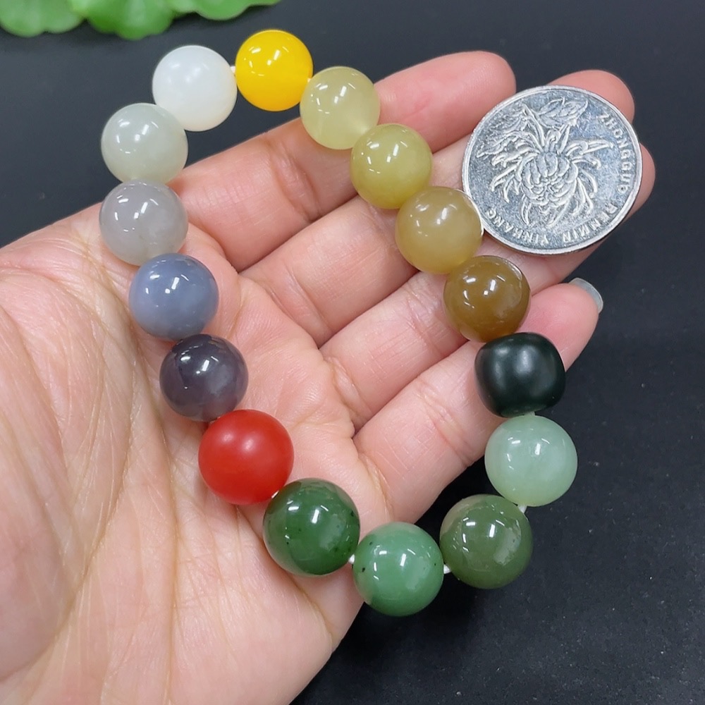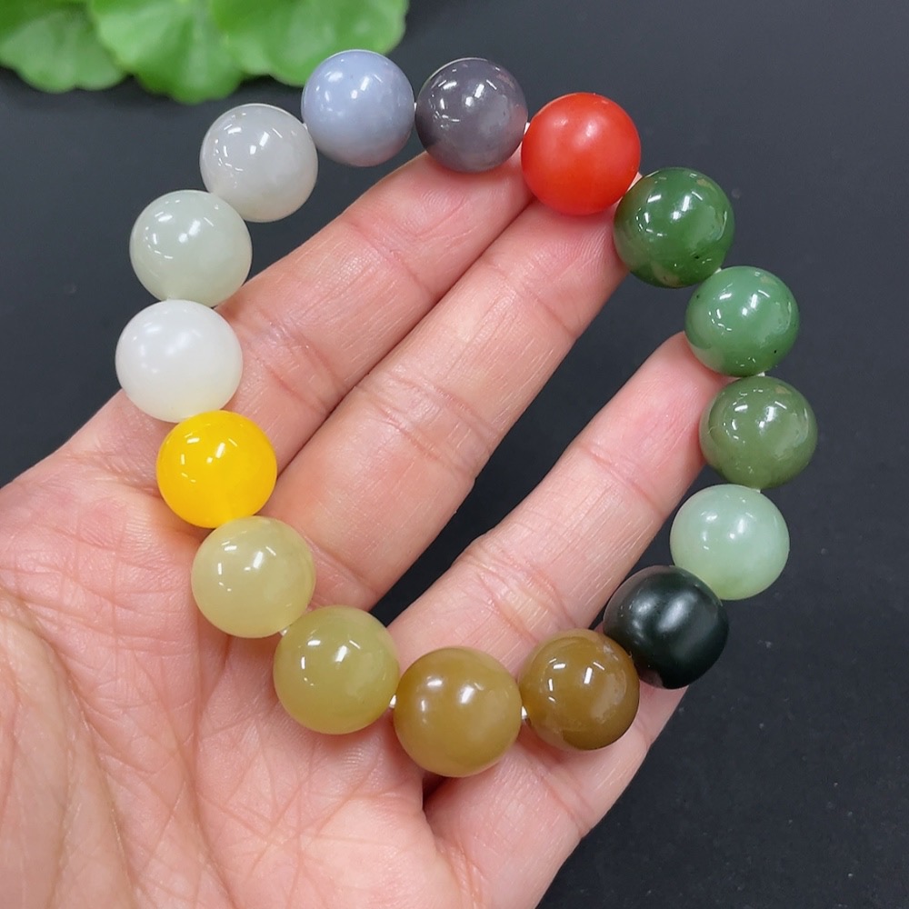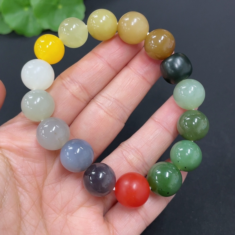 Hetian Jade Bracelet, Approx. 11.8mm Beads, Non-Hetian Jade Matching Beads, Total Weight Approx. 41.8g