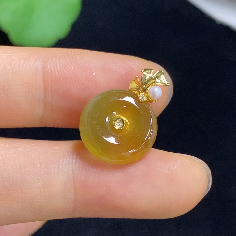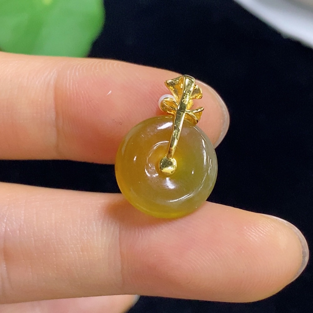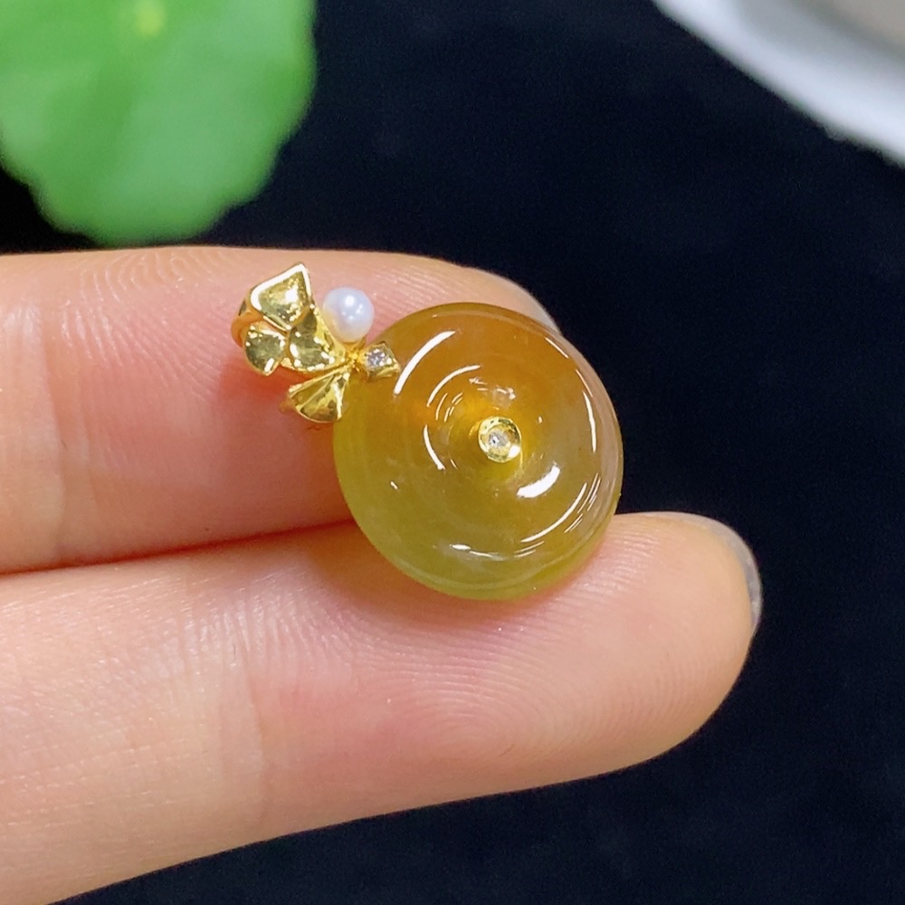 Jadeite Peace Knot Pendant with 18k Gold and Diamond Accents, Total Weight Approx. 2.11g, Non-Grade A Beads Included