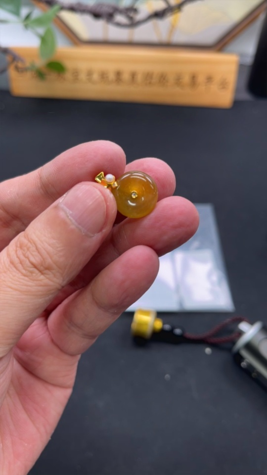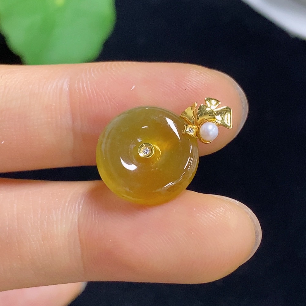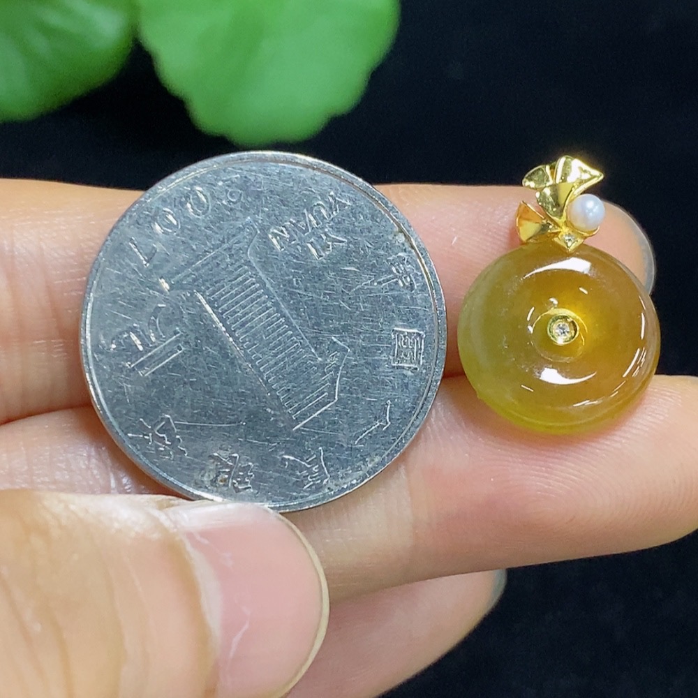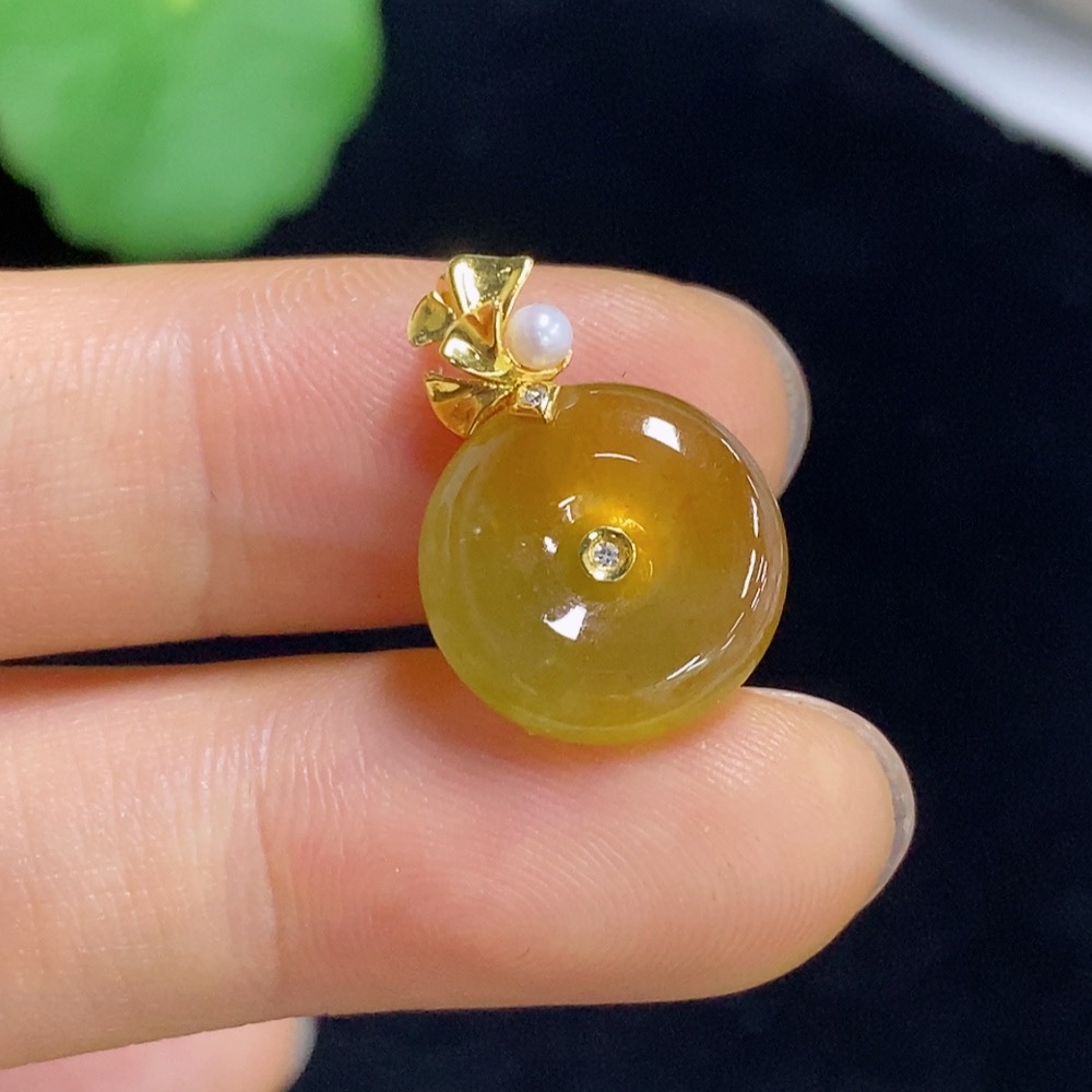 Jadeite Peace Knot Pendant with 18k Gold and Diamond Accents, Total Weight Approx. 2.11g, Non-Grade A Beads Included
