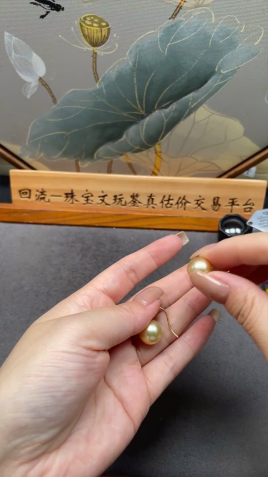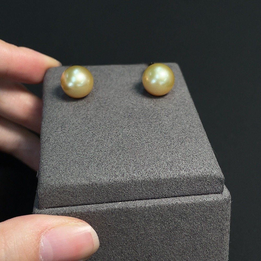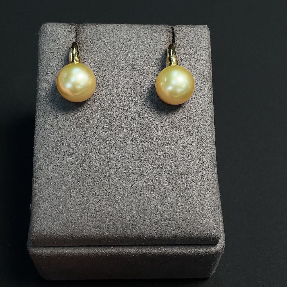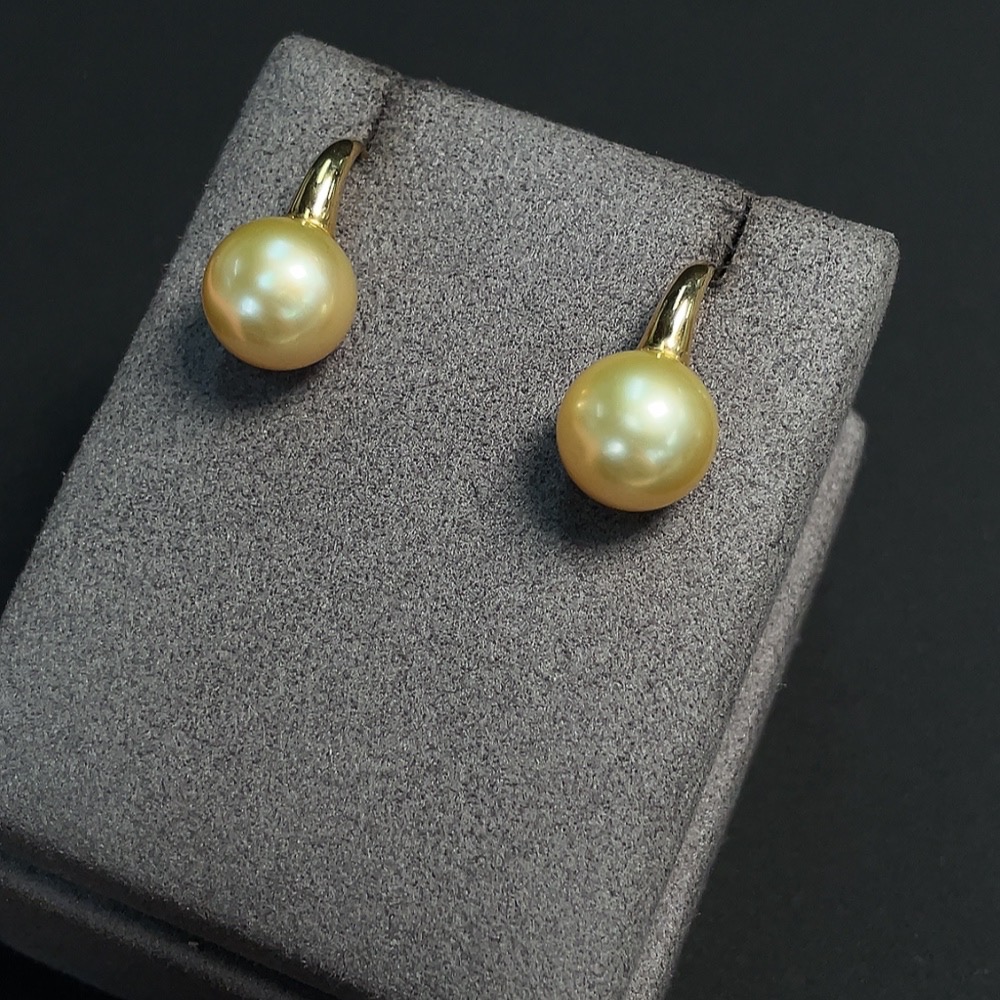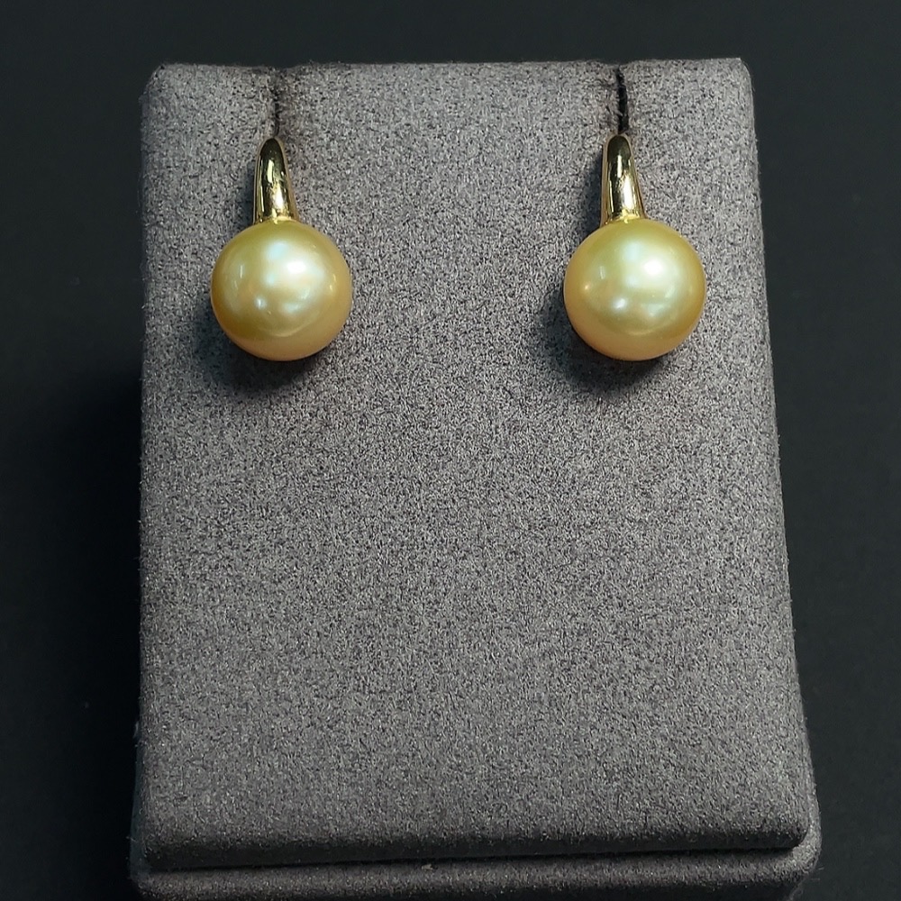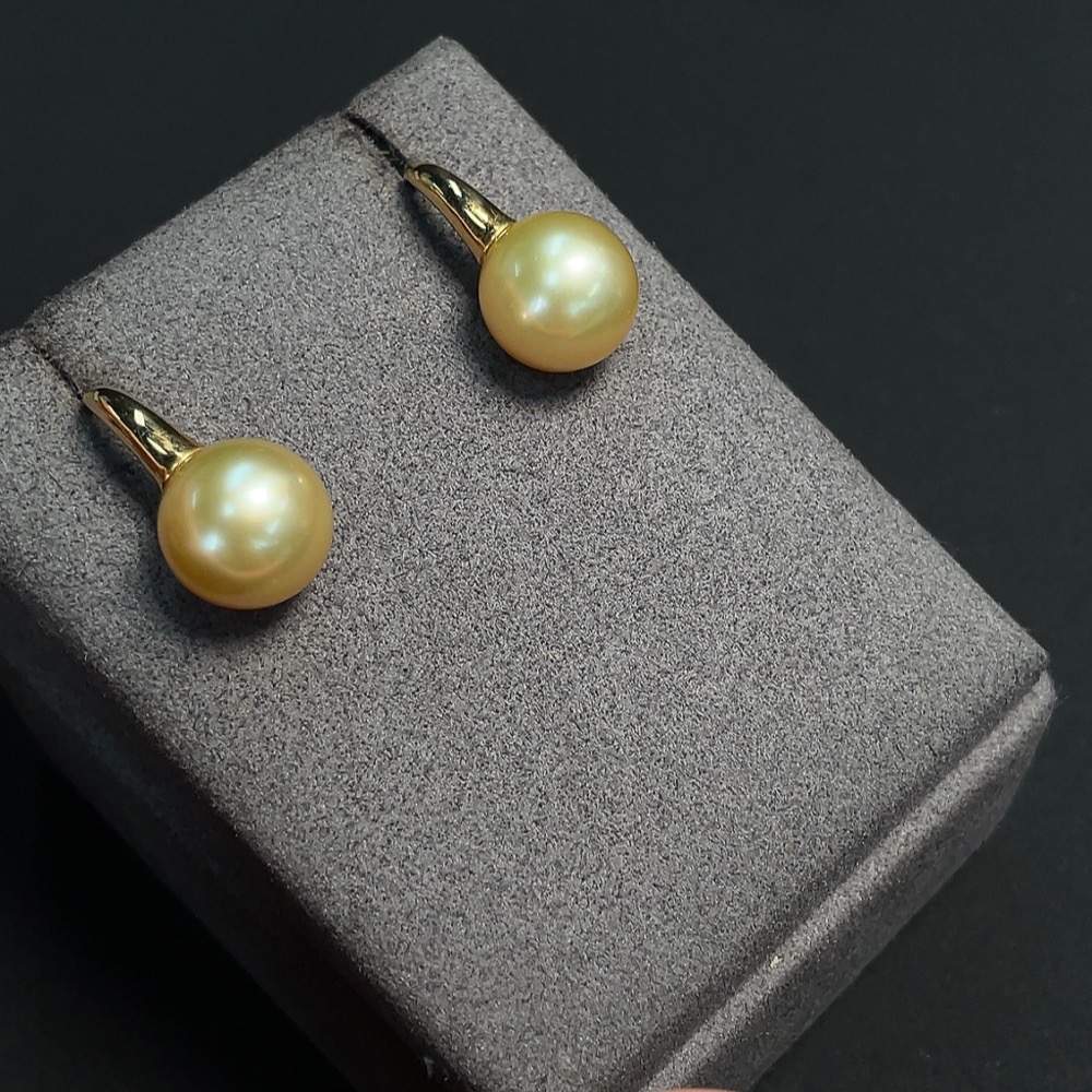 Seawater pearl earrings set in 18k gold, approximately 12mm in size, total weight about 6.76g, color origin undetermined