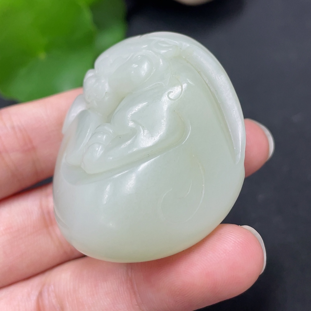 Hetian Jade Pendant Auspicious Beast Total Weight Approx. 56.4g Undetermined Skin Color Origin