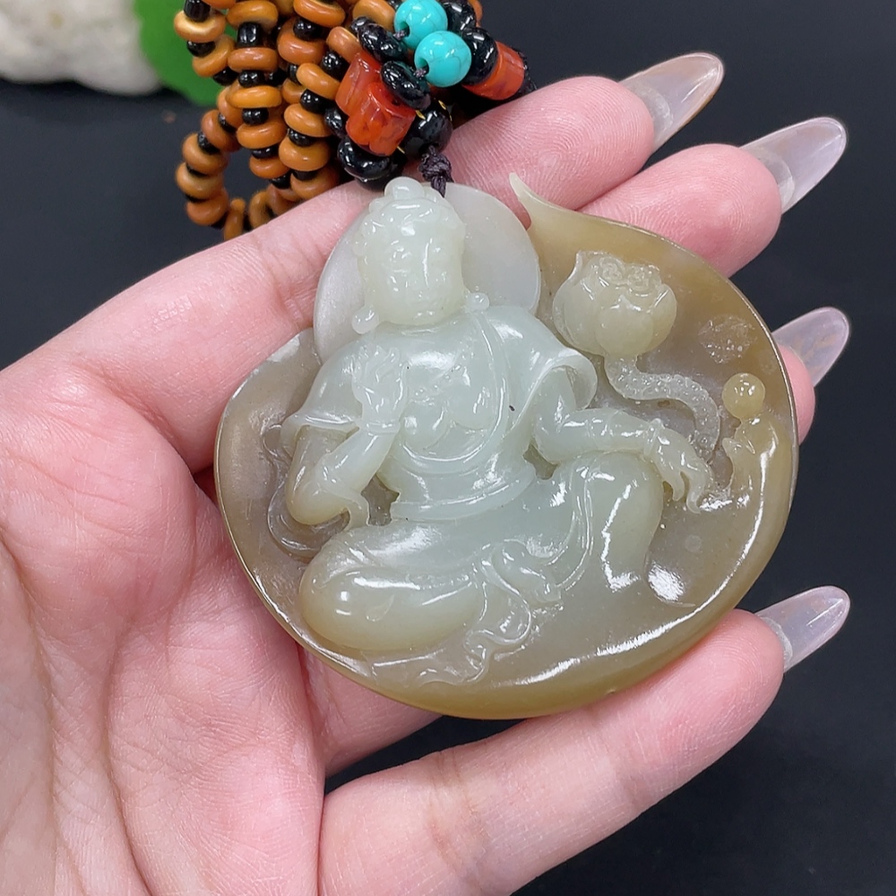 Hetian Jade Pendant Guanyin Total Weight Approx. [with chain] 102.1g