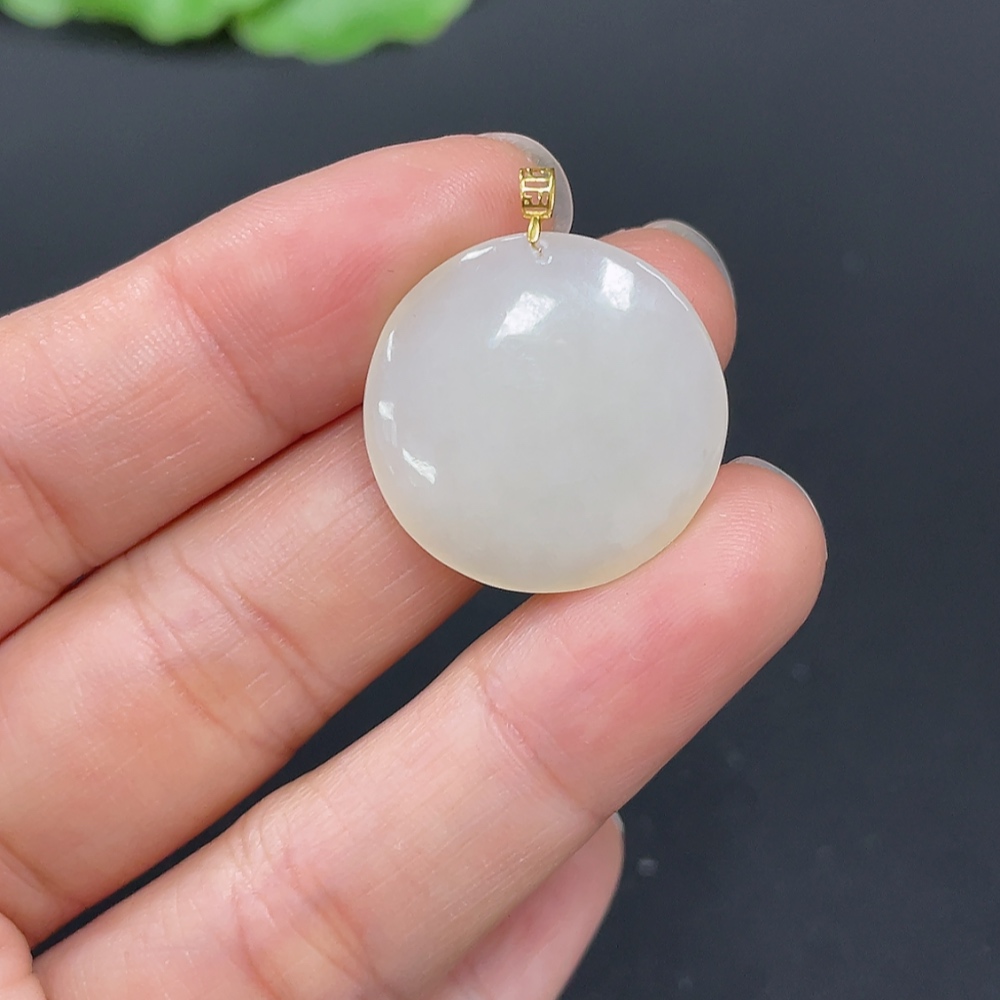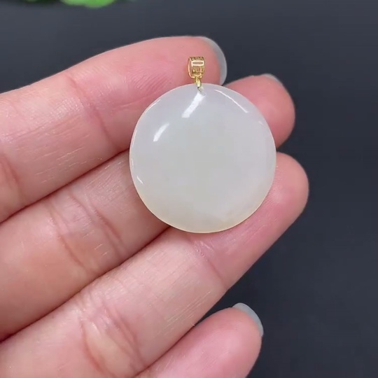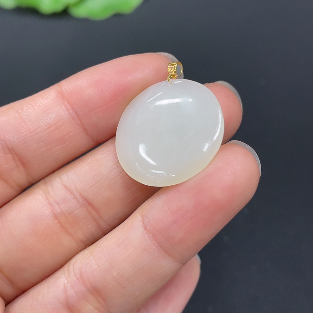 Hetian Jade Pendant, Plain Pendant with 18K Gold Clasp, Total Weight Approx. 3.4g