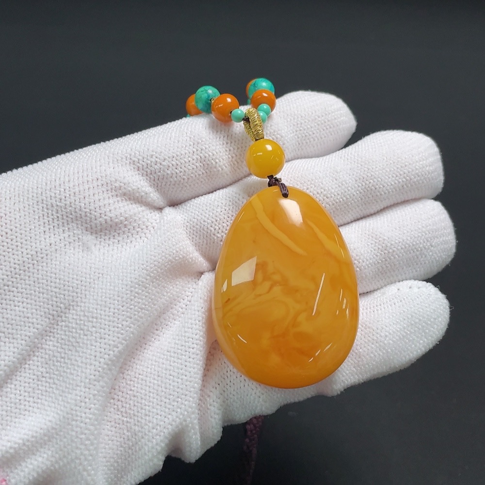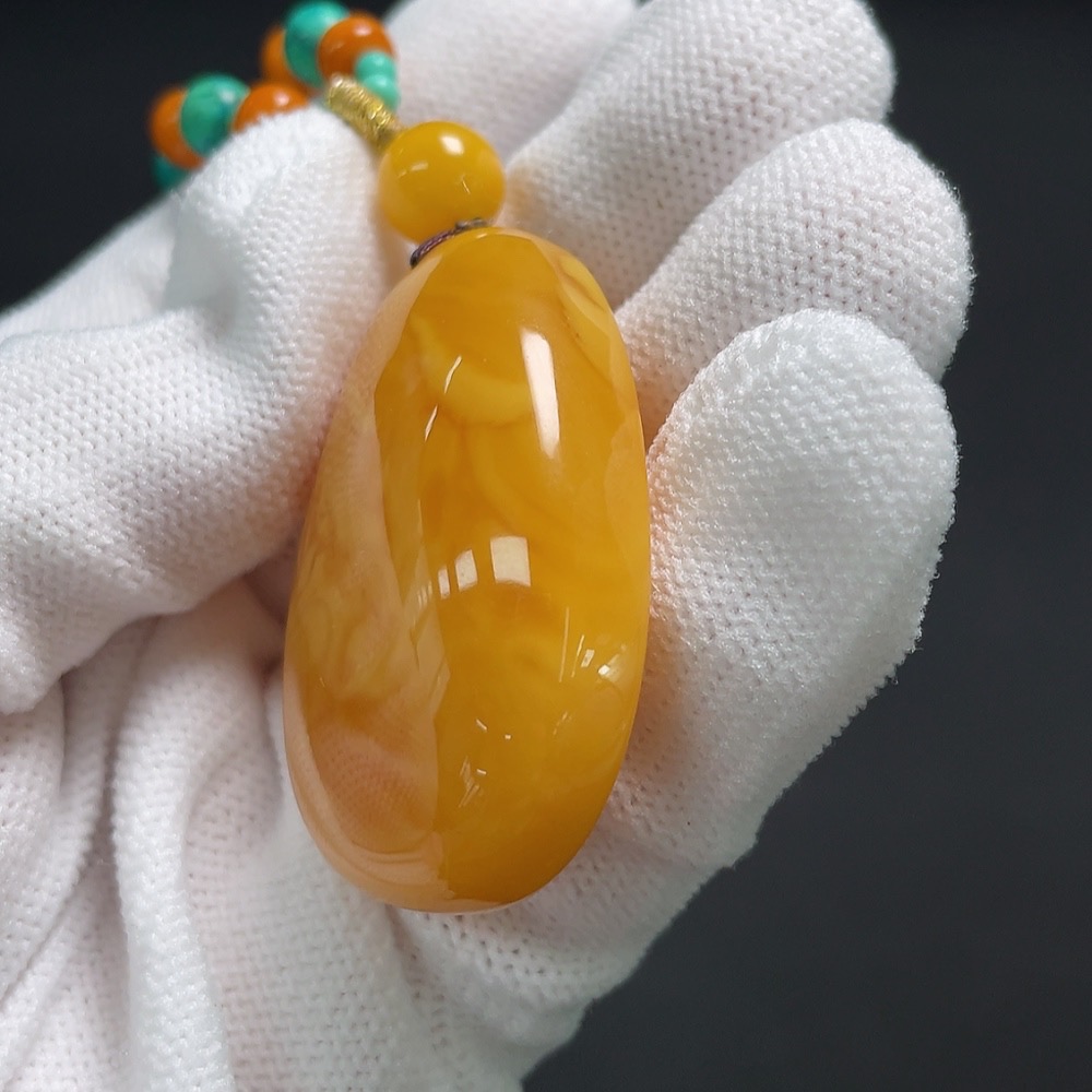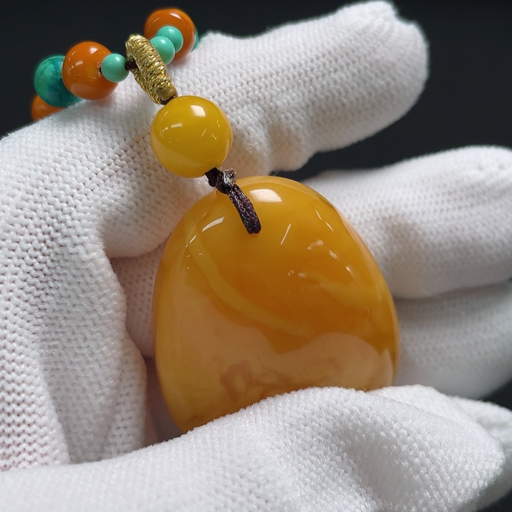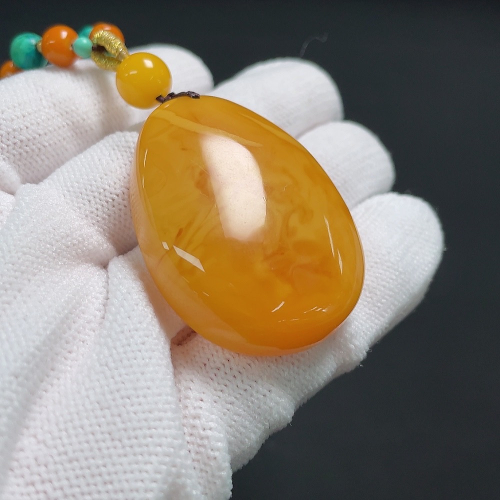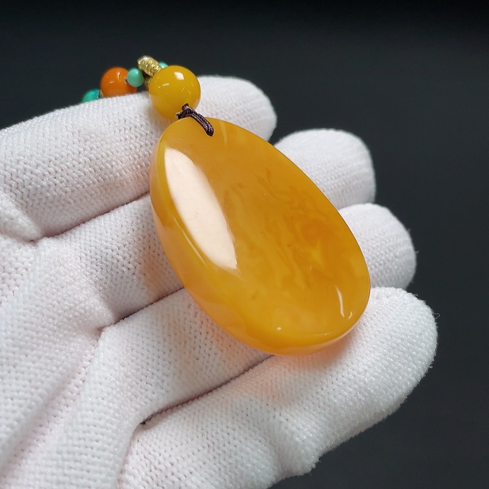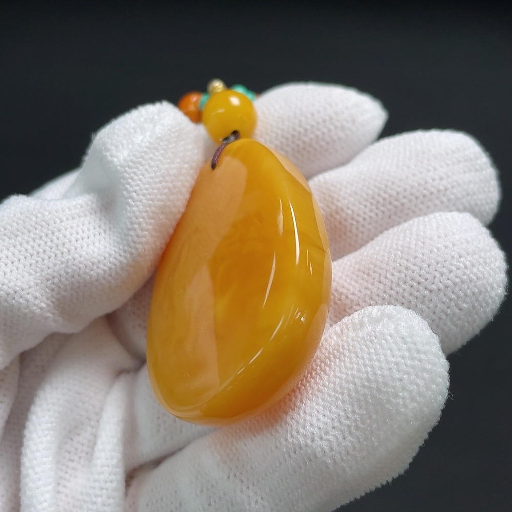 Amber Beeswax Pendant with Non-Natural/Non-Gold Accent Stones 18.2g