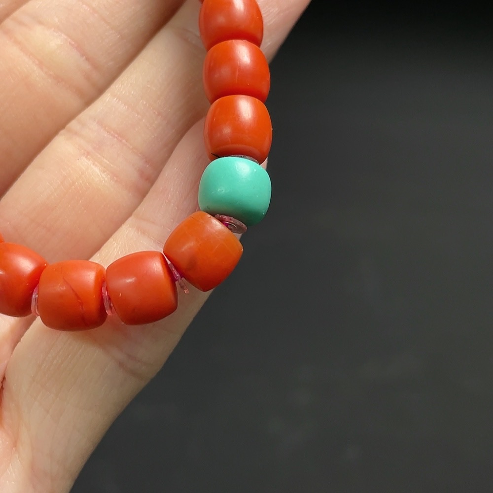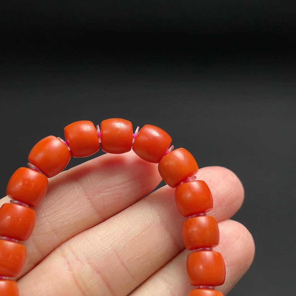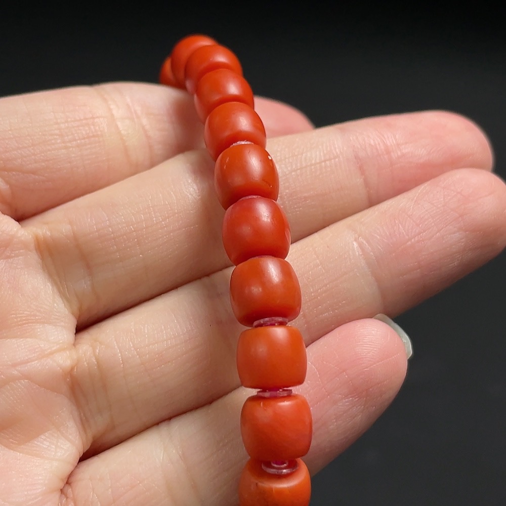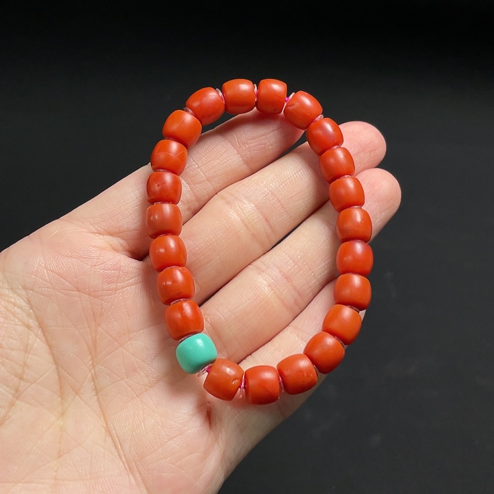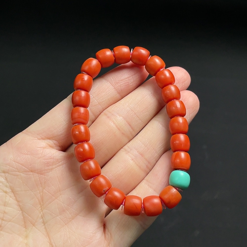 Red Agate Bracelet with Visible Organic Matter, Non-Natural Accent Stones, Total Weight Approx. 15.3g, Size ~7.4mm