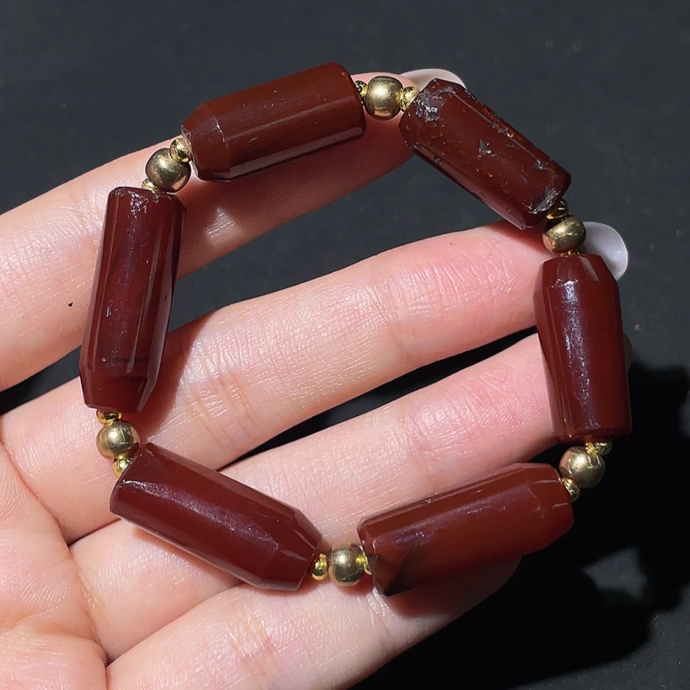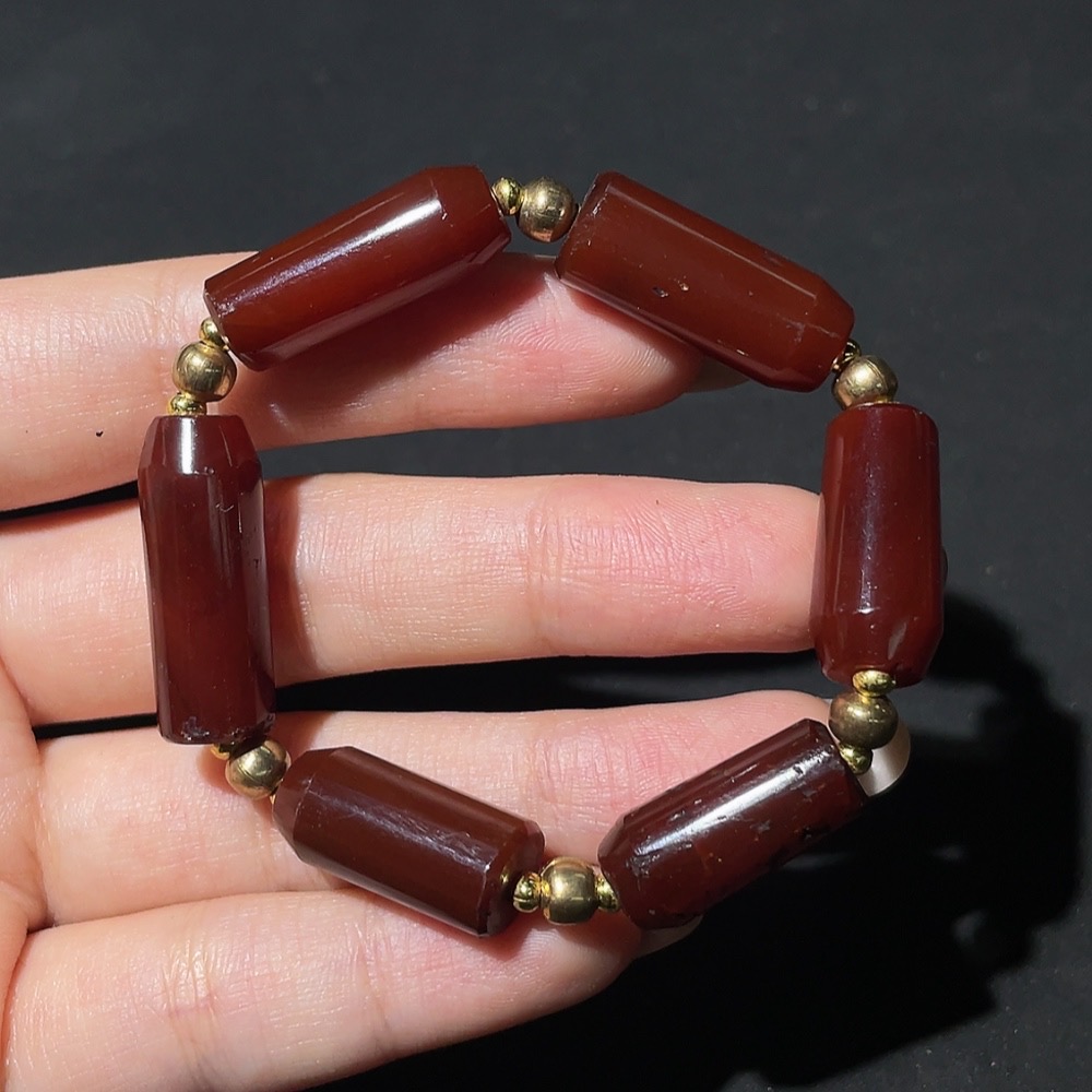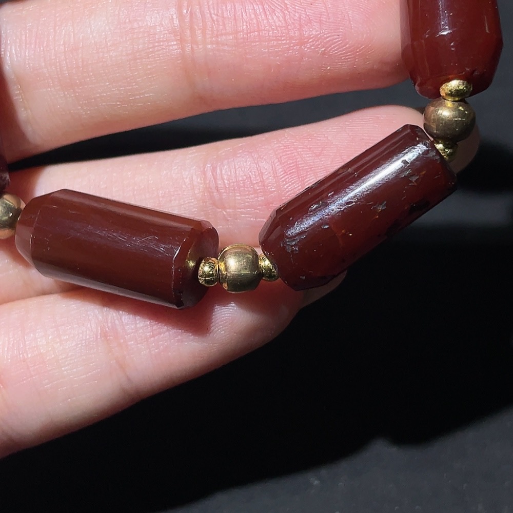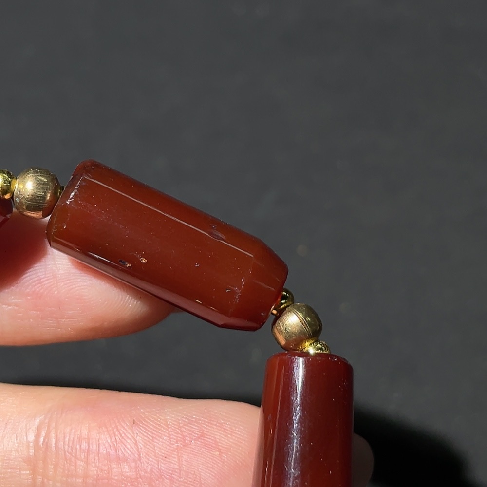 Doubtful circa 18th-19th century West Asian agate tubular bead bracelet, vintage beads