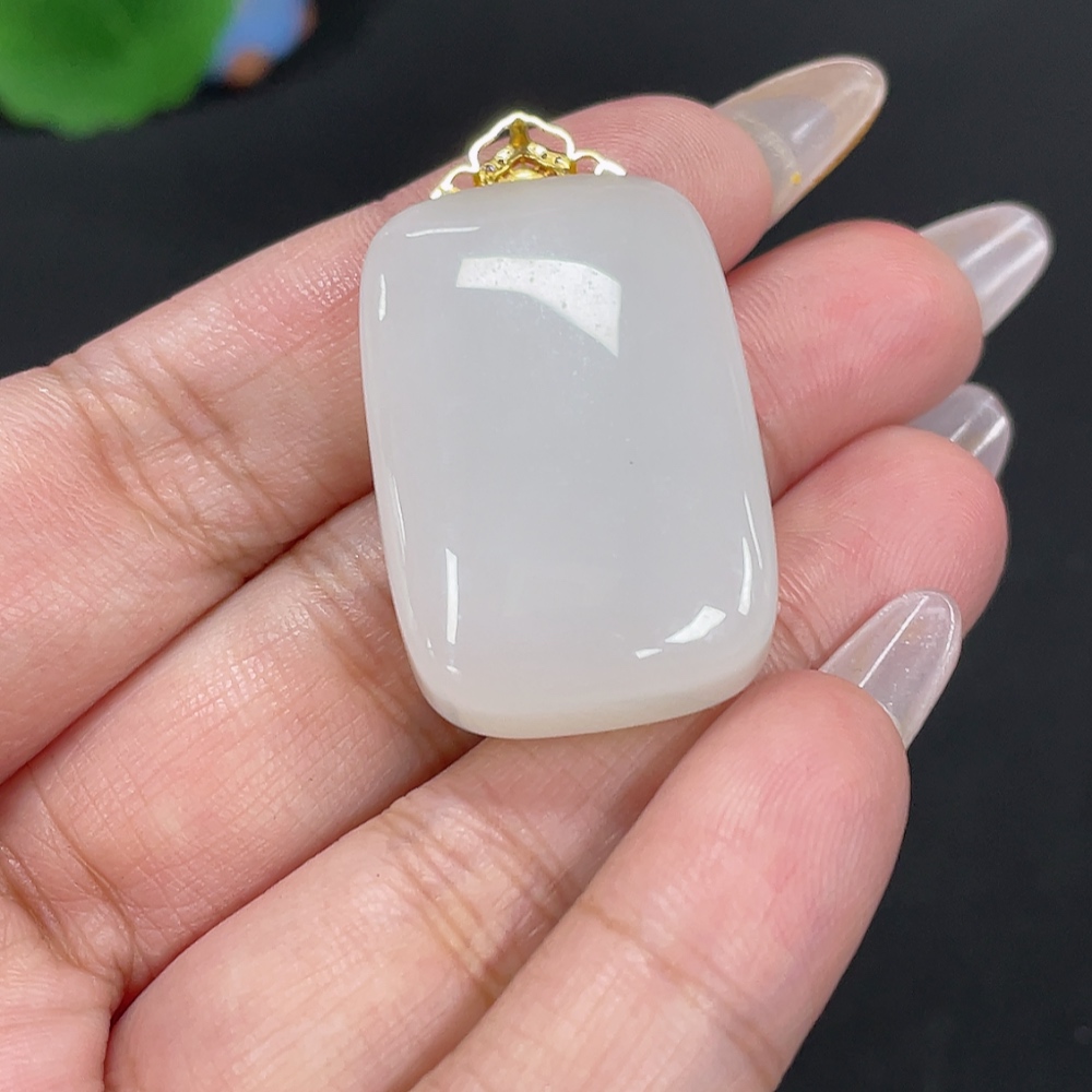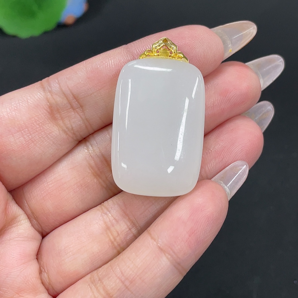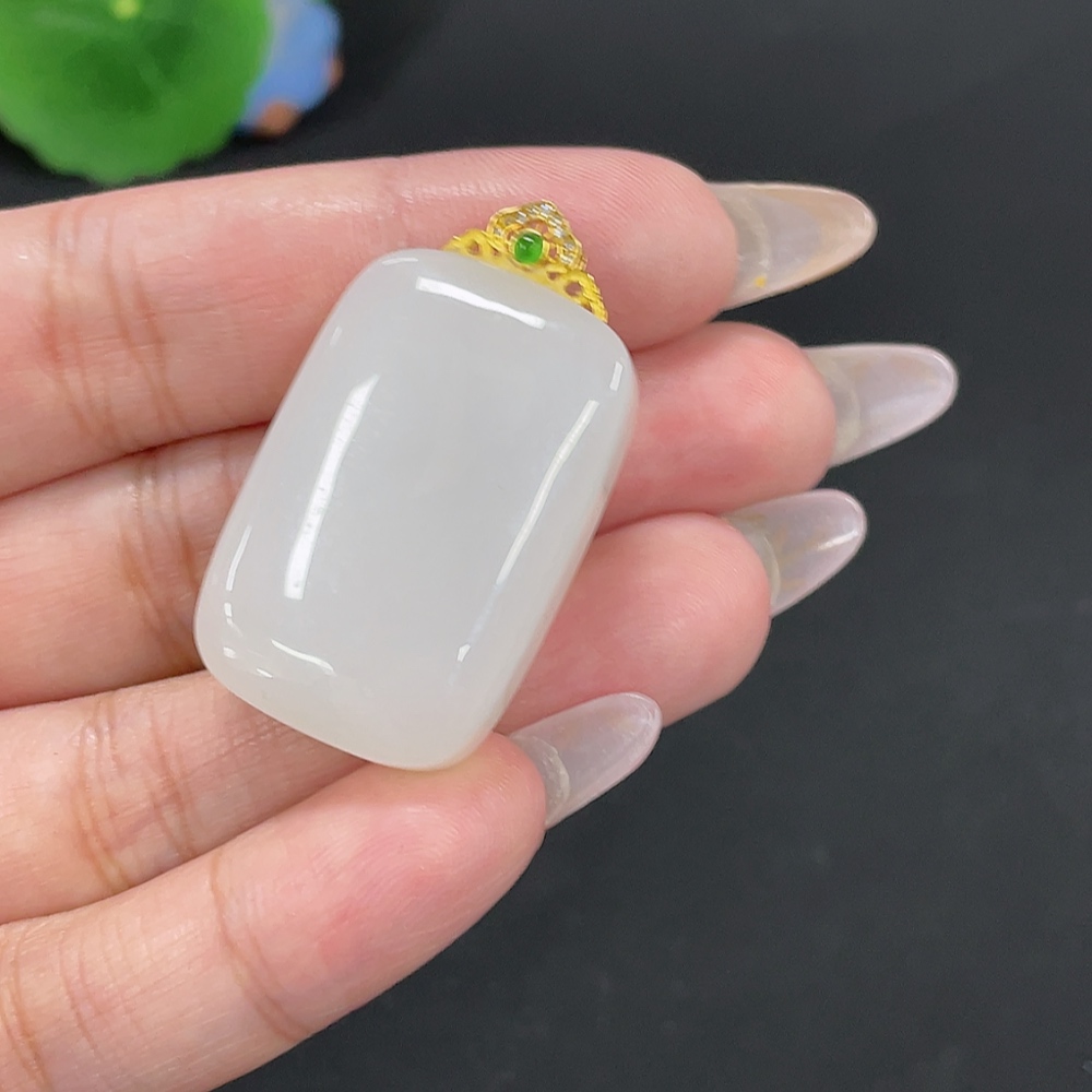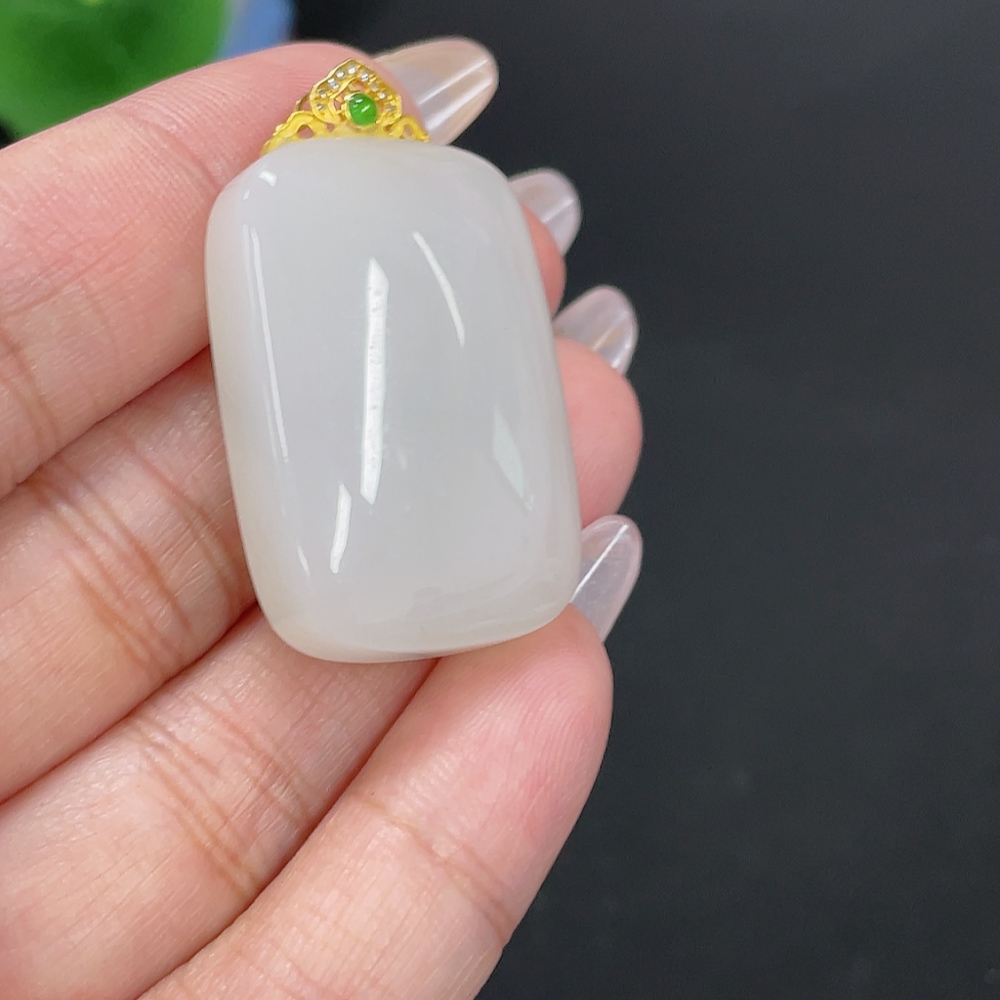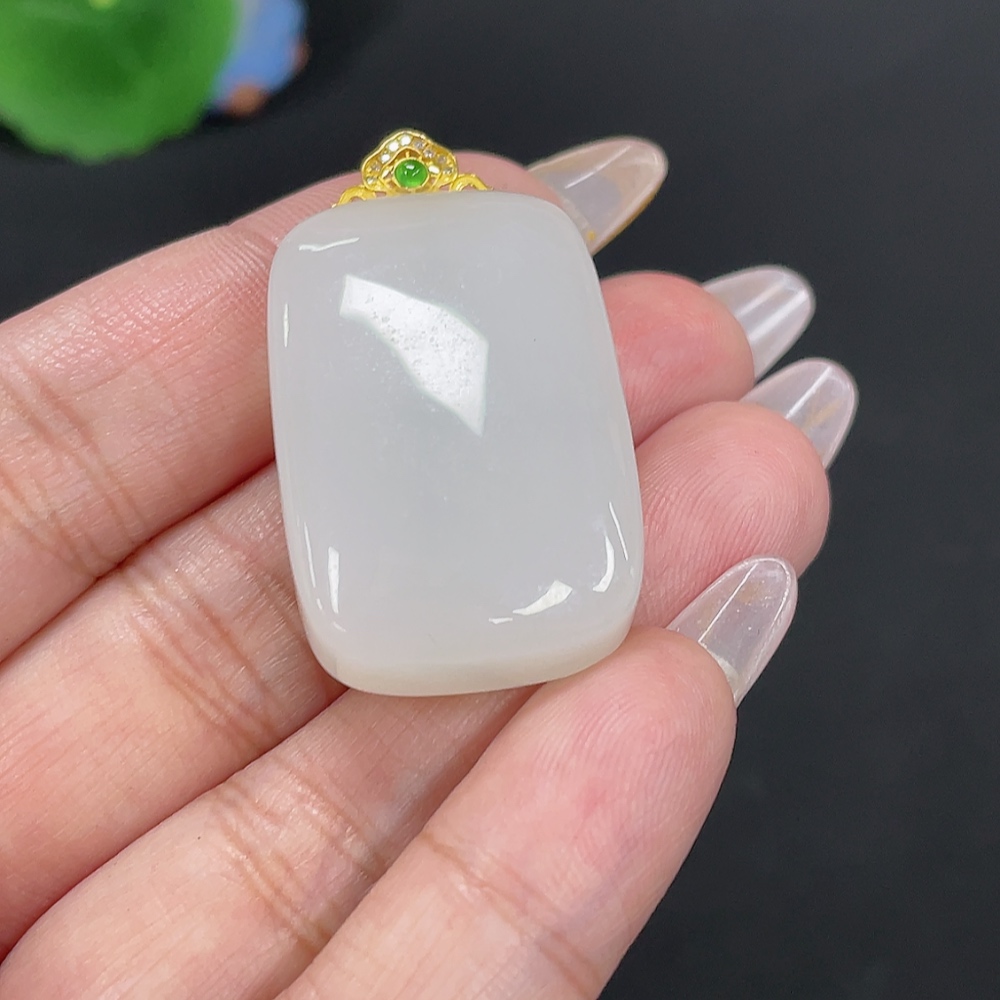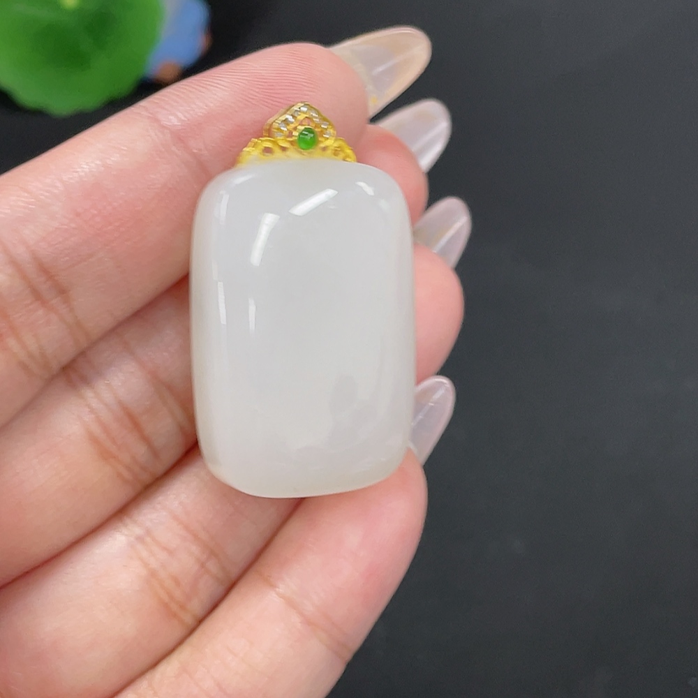 Hetian Jade Inlaid Pendant Plain Pendant Total Weight About 19.6g 18k Inlaid with Diamonds