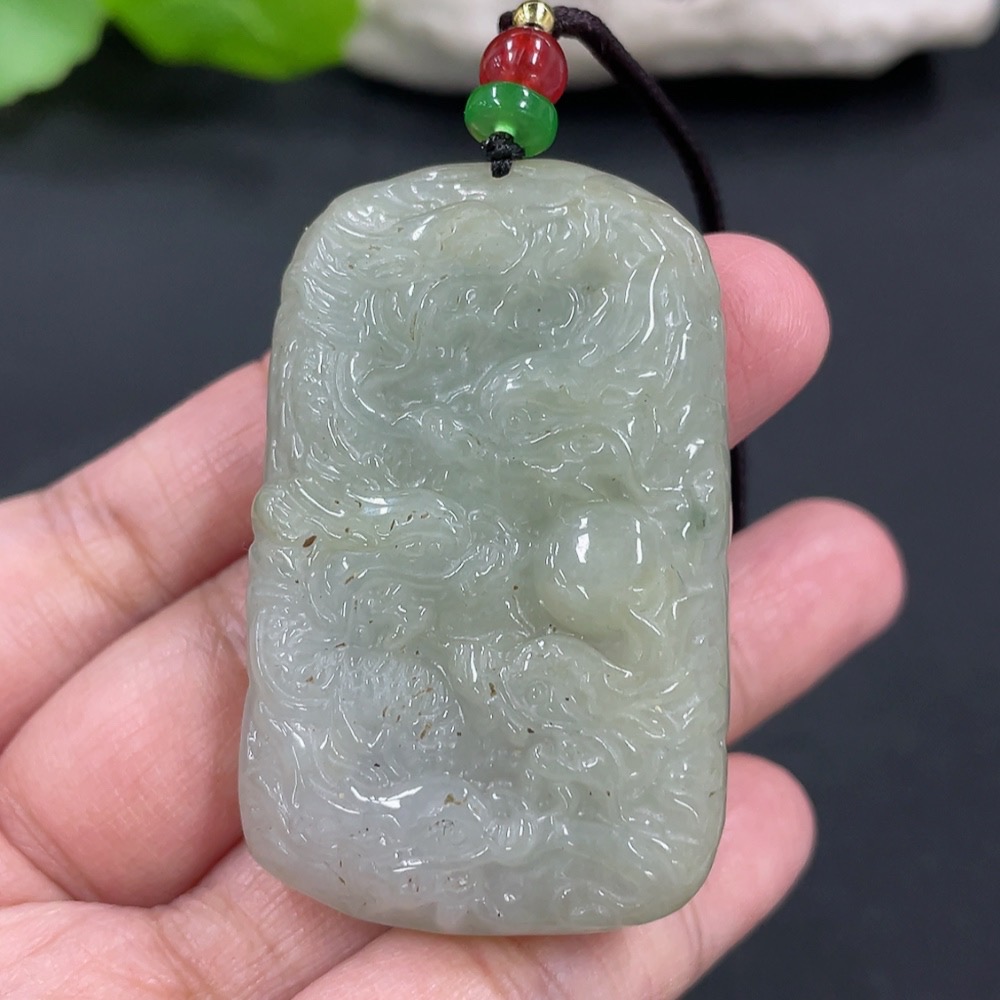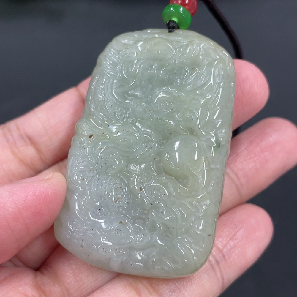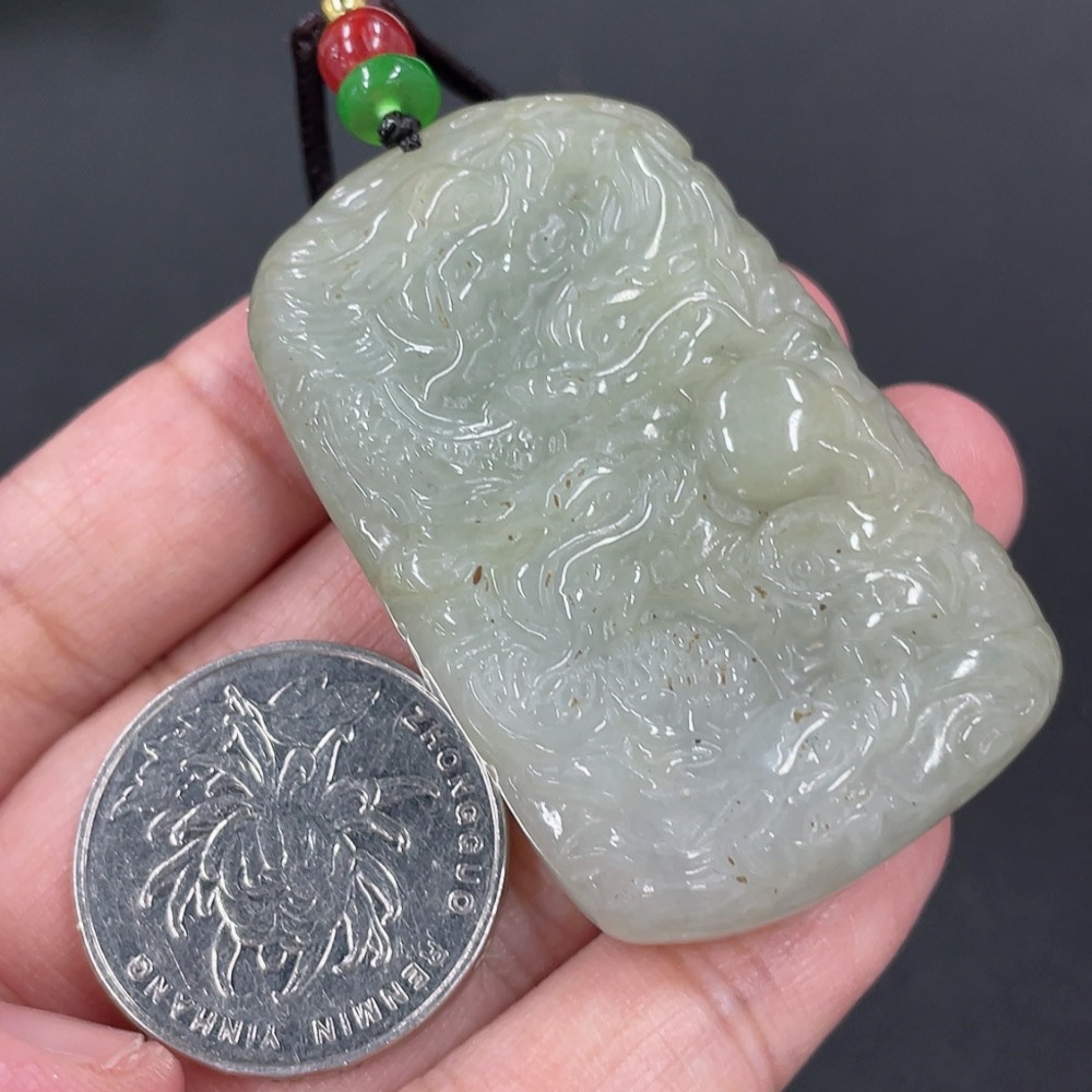 Jadeite Pendant Dragon Plaque Total Weight Approximately 42.15g Including Rope Beads Not Grade A