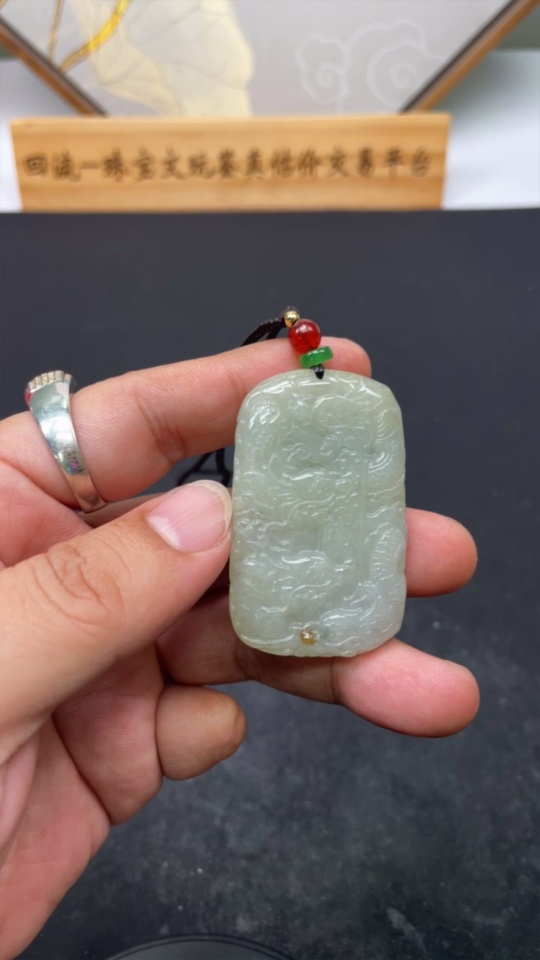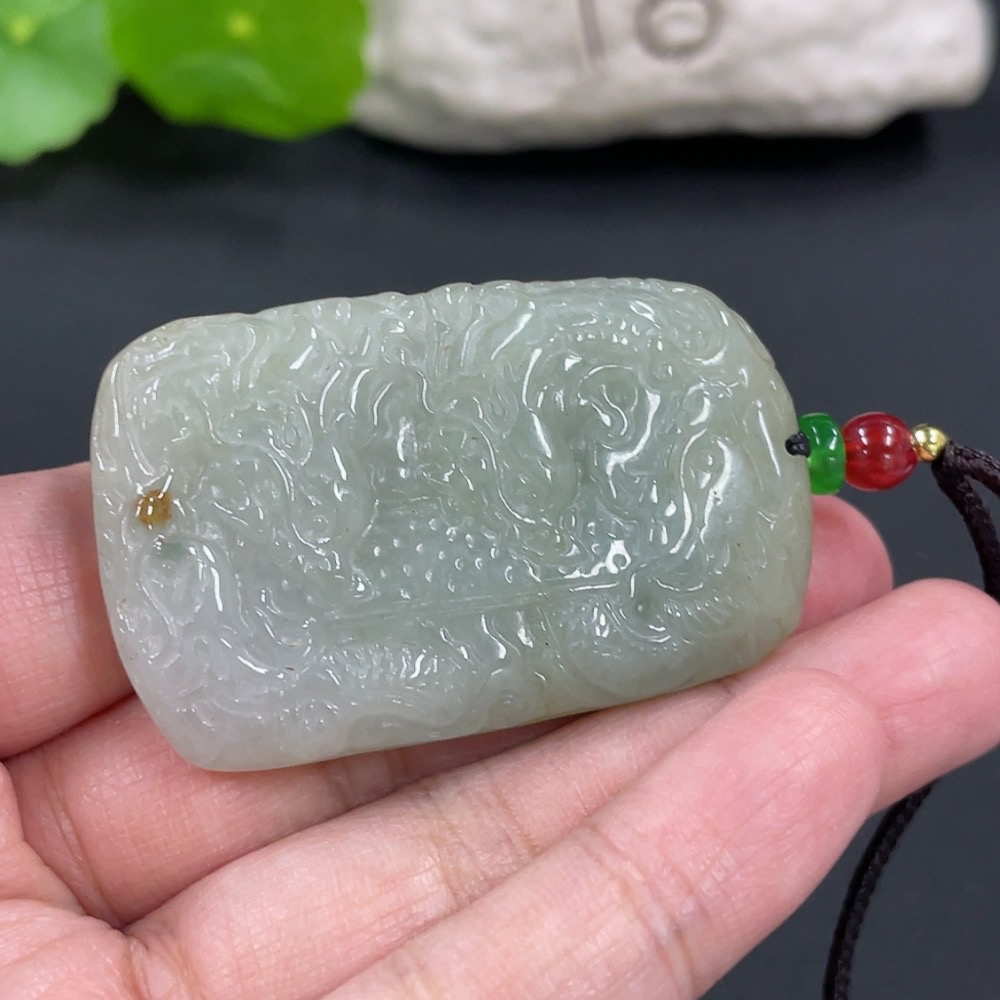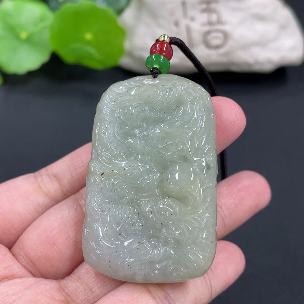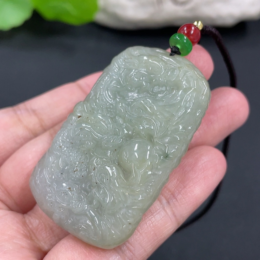 Jadeite Pendant Dragon Plaque Total Weight Approximately 42.15g Including Rope Beads Not Grade A