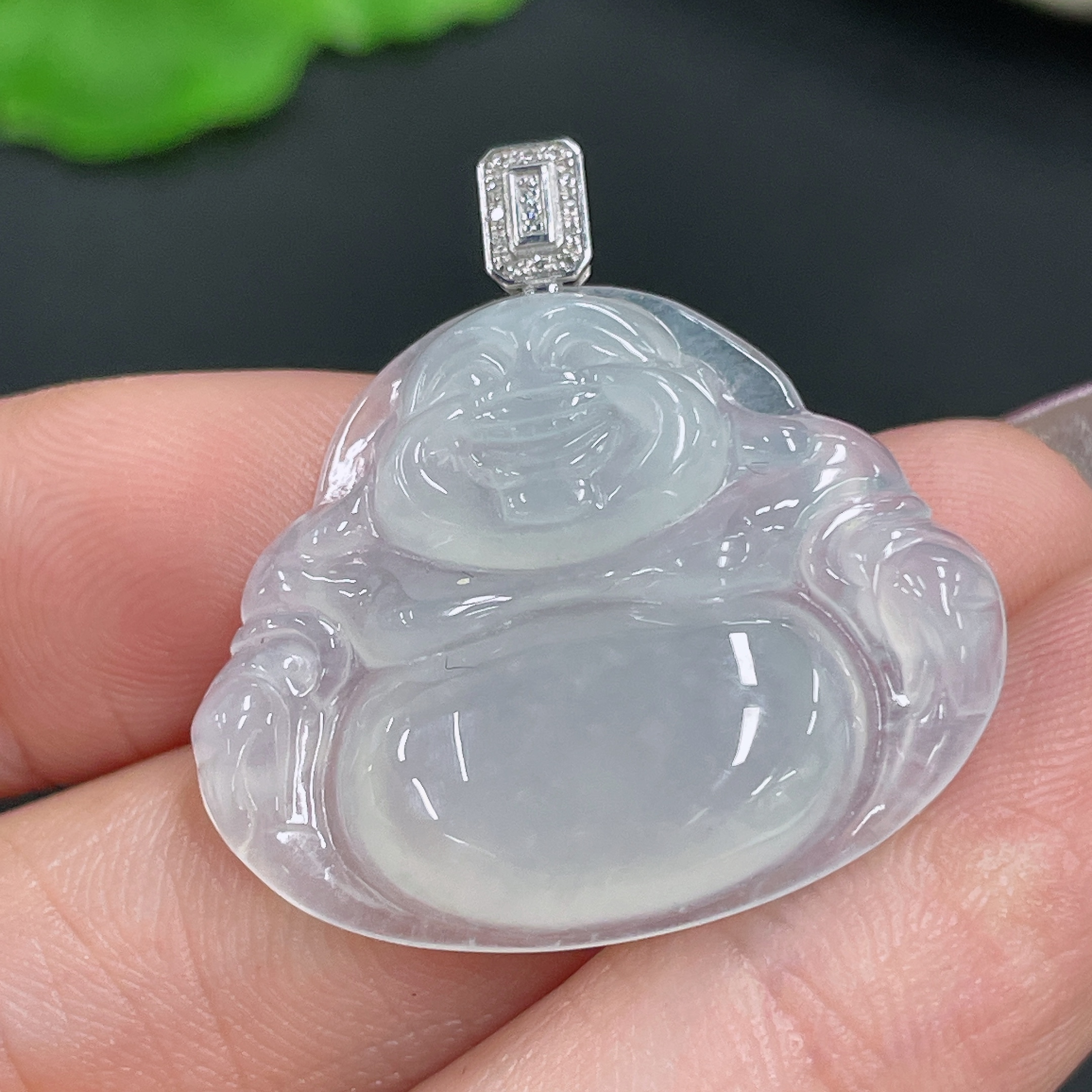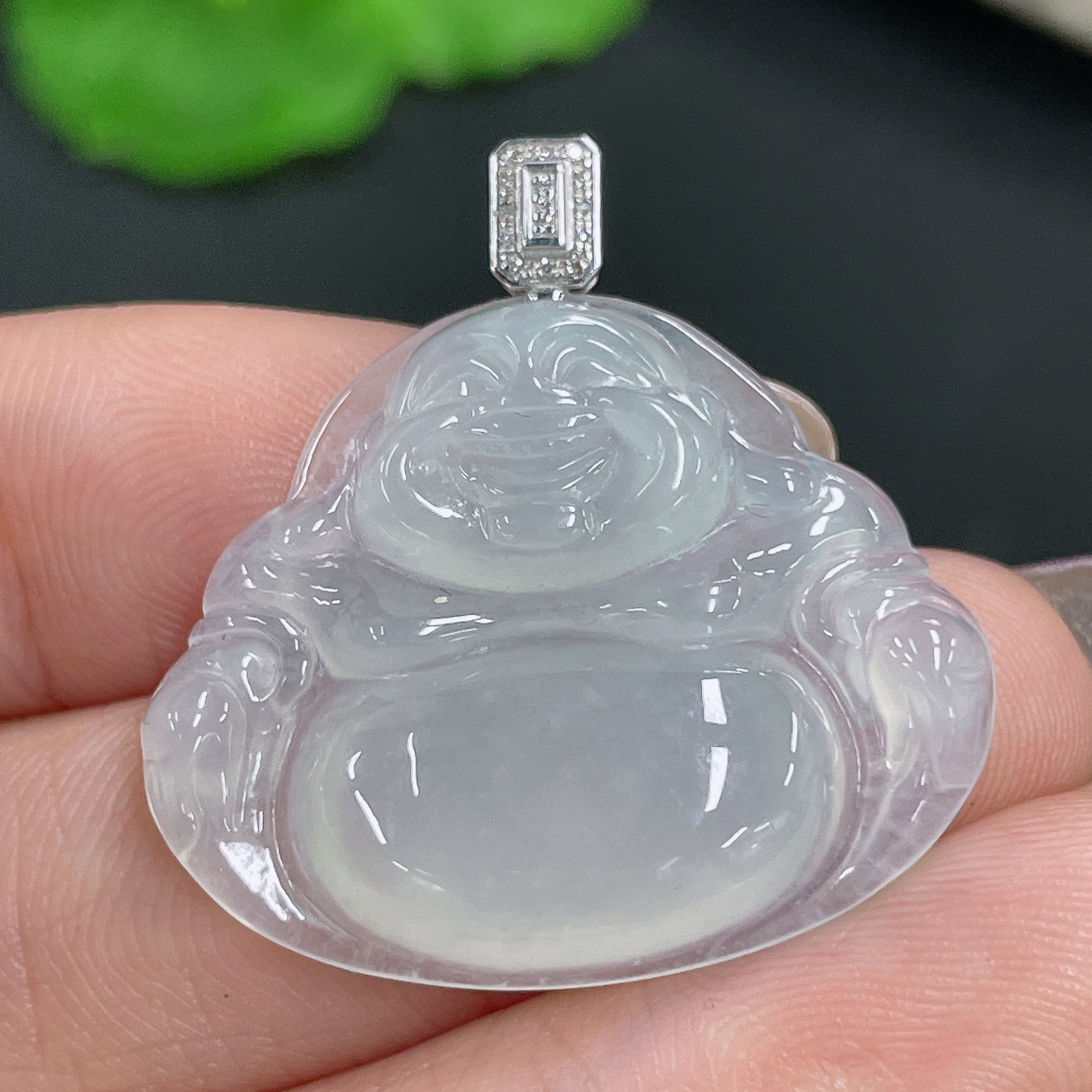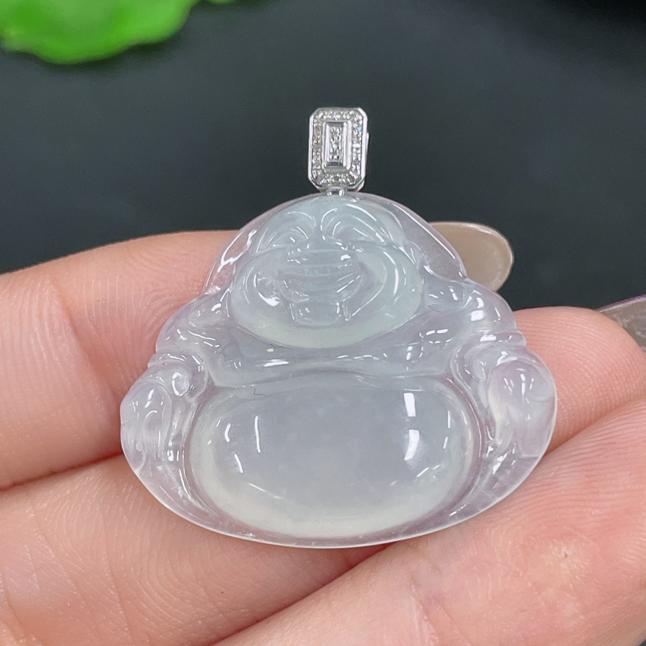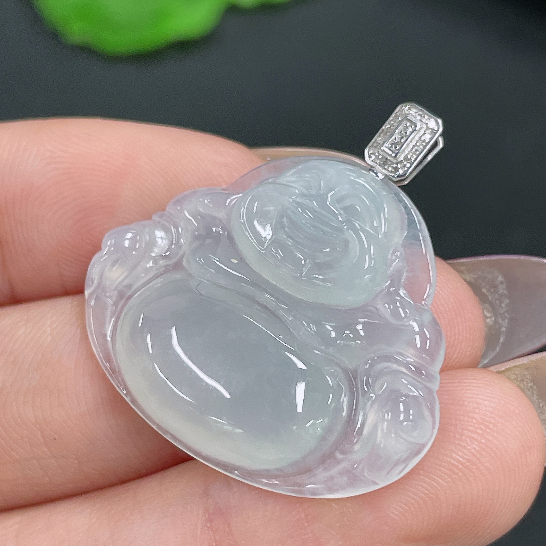 Jadeite Pendant Buddha 18k with Diamond Inlay Total Weight Approx. 5.73g