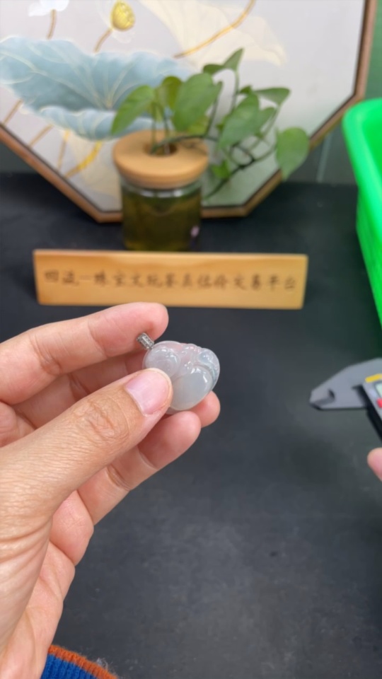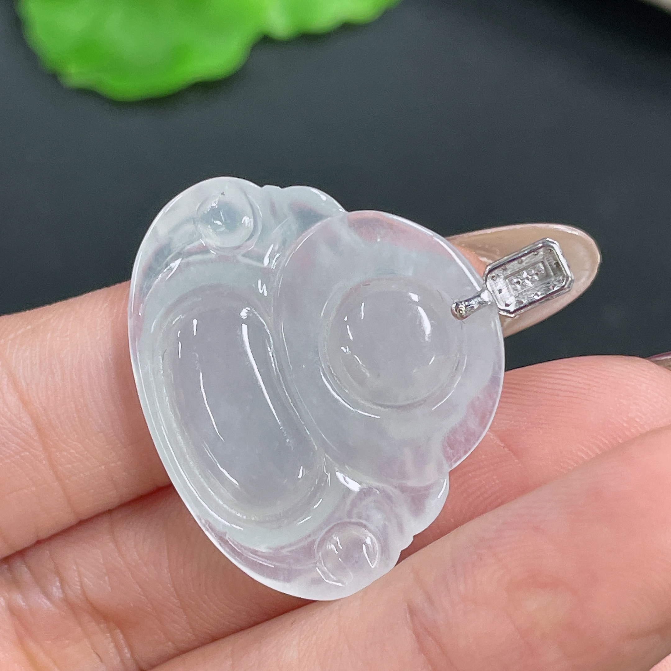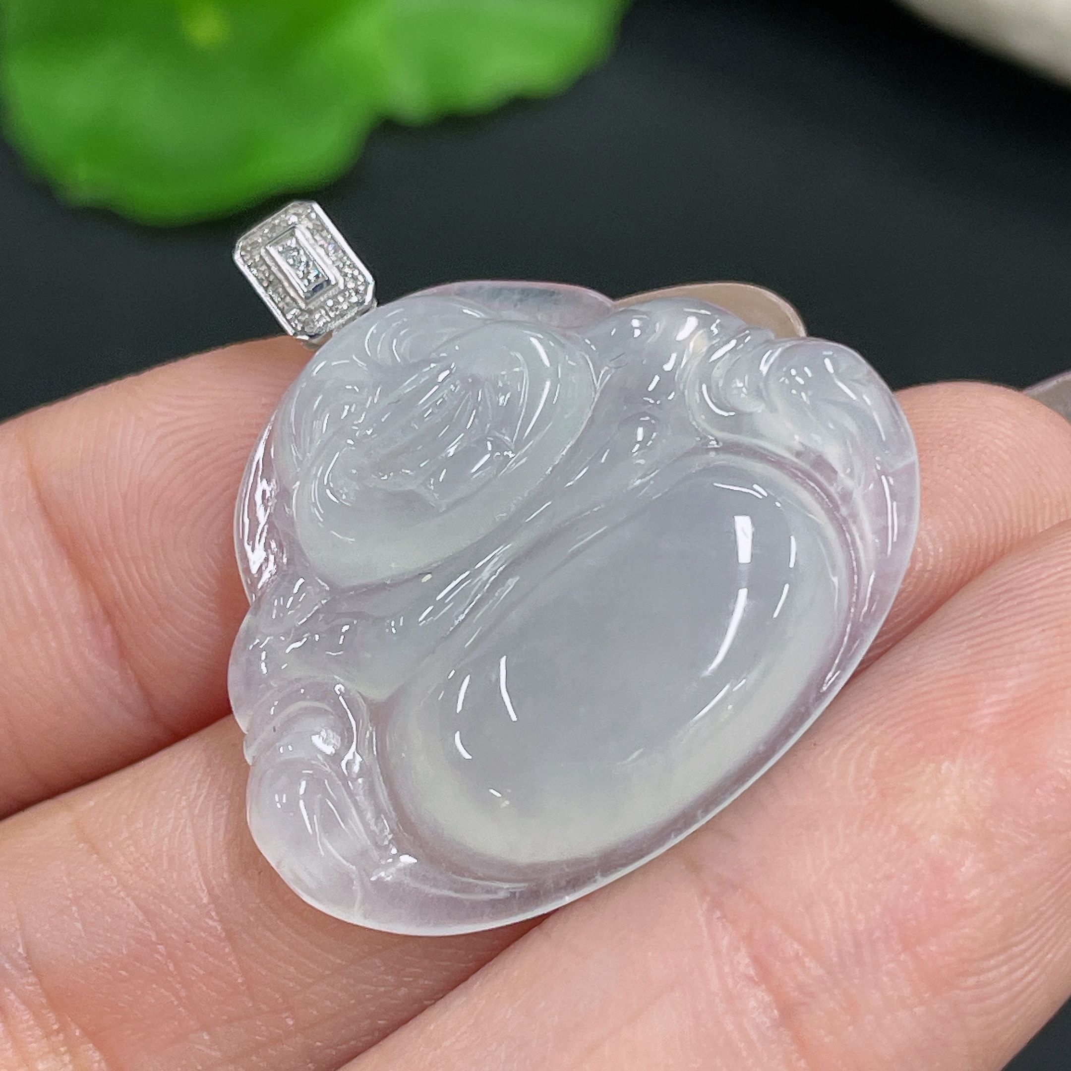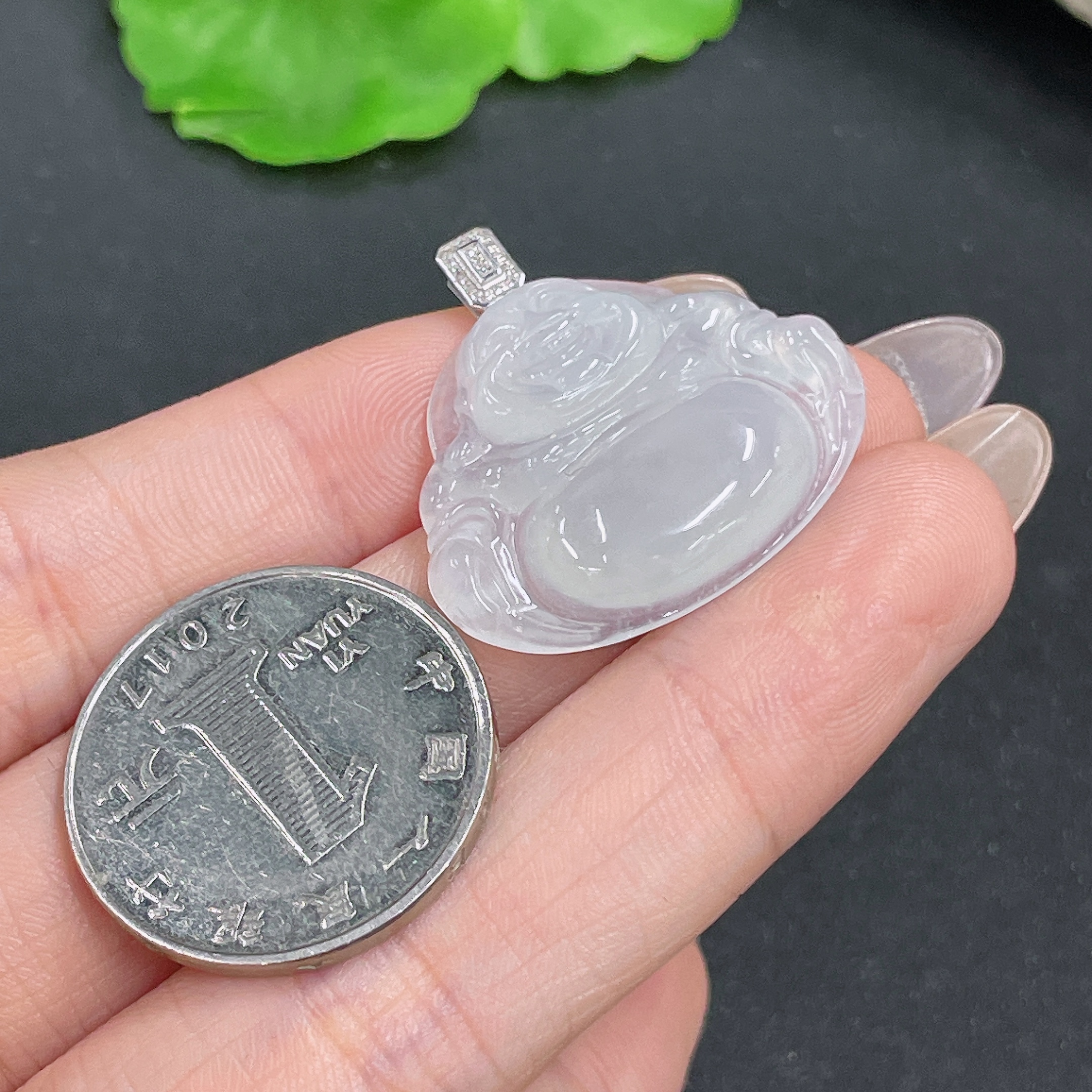 Jadeite Pendant Buddha 18k with Diamond Inlay Total Weight Approx. 5.73g