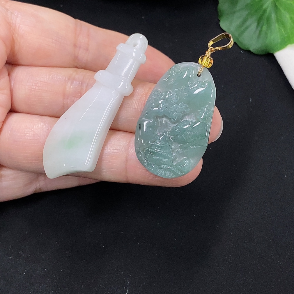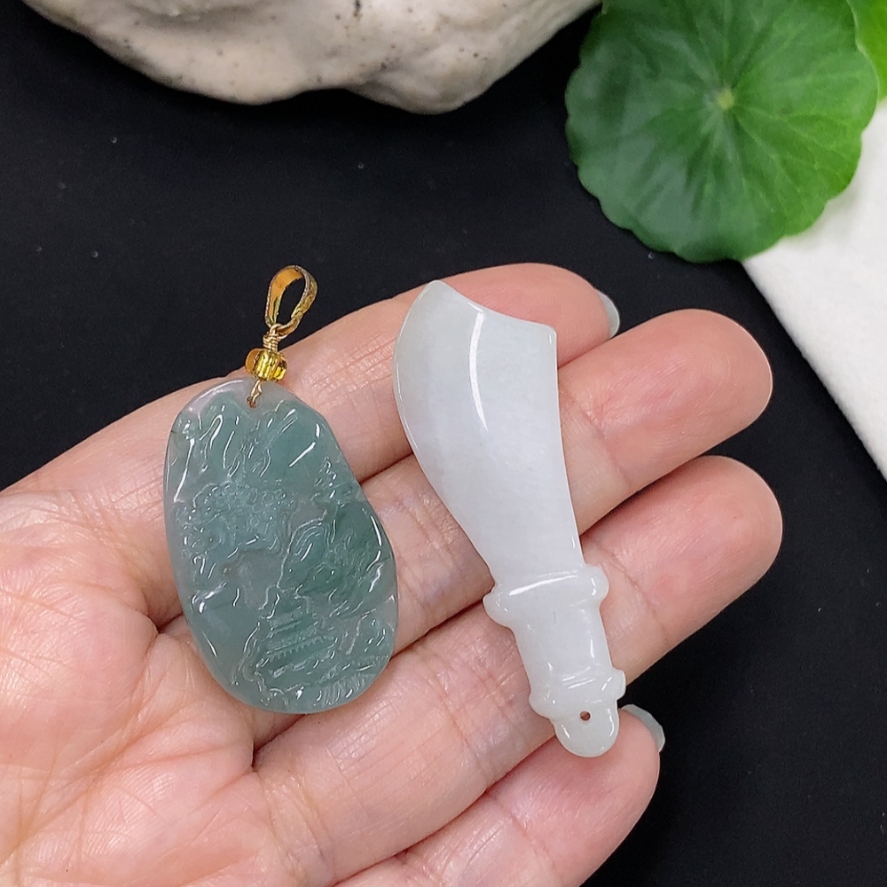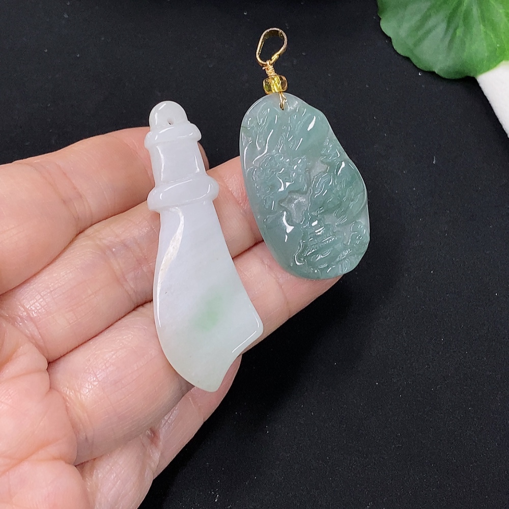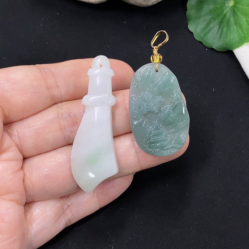 Jadeite Pendants Sell as a Lot (Non-Gold Inlaid)
