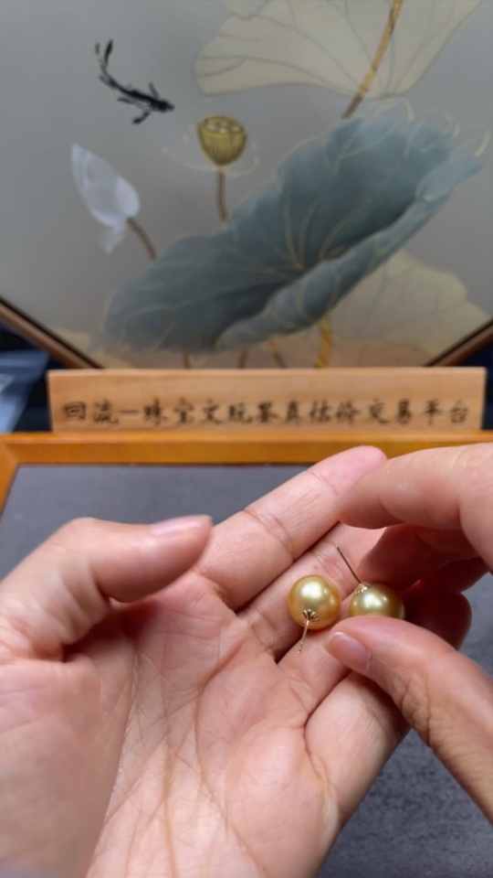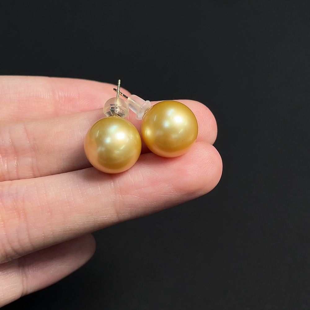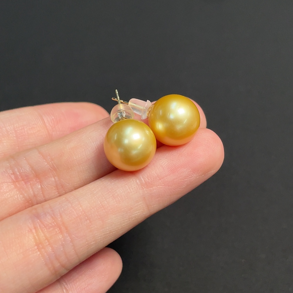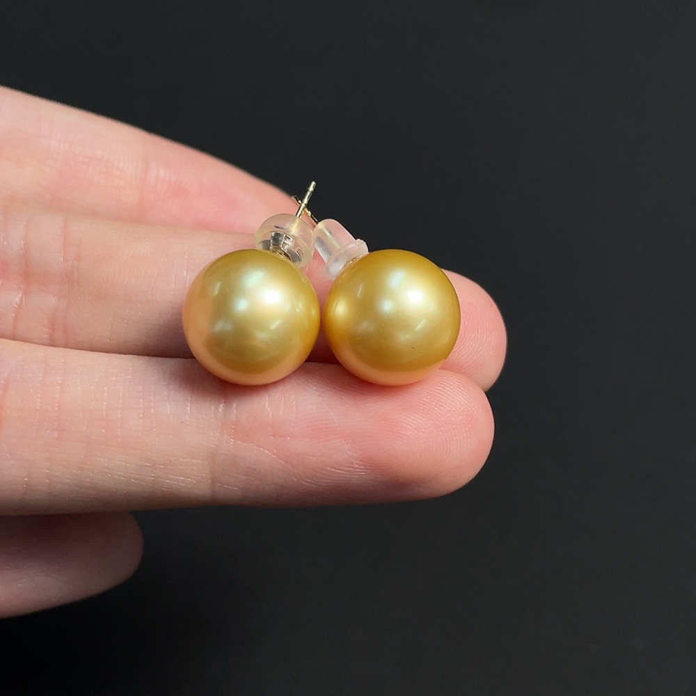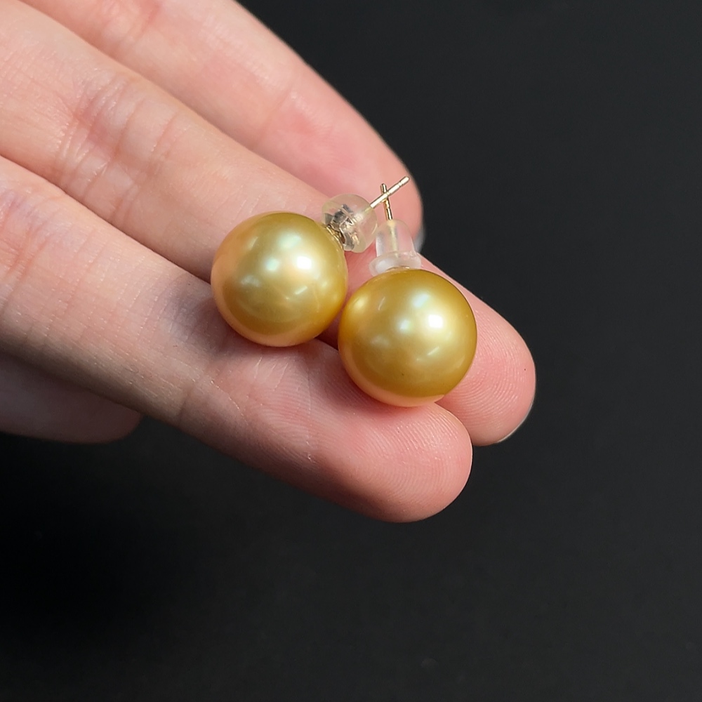 18K Seawater Pearl Earrings, Color Origin Undetermined, Total Weight Approximately 5.21g, Size About 11.7mm