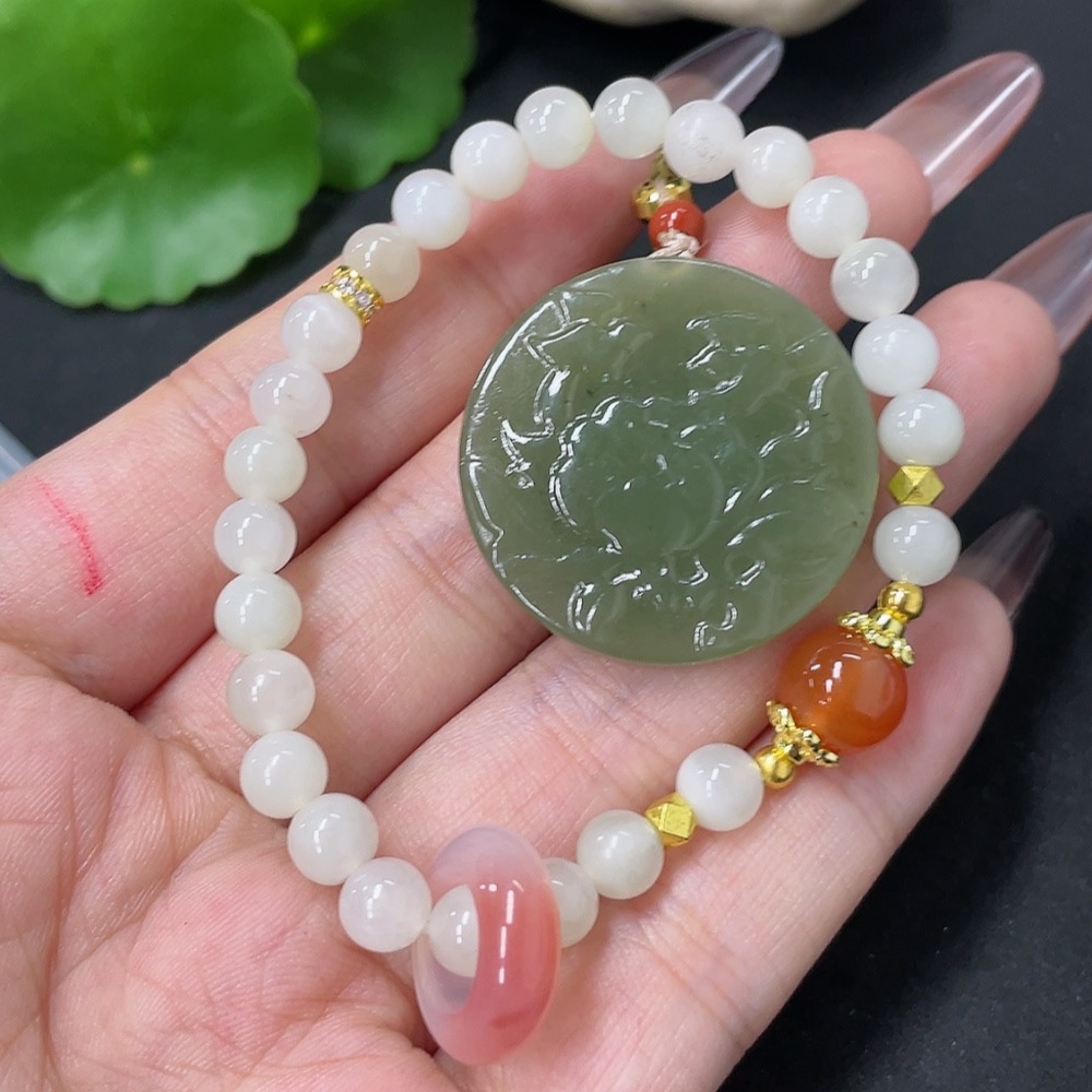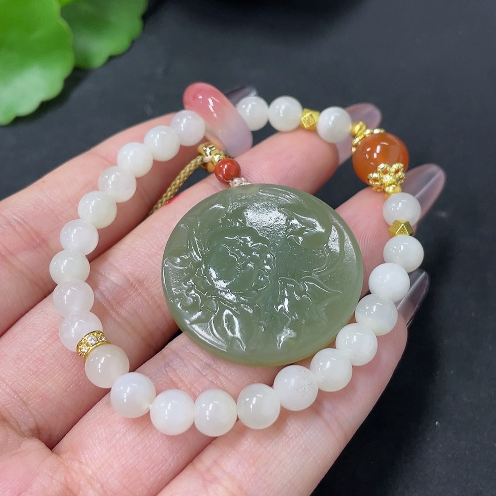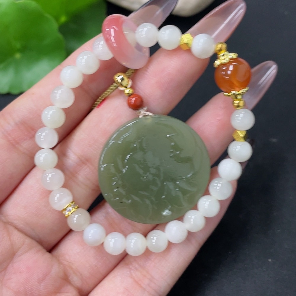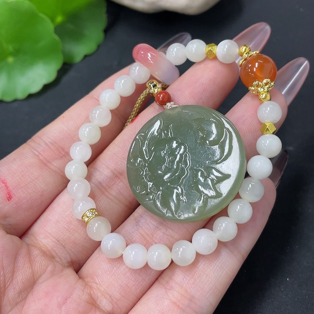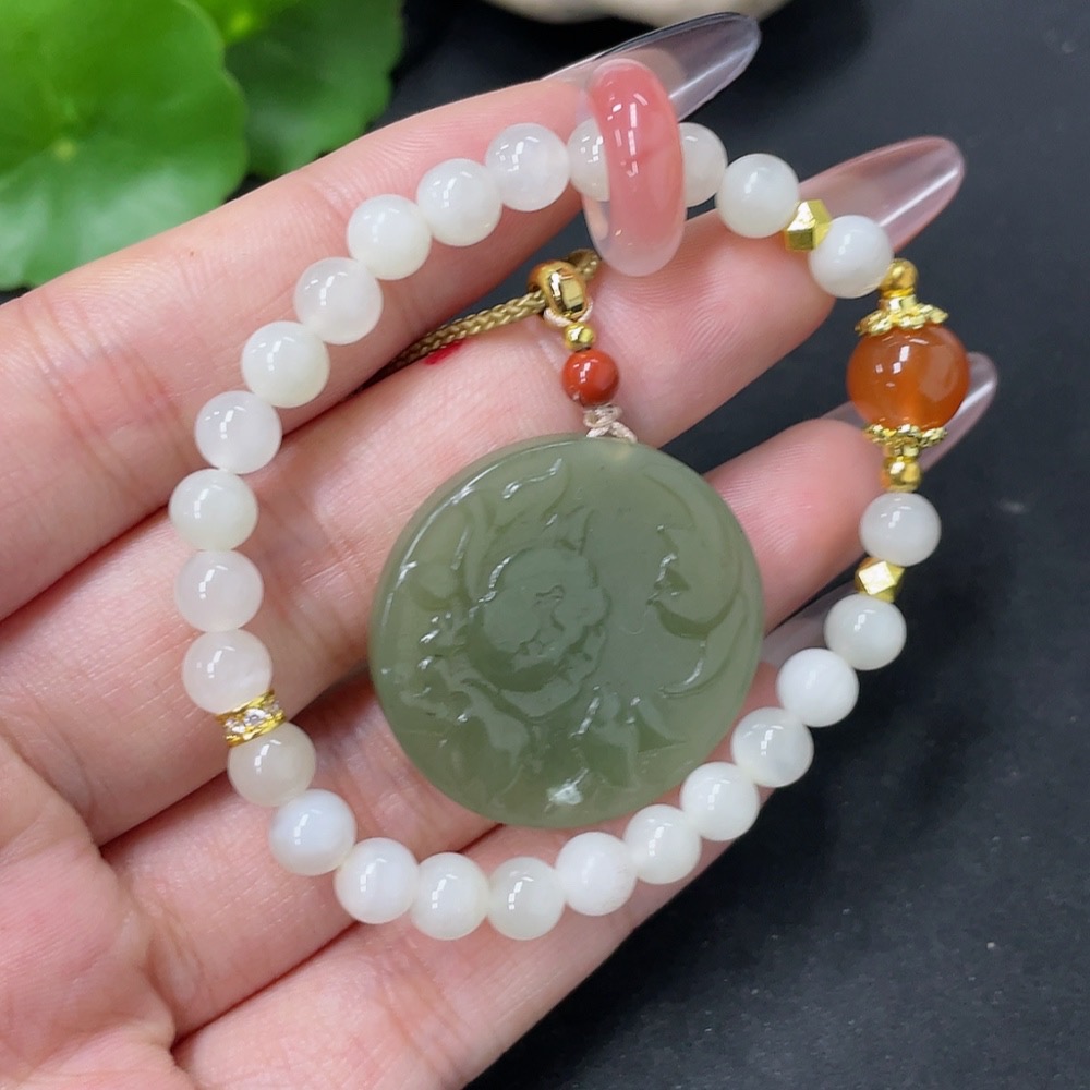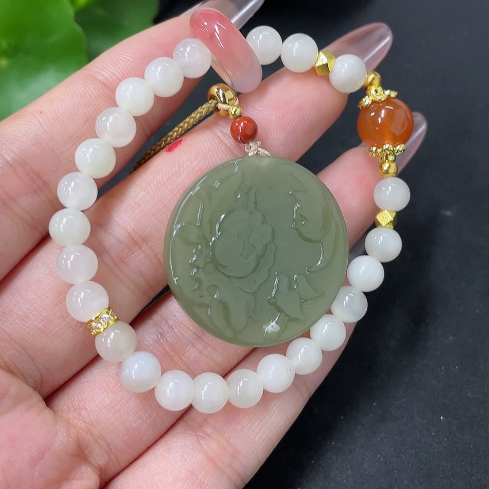 Hetian Jade Pendant + Bracelet (Beads Not Hetian Jade, Not Gold, Total Weight Approx. 21.7g Including Cord)