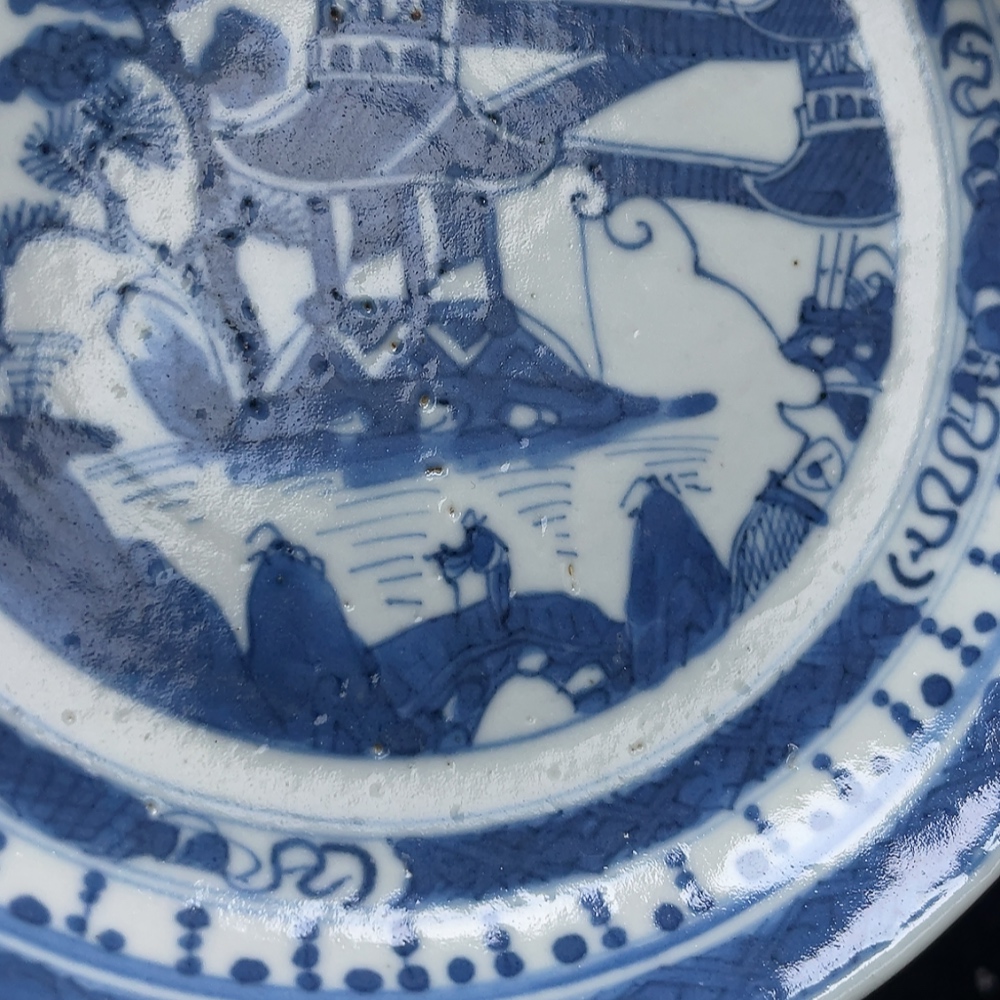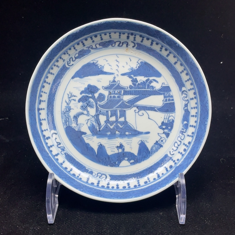 Ceramic, Perfect Condition, Qing Dynasty Pavilion and Terrace Plate