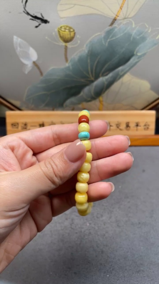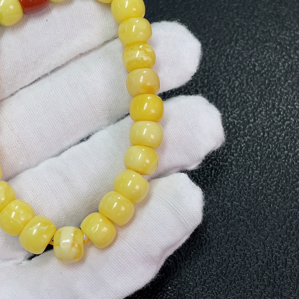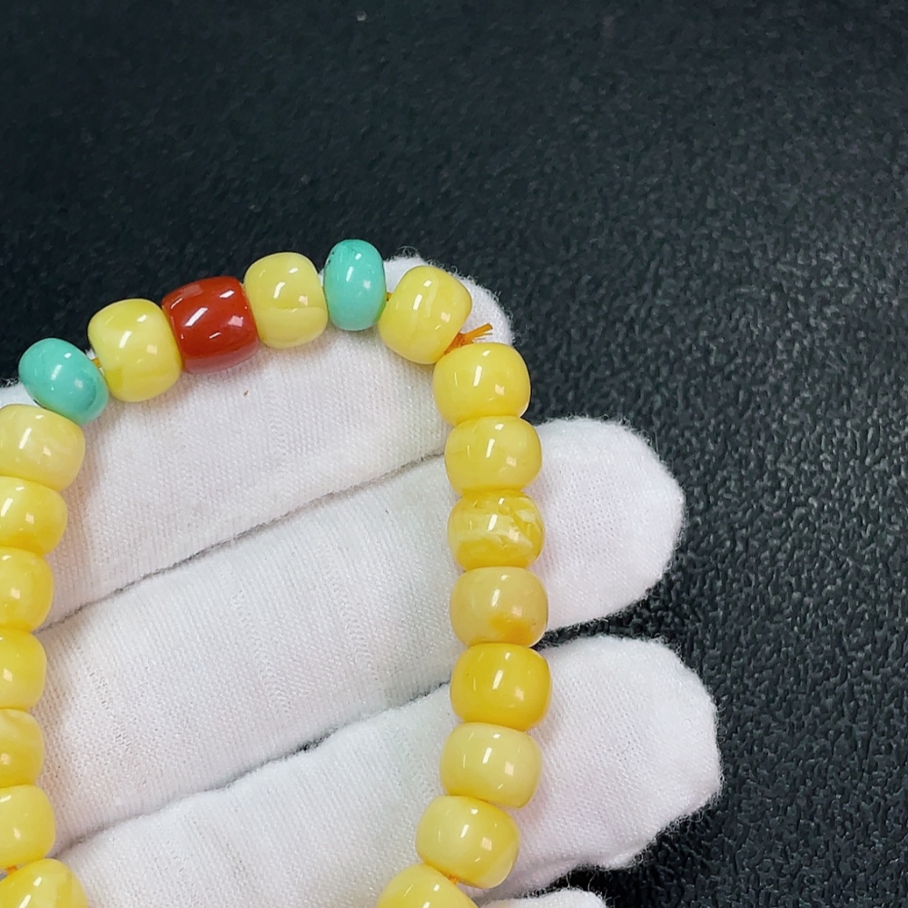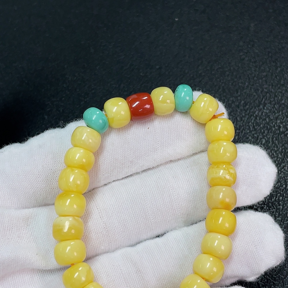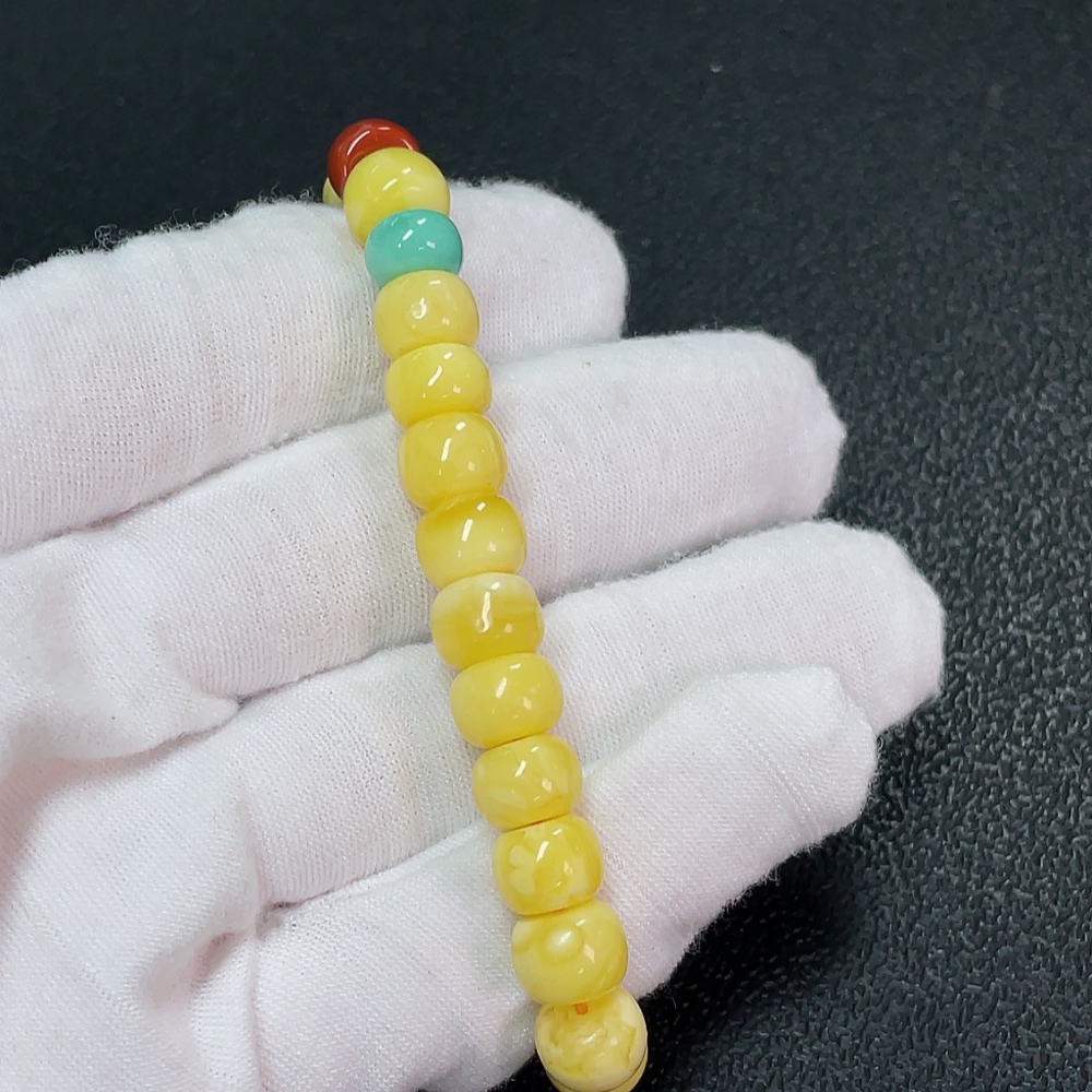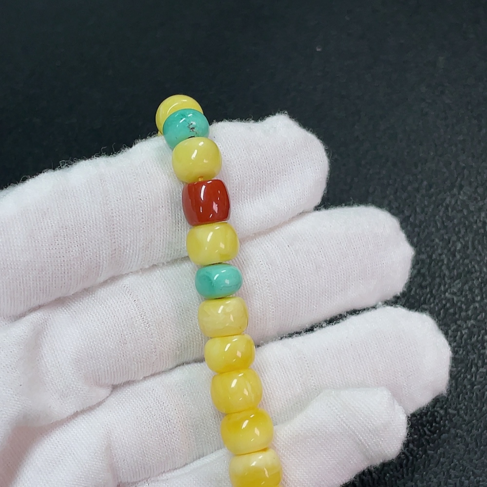 Amber Beeswax Bracelet with Turquoise and Southern Red Agate, Total Weight Approx. 9.45g, Size About 8.9mm