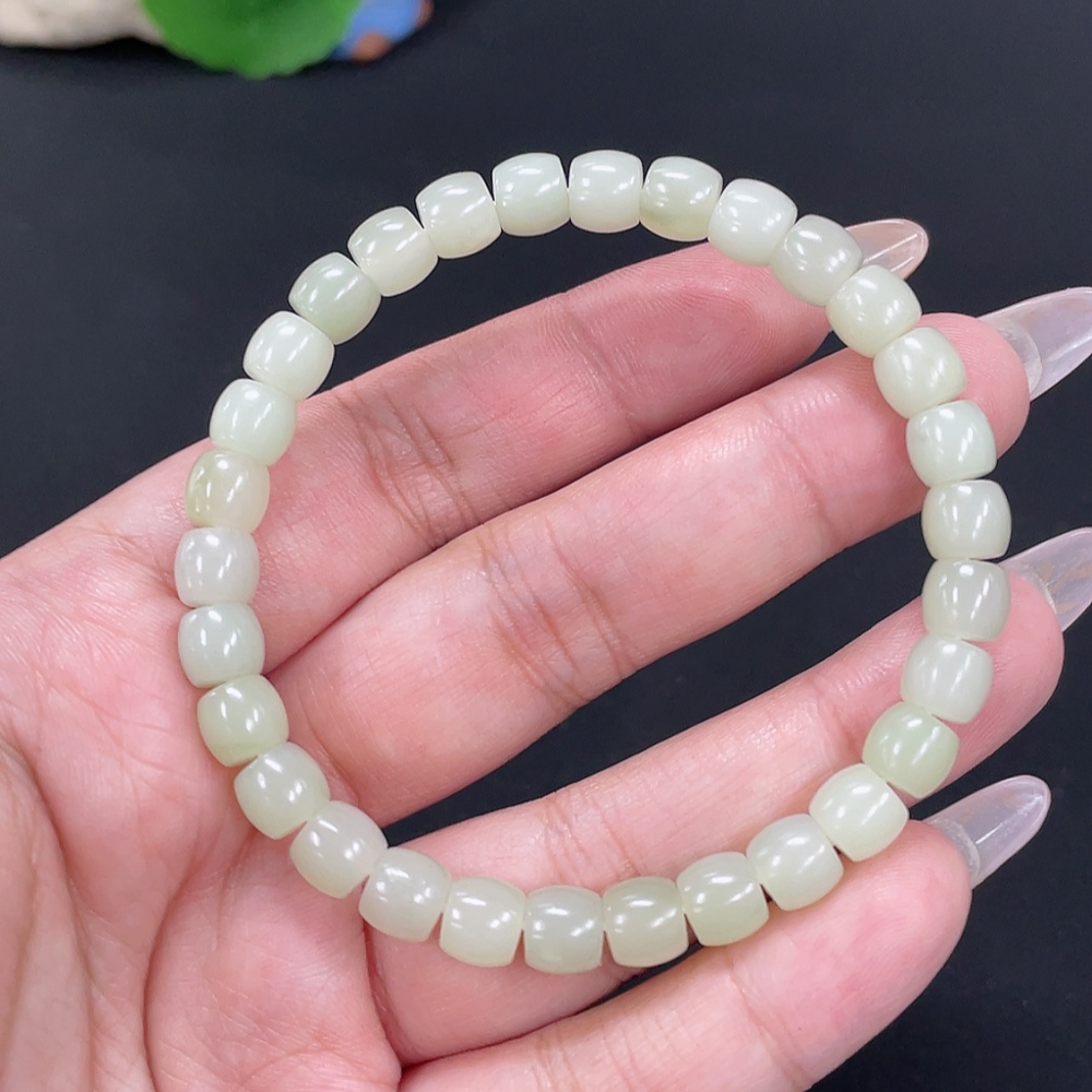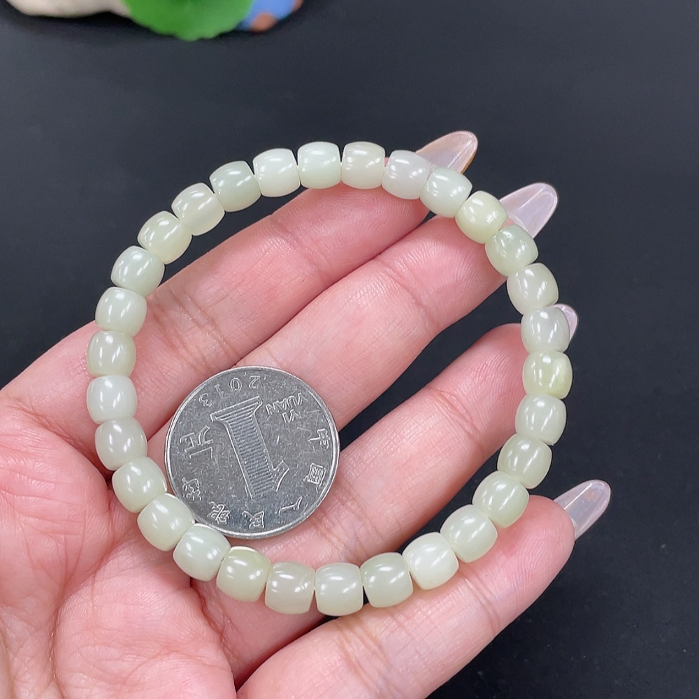 Hetian Jade Bracelet, approx. 6.7mm beads, total weight approx. 17.3g